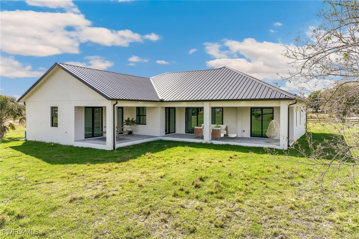 NEW CONSTRUCTION!! BRING OFFER!! HUGE PRICE REDUCTION!!! MOTIVATED SELLER! This elegant 4 bedroom,3 bath, home with open floorplan home has all the Bells and Whistles. Plenty of room for a pool. The two and a half acres has the rural feel perfect for your horses, while having the convenience of the interstate only a few miles away. It is New Construction with a split bedroom plan. Enjoy the chefs kitchen with top of the line appliances and an oversized island with Waterfall Quartz Counter Top with deluxe stainless steel farm sink. Also the elegant, contemporary lighting and breakfast nook make it perfect for entertaining. The home features beautiful light wood tile plank flooring throughout. The master bedroom is a spa like retreat with expansive views and opens to lanai. The master bath has a freestanding bathtub and a walk in shower with designer tile and rainfall showerheads and his and hers vanity area with quartz counter top. There is also his and hers custom closets. This home has it all!!! Hurricane impact windows and doors, a private road and no HOA fees.