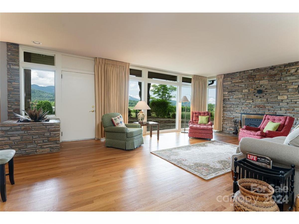 Mid-Century architecture enthusiasts take note! Discover a stunning Frank Lloyd Wright-style home with a charming guest house on 6.46 acres overlooking the breathtaking Andrews Valley and surrounding mountains. Designed in 1951 by renowned Asheville architect Tony Lord, this architectural gem features a 3-bed, 2.5-bath main house with walls of windows showcasing spectacular views, stone floors and captivating updates. The 1 bedroom 1 bath guest cottage is connected by a "secret garden" and enchanting stone walkways. These homes offer versatile, private living. The courtyard and grounds boast stunning landscaping, a waterfall koi pond and a large gazebo, perfect for entertaining and enjoying cool summer breezes. 2.85 acre field offers opportunity for equestrian pursuits, farming or an exceptional building sites. The property offers walkable access to the small regional airport for convenient private fly-in/out options. Convenient to Andrews, Nantahala Outdoor Center and multiple lakes.