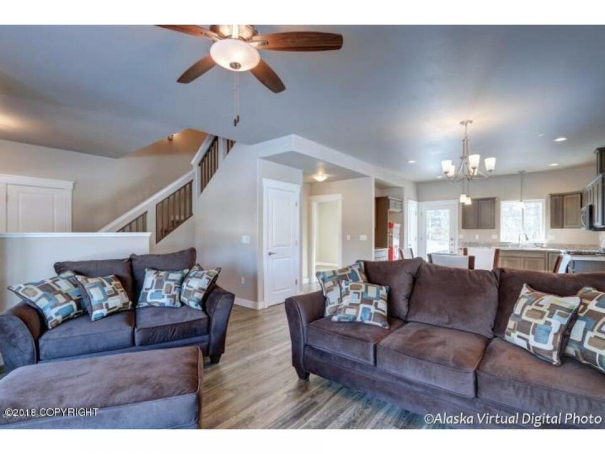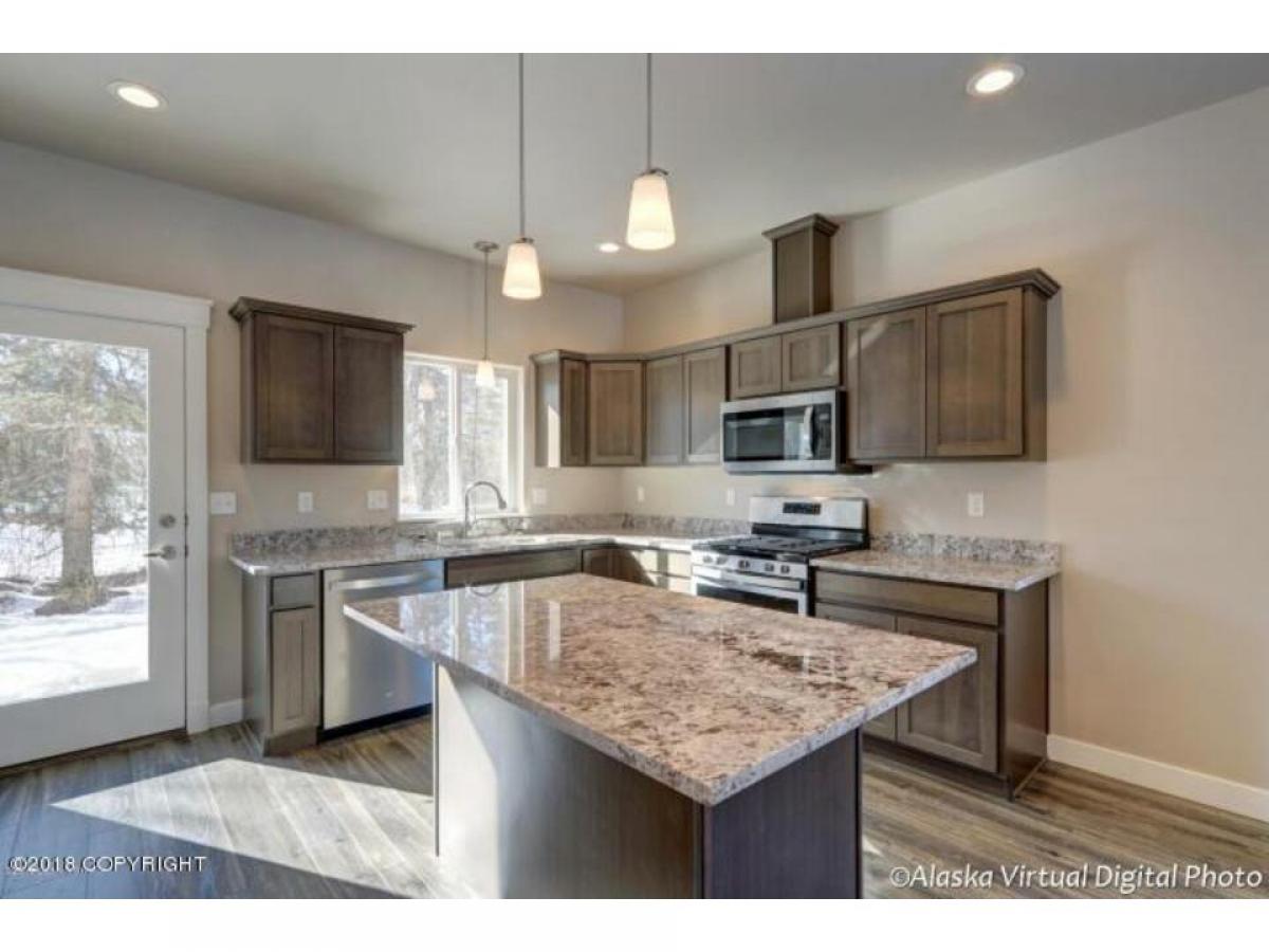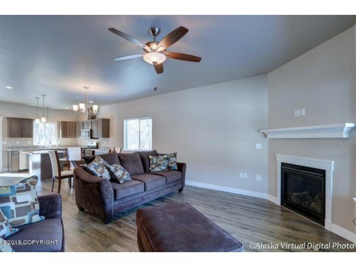 Open spacious floor plan, kitchen w/ island & pantry. Open to living & dining room w/ fireplace. Den or 4th bedroom on main floor. Master bedroom w/vaulted ceiling, walk in closet & private bath w/separate shower & tub. Granite counter tops, laminate floors, ceiling fan, and back deck. City Water & City Sewer located in the heart of Palmer.