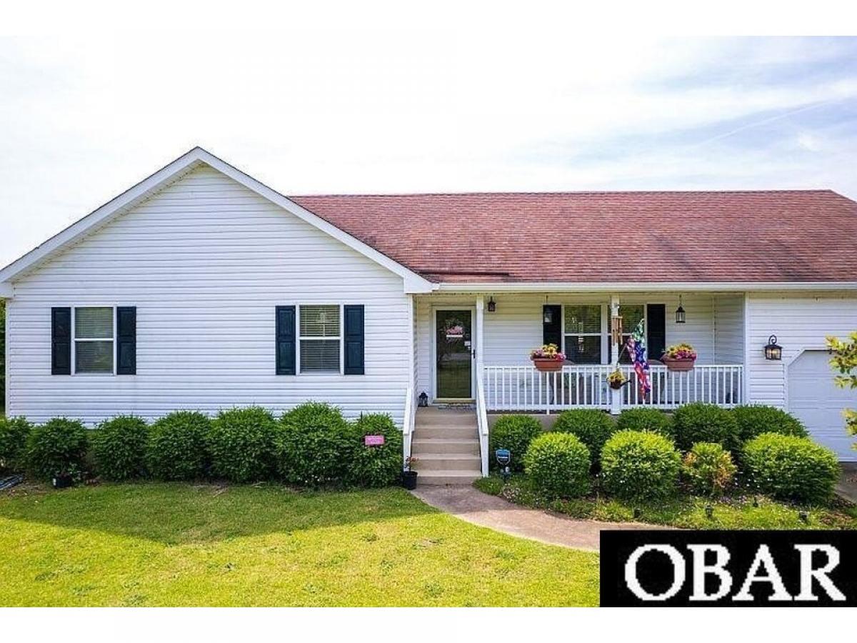 Quality built home featuring an open concept floor plan with 14 ft. ceilings in the living room and dining area. Oak cabinets in the kitchen with plenty of storage. First floor primary bedroom and ensuite. Two more bedrooms offer plenty of space for a growing family or recent retirees that may be downsizing. There is a spacious FROG Office/Media room that also includes more storage. There is a Mud room located off of the garage for added storage. The Vinyl sided exterior makes clean up a breeze. Large Sun Deck for entertaining and/or listening to the Sounds of Spring. Mature fruit bearing trees and beautiful landscaping. Fenced in court yard for privacy including a fire pit. Above ground pool with Sun Deck. Double Concrete Driveway allows room for several cars to park. Recent Improvements Include: New primary bathroom flooring, new seamless gutters in 2023, Two new doors in 2023 including large rear door leading to the sun deck, Attached garage, two large sheds on premises (12 X 12 amp; 8 X 10 ) that will convey. This home is centrally located to the OBX amp; Elizabeth City and Chesapeake. Five minutes from churches, restaurants and the local elementary school. Schedule your showing today.