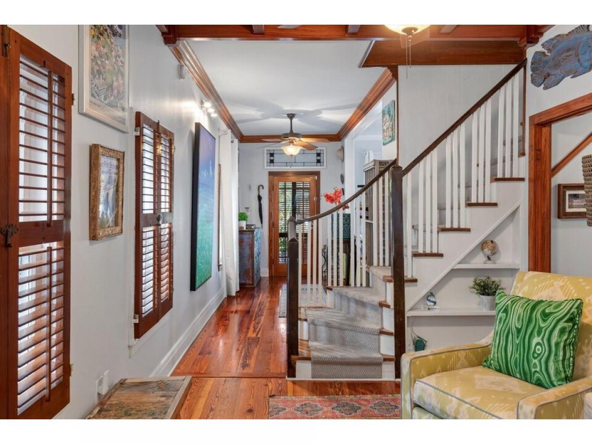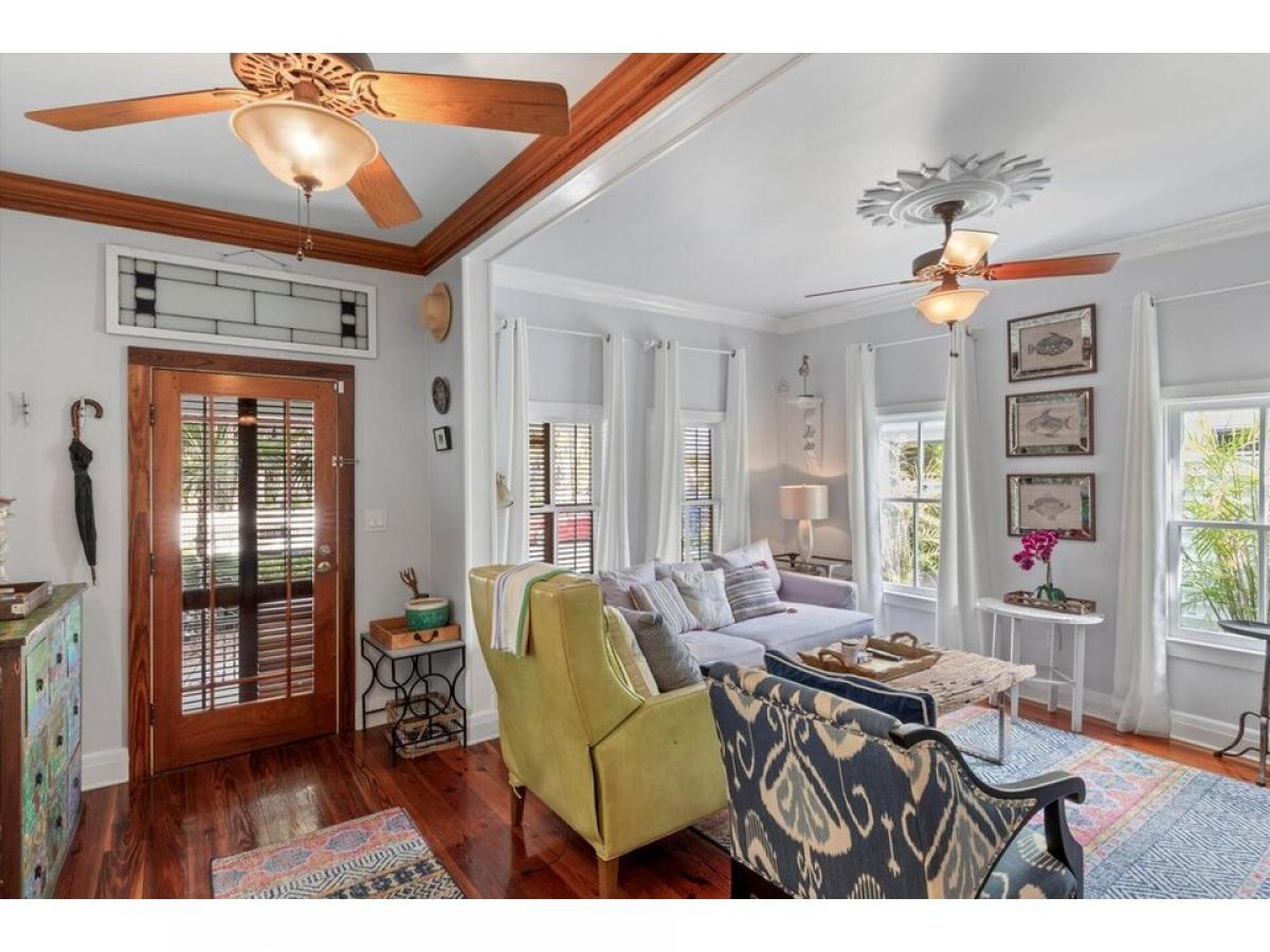Welcome to this captivating historic Conch home, where the essence of Key West island luxury comes alive. This charming residence boasts a classic front porch that beckons you to sit back and enjoy the tropical breeze, making it an ideal space for leisurely mornings or cozy evenings. Upon entering, you are greeted by a sun-drenched interior adorned with exotic hardwood flooring and soaring high ceilings that create an inviting and spacious atmosphere, perfect for both relaxation and entertaining.The heart of this home lies in its kitchen, a culinary haven equipped with stainless steel appliances, ample pantry space, and a comfortable seating area. The open design allows for seamless flow from the kitchen to the back patio, making it effortless to host gatherings or enjoy quiet family meals. Step outside to discover a relaxing pool area, complete with an air-conditioned poolside guest cabana. This versatile space features a wet bar and a cozy seating area that easily transforms into a pull-out sofa bed, ideal for hosting friends and family or enjoying a peaceful afternoon by the pool. Ascend to the second floor to find a striking stained glass window that adds a touch of elegance to your arrival. Here, you#039;ll discover a generous master suite, boasting cathedral ceilings and an abundance of closet space, creating a serene retreat. Additionally, a bonus room is currently set up as a home office, providing flexibility for your lifestyle needs. A delightful guest bedroom completes this level, featuring access to a private rooftop terrace that overlooks the inviting pool, perfect for unwinding at sunset or enjoying morning coffee in solitude. This historic Conch home is not just a residence; it is a lifestyle, offering a harmonious blend of modern conveniences and timeless charm. With its ideal location, you are just moments away from all that Key West has to offer--vibrant nightlife, exquisite dining, and stunning beaches.
