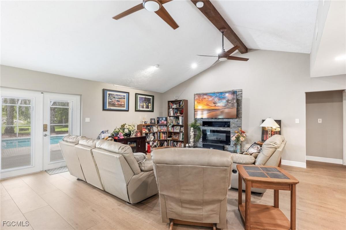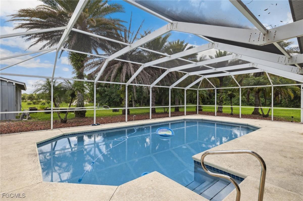 Discover the charm of rural living just minutes from I-75 in this lovely 4-bedroom plus den, ranch-style home nestled on an expansive 5-acre parcel situated on a private road. Built in 1983, this single-level residence spans approximately 2,344 sq ft and features a welcoming layout designed for comfort and casual elegance. The amazing chef's kitchen includes a large island and offers ample cabinetry and opens seamlessly to the dining and family areas—ideal for entertaining or relaxed family life. Step into a bright, airy interior with central heating and cooling, open floor plan, and a cozy fireplace perfect for gatherings. Each bedroom is thoughtfully appointed, complemented by two full baths. The spa-like master bathroom features a jacuzzi soaking tub for ultimate relaxation. The backyard oasis features a spacious pool for entertaining or unwinding.Outside, the property’s metal roof and solid-surface construction mirror its sturdy design also updated with Hurricane Windows and Doors. The detached garage offers room for over 10 cars/boats including a lift for car enthusiasts to work on your cars, as well as an air contitioned work area. While the vast lot invites possibilities: imagine a barn, or stables—and yes, horses are welcome. The pastoral setting is enhanced by mature shade trees and the peace that only acreage affords.Water is supplied via a well, with septic service in place. Zoned AG-2 for agricultural use, this property offers the privacy and flexibility of country living without sacrificing proximity to city amenities, schools, and highways. This unique property is a must see!!!