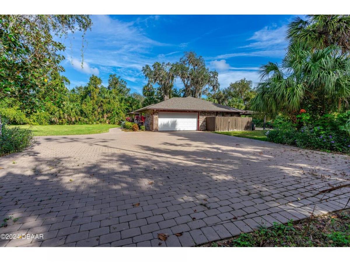 Private 1-Acre Brick Home in Beautiful Spruce Creek Estates - Experience privacy and comfort in this spacious, split-plan home. Step inside to find a welcoming atmosphere enhanced by a double wood-burning fireplace, perfectly placed to create cozy spaces for all to enjoy. Living area spacious enough for an additional dining area or a formal sitting room. Love to entertain, the dining room will be the perfect setting for your beautiful farm table or your family heirloom dining set. Chef#039;s Kitchen is open featuring GE Cafeacute; appliances, double oven and microwave drawer. A center island perfect for meal prep, plus a large pantry to keep everything organized. Floating Shelves in Kitchen giving you a great space to showcase your favorite deacute;cor. Primary suite is a peaceful retreat with a walk-in closet plus a second double closet. The updated en-suite bath offers a double vanity, and a large shower. Guest Suites are situated on the opposite side of the home for added privacy. Versatile Florida Room is expansive enough to serve as a gym, game room, or additional sitting area for family gatherings. Outside, enjoy the private, tree-lined backyard that adds privacy while you have your late-night swim in the salt water pool. Outside Shower. New paver driveway and walkway to front entrance. Cozy front porch, perfect setting for a couple rocking chairs to relax after a long day at work. Easy access to shopping, restaurants, and the beach, plus room for your recreational toys, this home truly offers the best of both worlds. This home did not flood with recent Hurricanes. NO FLOODING. Roof 2017; AC 2020; Water Heater 2019ish; Garage Door 2019. All measurements and information deemed to be accurate but cannot be guaranteed, buyers and realtors are advised to verify.