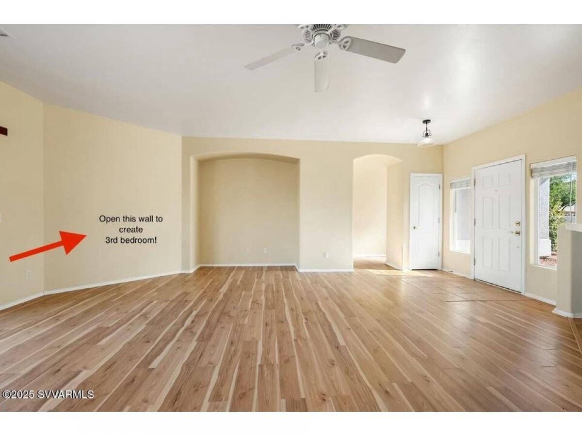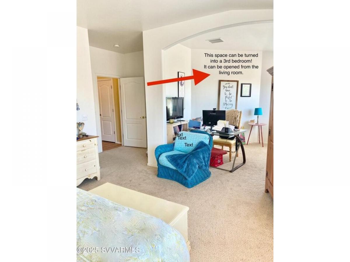 Fresh coat of neutral paint was just applied to the exterior of this charming 2-bedroom (potential 3 bedroom), 2-bath home which offers a tranquil escape in the desirable Verde Valley, and is conveniently located near Cottonwood. Step inside to a spacious open floor plan. Breathtaking Backyard Views: Step outside to your private backyard amp; be greeted by stunning vistas of the Mingus Mountains. The fenced-in space with pet-friendly turf provides a safe haven for furry companions. Entertainer#039;s Delight: The large kitchen boasts easy-access, elevated dishwasher, a center island, and ample counter space for culinary creations, all with beautiful tile flooring. The living room amp; dining area features wood laminate floors throughout. More...