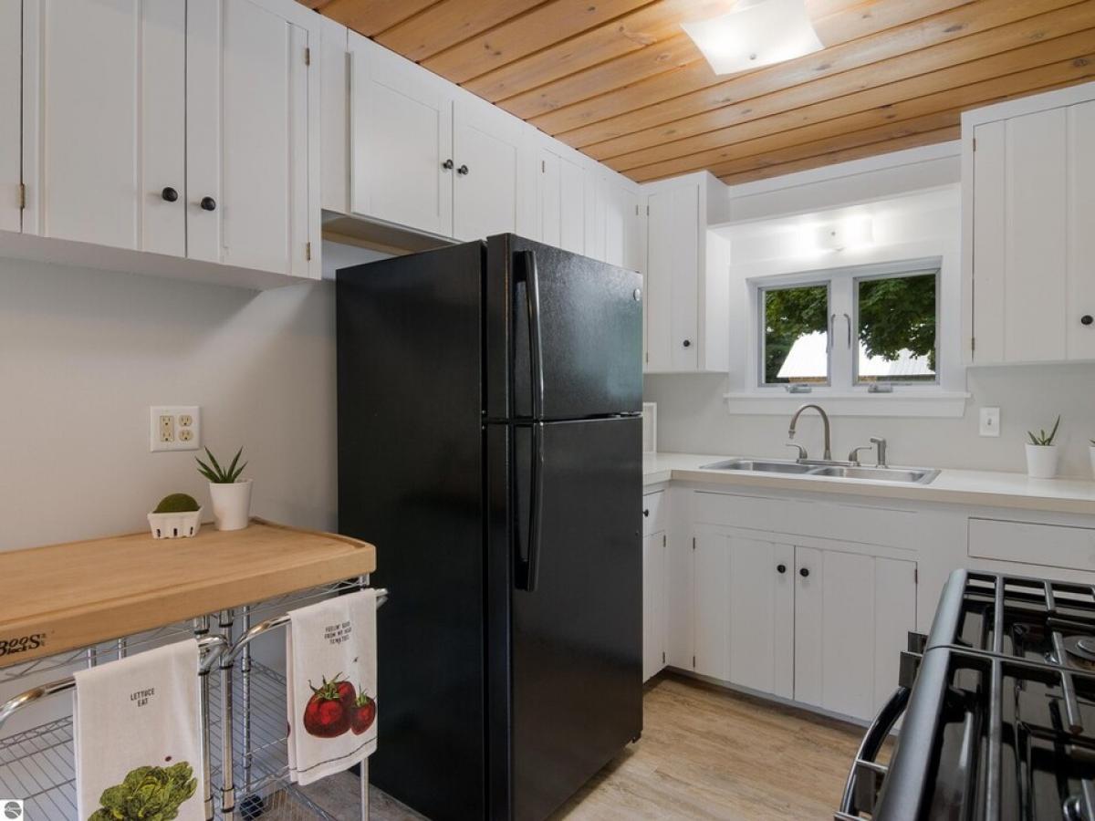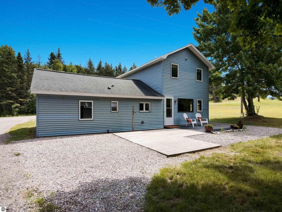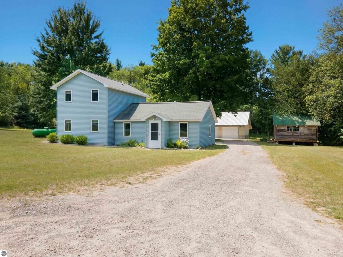 Nestled on a serene country lot in a private setting, this charming 3-bedroom, 2-bath farmhouse offers 1250 sq ft of beautifully updated living space. Nearly everything has been upgraded in recent years, including flooring, appliances, electrical, roof, and mechanicals. Step into a warm and inviting home featuring a spacious mudroom, perfect for storage and everyday convenience. The upstairs primary bedroom boasts a luxurious en-suite bathroom with a granite countertop, providing a touch of elegance to your daily routine. Two additional bedrooms on the main level offer ample space for family, guests, or a home office. Outside, the property includes a versatile 24' x 48' pole barn with electric, ideal for a workshop or additional storage. A quaint 12' x 15' log cabin, currently used for storage, presents opportunities as an art/craft studio or a cozy retreat. The expansive yard allows you to enjoy the peaceful surroundings and the beauty of nature right at your doorstep. Centrally located to Frankfort, Beulah, and Benzonia, as well as the Herring Lakes, this property combines the tranquility of country living with convenient access to nearby amenities. Don't miss this opportunity to own a meticulously maintained home in a picturesque setting.