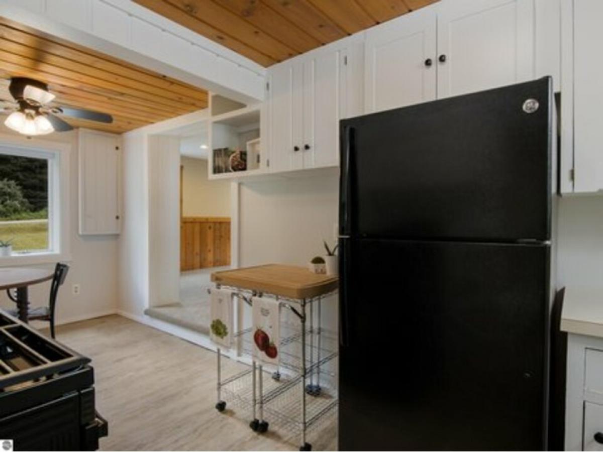 Nestled on a serene country lot in a private setting, this charming 3-bedroom, 2-bath farmhouse offers 1250 sq ft of beautifully updated living space. Nearly everything has been upgraded in recent years, including flooring, appliances, electrical, roof, and mechanicals. Step into a warm and inviting home featuring a spacious mudroom, perfect for storage and everyday convenience. The upstairs primary bedroom boasts a luxurious en-suite bathroom with a granite countertop, providing a touch of elegance to your daily routine. Two additional bedrooms on the main level offer ample space for family, guests, or a home office. Outside, the property includes a versatile 24' x 48' pole barn with electric, ideal for a workshop or additional storage. A quaint 12' x 15' log cabin, currently used for storage, presents opportunities as an art/craft studio or a cozy retreat. The expansive yard allows you to enjoy the peaceful surroundings and the beauty of nature right at your doorstep. Centrally located to Frankfort, Beulah, and Benzonia, as well as the Herring Lakes, this property combines the tranquility of country living with convenient access to nearby amenities. Don't miss this opportunity to own a meticulously maintained home in a picturesque setting.