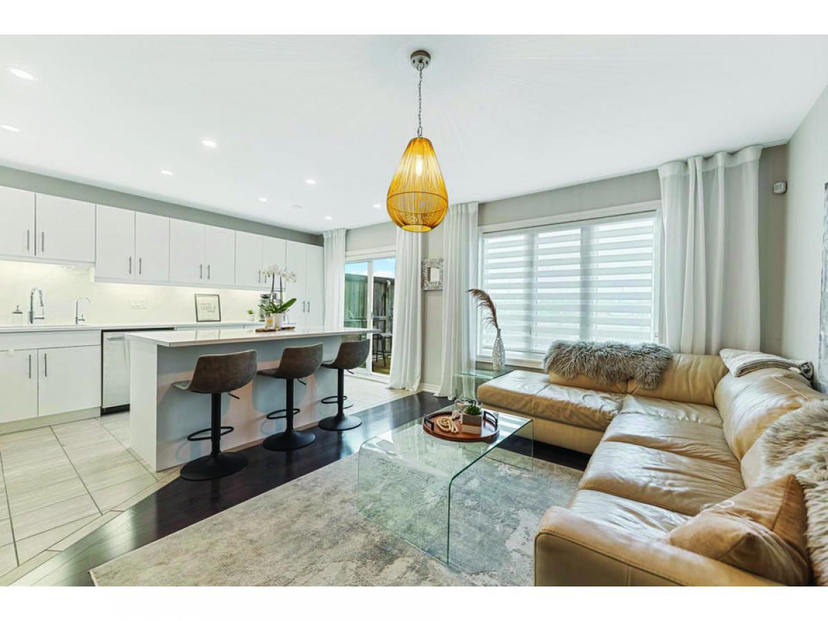 Welcome home to this tastefully updated 3 Bedroom 4 bathroom end unit freehold townhouse. This beautiful home is located on a massive pie-shaped lot spanning almost 53 feet wide along the back fence. As soon as you walk in you're greeted with warm designer colors and a fully open-concept living room and kitchen featuring an island with seating for four. Upstairs await 3 modest-sized bedrooms, a full bathroom with tub, an oversized linen closet, and a primary bedroom featuring a large walk-in closet and 4 piece ensuite bathroom. The fully finished basement features a laundry room, 2 piece bathroom, and oversized windows in the recreational room. The professionally landscaped backyard is a highlight of this home, the poured concrete patio sets the stage for the backyard lounge set where you'll be able to host friends and family for those summer bbqs. This uniquely large lot size allows for you to still have space to entertain and play all at the same time!