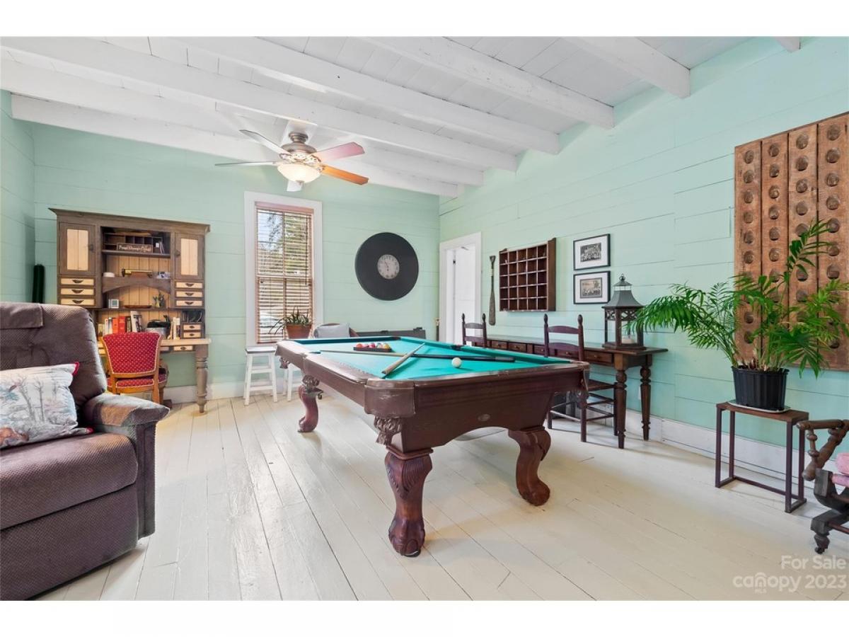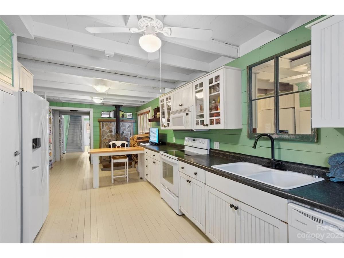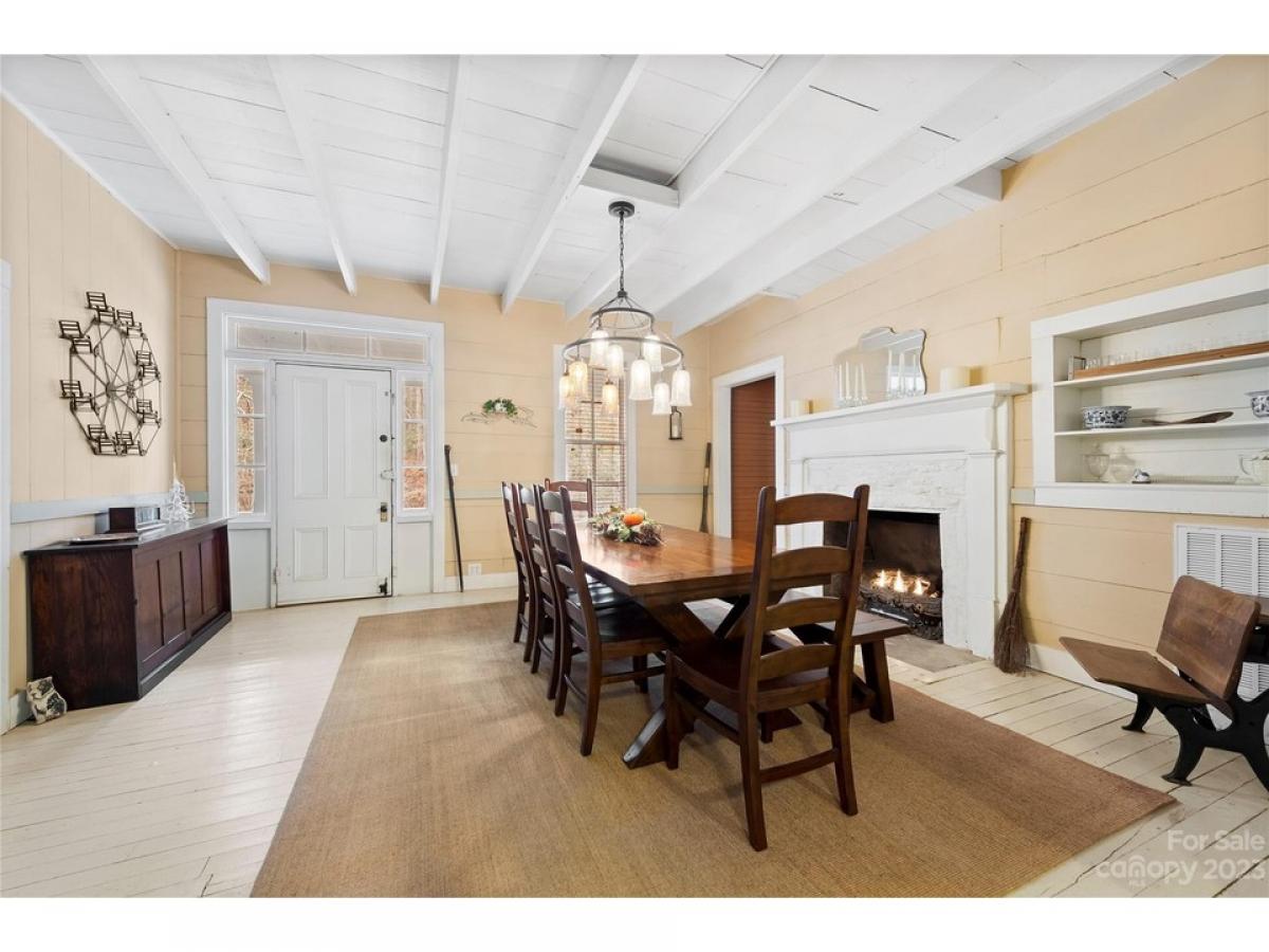 Hear and see the beautiful creek from one of the two expansive porches. Rumor has it that this historic home once served as a stop for stagecoaches. There is no doubt visitors were once wowed by the elegant clapboard & stone clad structure. The beautiful home still stands proudly, but is updated for modern living. Warm by one of four fireplaces, or hang out in the kitchen by the wood stove. The living room is massive and the dining room feels grand! Upstairs could accommodate more beds than the listing suggests, and there is a main level ensuite as well. Outside, the land is mostly level with direct creek access. The neighborhood amenities of an outdoor fireplace and gorgeous barn are conveniently located just steps away from the front door. Oh the gatherings that could happen here! The home's location is decidedly country, but minutes from groceries, and Downtown Asheville is a mere 20 minutes away! The gated neighborhood provides privacy. Ask to explore the special property today!