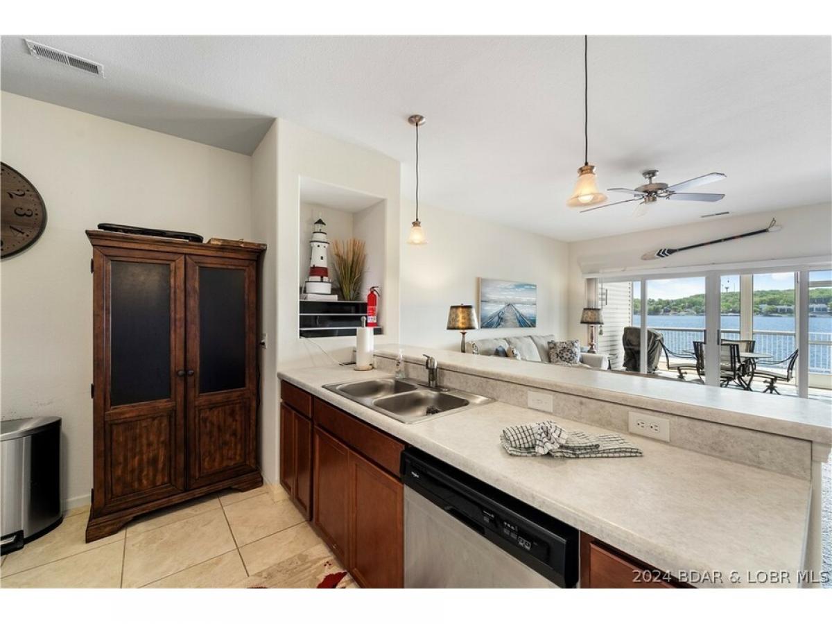 Discover Lake of the Ozarks best Isla Del Sol, Offering a Million-Dollar View Stretching for Miles! This lower-level, walk-out unit, nestled at the 4MM has breathtaking views. Step into luxury as you ascend via elevator to your remarkable 3-bedroom, 2-bathroom turnkey condo, complete with a coveted 12’x32’ slip in a prime cove-side location. The exquisite Lakeside Master suite pampers with a spacious walk-in closet, dual vanity sinks, and a lavish walk-in shower. The screened-in back porch has views of both the iconic Bagnell Dam and miles of scenic expanse in the opposite direction. Bring the whole family and bask in the amenities, including a stunning zero-entry pool adorned with playful water fountains, BBQ grills, and two inviting gas fire pits. Unwind in the inviting community area above the pool, offering ample seating for relaxation and mingling. Schedule a showing today!