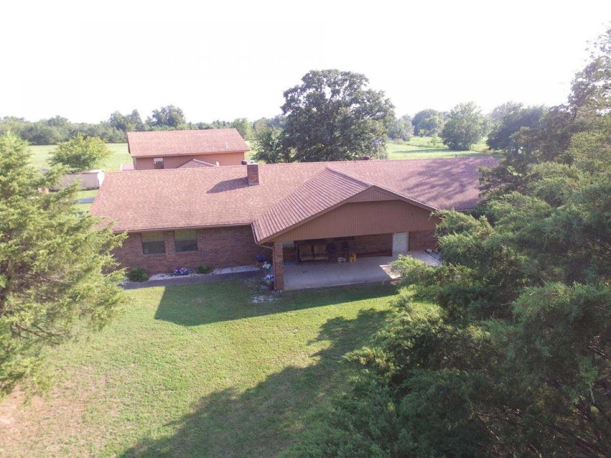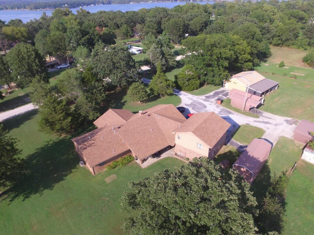 MOTIVATIED SELLERS! WELL BUILT, ALL BRICK, ONE LEVEL HOME ON 9.51 ACRES WITH GUEST HOUSE AND SEVERAL OUTBUILDINGS. This solid, one owner, 3 bedroom, 3 bathroom home with attatched 2 car garage and wood burning fireplace is ready for you to make yours. 6 inch exterior walls for energy efficiency, covered patio/breezeway connects another 2 car garage and upstairs apartment/game room/office/bedroom 4 that has it's own full bath and kitchette/wet bar. Outside there are several outbuildings/garages, mature landscaping, fenced pasture with pond, all on a flat terrain. Close to Grand Lake, Casino, retail and dining. NO HOA. VRBO OK. Out of Grove city limits but has GMSA utilities. Room for whatever you can dream! ALL OFFERS CONSIDERED.