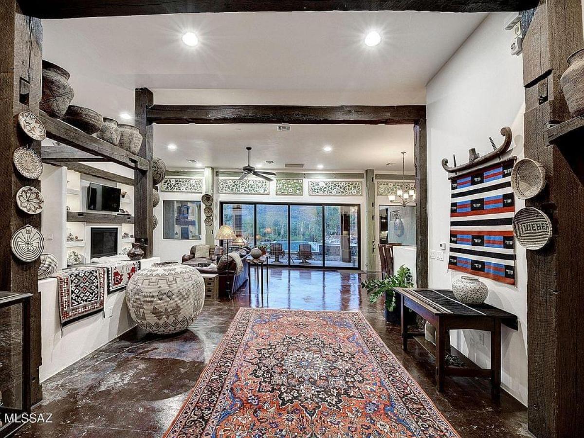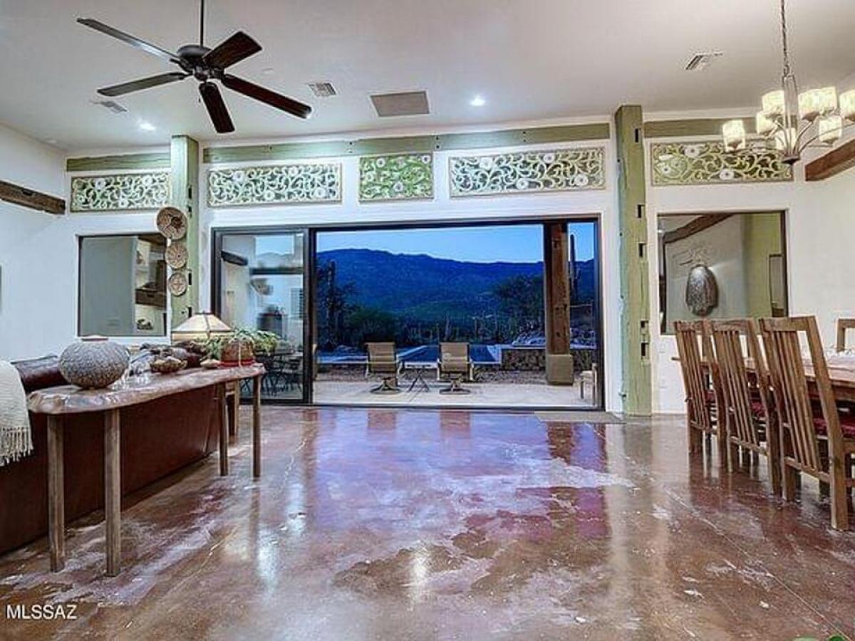 Nestled at the base of the Rincon Mtns in the exclusive X9 Ranch gated commty, this exquisite home boasts spectacular Mountain Views, unparalleled tranquility, privacy the ability to experience nature like no other! Dramatic sliding glass windows perfectly frame the Rincons, overlooking the sonoran desert your own oasis complete w/lap pool/spa huge cov'd patio. Rustic exposed beams, concrete flrs, solid wood drs, high ceils gas FP. Chefs kitchen w/Viking gas range, dbl ovens, spacious island SS appl. Luxurious primary has private patio to outdoor living. Terrific craft rm is a hobbyists dream. Greenhouses provide a prime oppty to garden to your hearts desire. All surrounded by abundant wildlife and a sense of serenity that can only be experienced in person to truly appreciate.