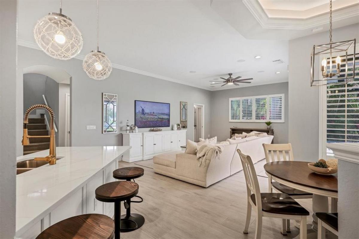 Welcome to this beautifully updated residence in the sought-after Trails neighborhood of Greenbrook Village, a favorite within Lakewood Ranch for its tree-lined streets, walkability, and connection to outdoor living. Built by Homes by Towne, this two-story home offers over 3,000 sq ft of well-designed living space, including 4 bedrooms, 4 full baths, a spacious upstairs bonus room, and a 3-car garage on an oversized lot with lush landscaping and a side water view that enhances the home’s privacy and natural setting. Inside, thoughtful upgrades create a perfect balance of comfort and style. The main level features wood-look plank flooring, high ceilings, plantation shutters, and an abundance of natural light. The expanded living and dining areas provide flexibility for everyday living or entertaining. At the center of the home, the remodeled gourmet kitchen shines with custom cabinetry, under-cabinet lighting, quartz countertops, a gas cooktop, and stainless steel appliances, flowing naturally into the breakfast nook and family room. The primary suite delivers the perfect mix of comfort and privacy, with French doors leading to a separate office that is ideal for remote work or quiet reading. The spa-style bath includes dual sinks, a soaking tub, and a walk-in shower, complemented by remote-controlled shades for comfort and privacy. Two additional bedrooms and baths are located on the main floor, while the upstairs features a spacious bonus room, a fourth bedroom, and a full bath, an ideal setup for guests, teens, or a private retreat. Step outside to enjoy your heated pool and spa, screened lanai, and fenced backyard surrounded by mature landscaping, perfect for entertaining or unwinding in the Florida sunshine. Greenbrook is part of the award-winning master-planned community of Lakewood Ranch, offering residents access to Adventure Park with sports fields, playgrounds, trails, and a dog park. Nearby, the Premier Sports Campus hosts regional tournaments and community events, and the new Athletics & Aquatics Center at Premier Sports Campus North includes a state-of-the-art public library now open, with a community pool, additional sports fields, and recreation spaces under construction, further enhancing the area’s outstanding lifestyle. The location is just minutes from Waterside Place, Lakewood Ranch Main Street, and UTC’s shopping and dining, plus top-rated schools, medical centers, golf courses, and the beautiful Gulf Coast beaches. This home combines everyday livability with modern updates and a prime location in one of Lakewood Ranch’s most desirable neighborhoods
