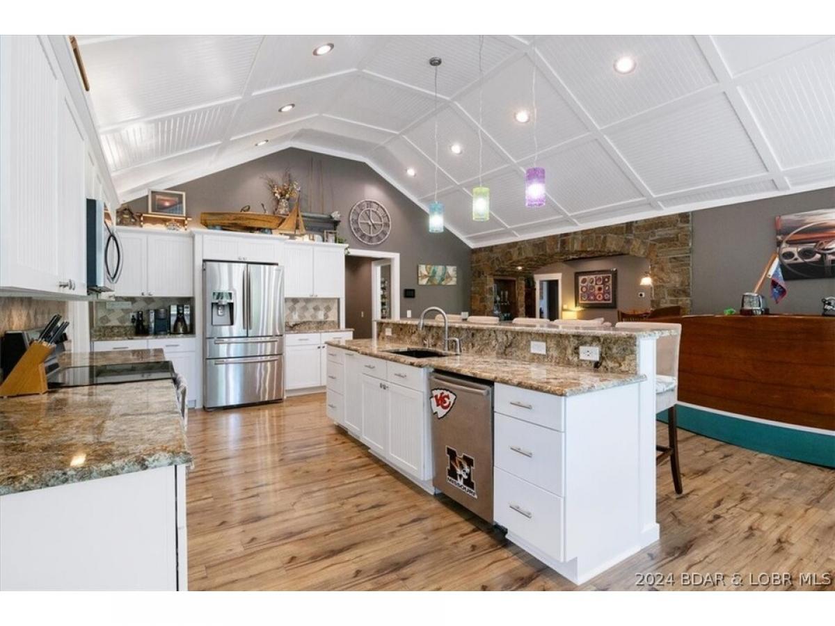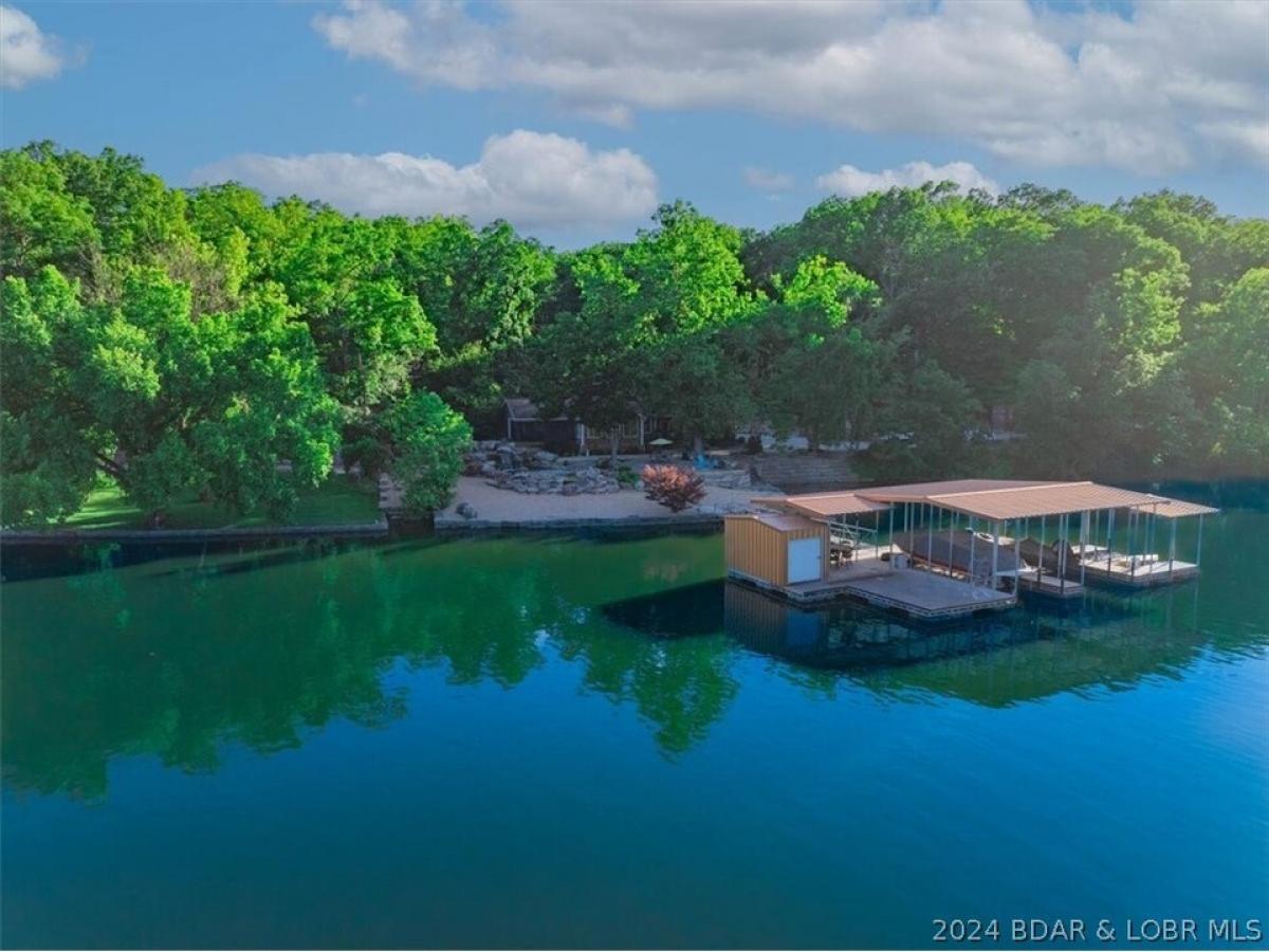 Luxurious Lakefront Living with Acreage, Rock Pool, & Tons of Upgrades!!! This stunning home features a low maintenance, natural rock pool with a grotto waterfall and expansive stone patio with only a handful of steps from the home to the water! Step inside to a beautiful kitchen with vaulted ceilings, custom cabinets, huge island, pantry and open concept layout with the living room that is surrounded with windows showcasing the lake views of practically a private cove! Get cozy in the family room with a wood burning fireplace and custom coffered ceilings or enjoy a bug free outdoor space on the screened in deck! A main level master suite featuring a showroom walk in closet and bathroom! Also on the main, three additional bedrooms, full and half bath, walk in laundry room, plus the huge 4 car garage! With heated concrete floors plus heat/air, this space offers endless possibilities. Over 1,000 feet of shoreline, 29 acres, and tucked back in Rainey Creek Cove, it is a true private retreat. Tons of wildlife in the undisturbed land that is perfect for the outdoor enthusiasts and hunters. Enjoy both lake life and more at this property! No HOA and minimal gravel to property.