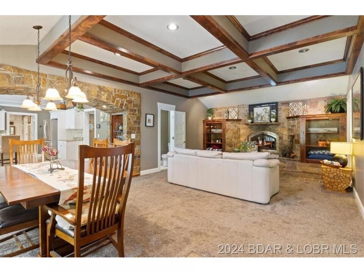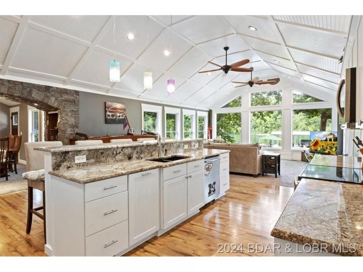 Luxurious Lakefront Living with Acreage, Rock Pool, & Tons of Upgrades!!! This stunning home features a low maintenance, natural rock pool with a grotto waterfall and expansive stone patio with only a handful of steps from the home to the water! Step inside to a beautiful kitchen with vaulted ceilings, custom cabinets, huge island, pantry and open concept layout with the living room that is surrounded with windows showcasing the lake views of practically a private cove! Get cozy in the family room with a wood burning fireplace and custom coffered ceilings or enjoy a bug free outdoor space on the screened in deck! A main level master suite featuring a showroom walk in closet and bathroom! Also on the main, three additional bedrooms, full and half bath, walk in laundry room, plus the huge 4 car garage! With heated concrete floors plus heat/air, this space offers endless possibilities. Over 1,000 feet of shoreline, 29 acres, and tucked back in Rainey Creek Cove, it is a true private retreat. Tons of wildlife in the undisturbed land that is perfect for the outdoor enthusiasts and hunters. Enjoy both lake life and more at this property! No HOA and minimal gravel to property.