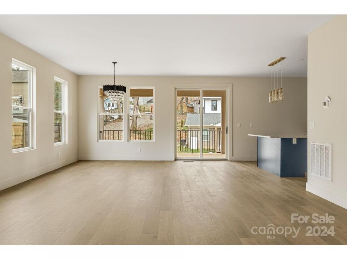 Conveniently located between Biltmore Village, Biltmore Park amp; the Blue Ridge Parkway, this contemporary home blends modern design w/ a prime Asheville location. The open-concept lower level is ideal for entertaining, featuring a spacious living area, dining space amp; sleek kitchen filled w/ natural light from floor-to-ceiling windows. A covered deck off the kitchen offers the perfect spot for year-round outdoor dining amp; relaxation. Upstairs, the primary suite includes an ensuite bath w/ a walk-in shower, dual vanities amp; a large walk-in closet. Two additional bedrooms share a full bath w/ a separate toilet closet, amp; a laundry closet provides a washer/dryer amp; extra storage. Stylish finishes include no-scratch engineered wood flooring, recessed lighting amp; minimalist cabinetry w/ display uppers. Flooded w/ natural light amp; convenient to everything Asheville has to offer, this stylish home is minutes from shopping, dining amp; outdoor adventures.