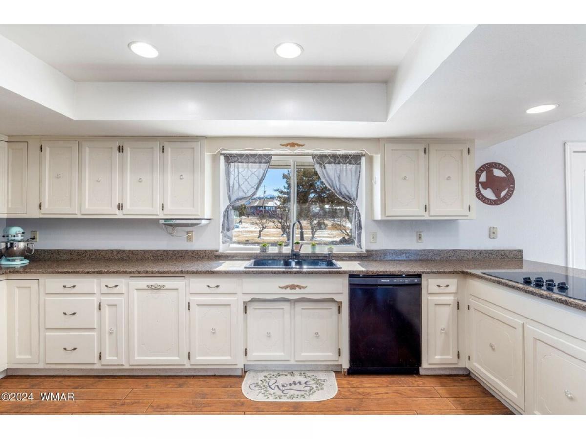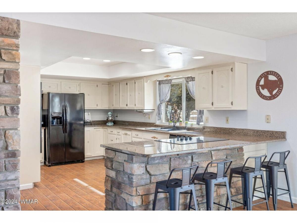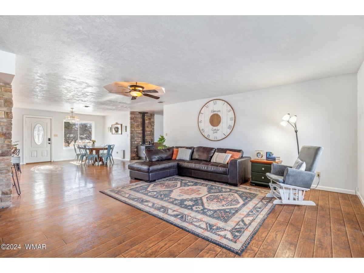 PRICED REDUCED!!!! This spacious home with three bedrooms and two full baths on 2.38 acres in the White Mountains of Arizona offers a great combination of comfort and outdoor amenities. The kitchen has newer appliances and solid surface countertops. Newer double-paned windows provide energy efficiency and improved insulation. Cozy up to one of the two Wood Burning Stoves. The Apple Orchard adds a delightful touch, providing not only natural beauty but also the potential for enjoying fresh fruit. A partial basement with a great room. Sit on the back patio and wait for your turn on the pickleball court, offering a recreational space for residents and guests to stay active and have fun. bring your creative side for possible new flooring and some updates. Additionally, the nearby opportunities for fishing and hunting add to the appeal for those who enjoy outdoor activities. The inclusion of RV hook-ups provides flexibility for guests or owners who enjoy traveling with their recreational vehicles. Horses welcome. This well-rounded property combines modern comfort with the beauty and recreational opportunities close by.