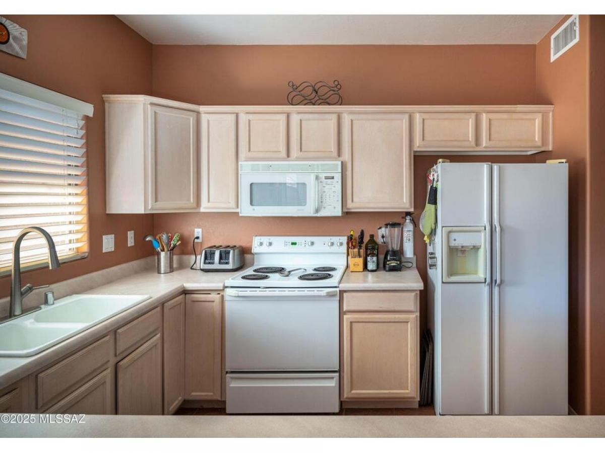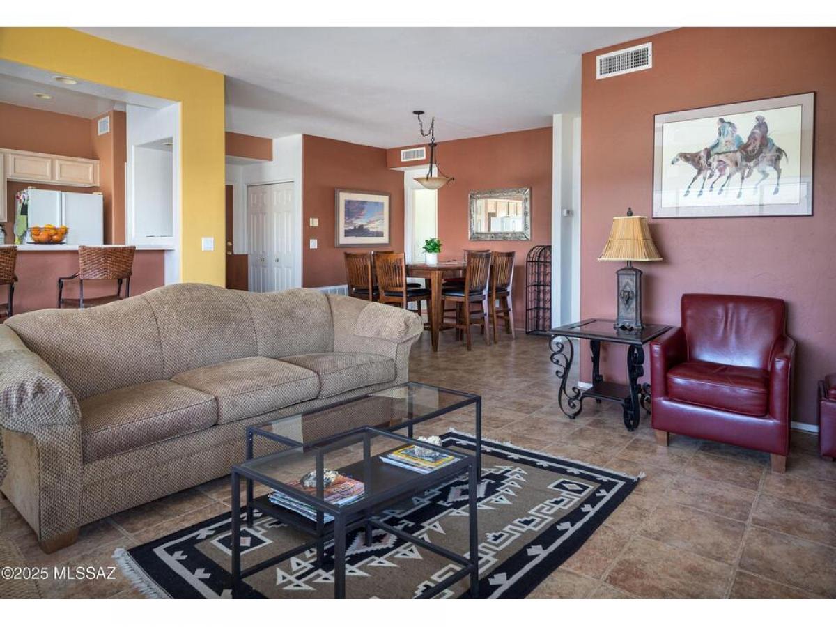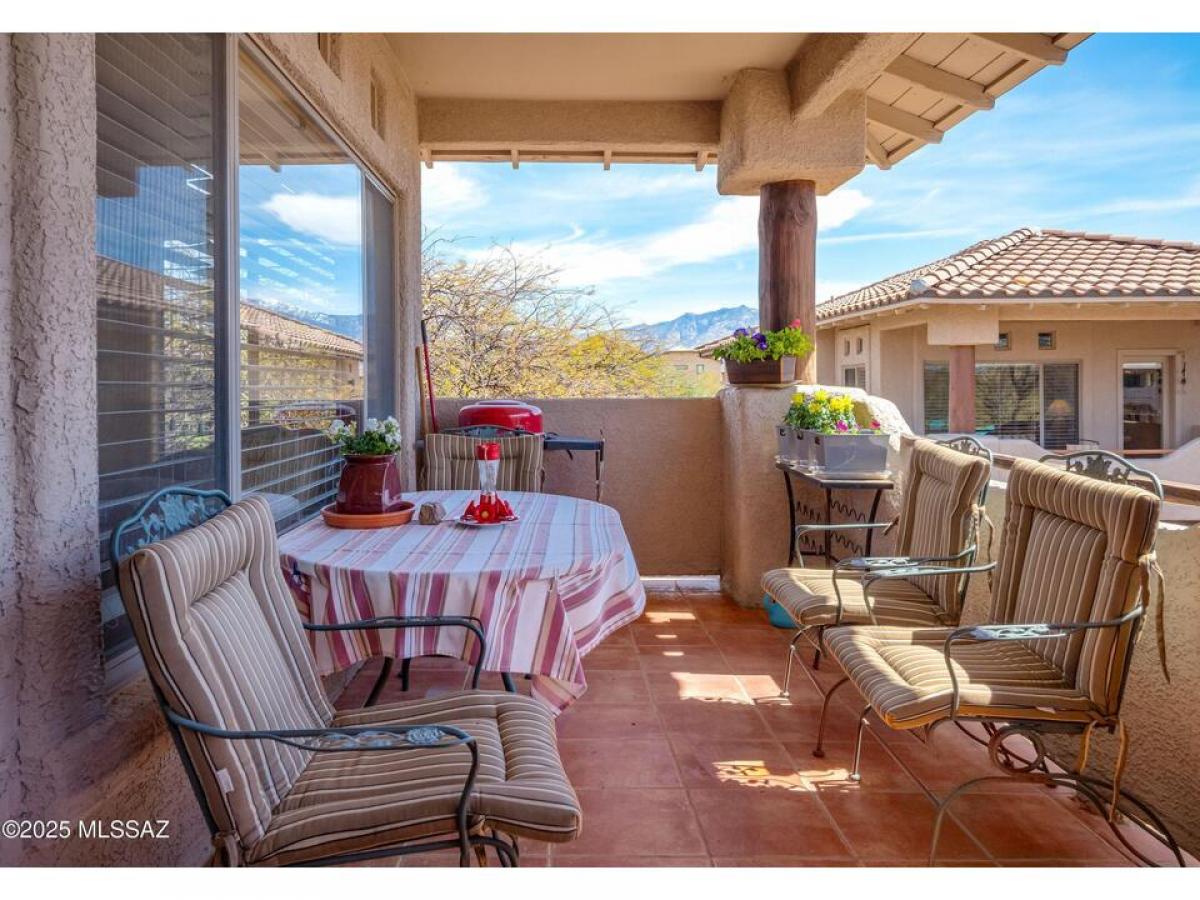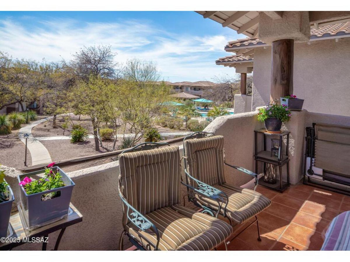 Fantastic 1,240sf 2BR/2BA 2nd floor Casita adjacent to Vistoso Trails Nature Preserve for walking, biking, bird watching biking, Great location overlooking Courtyard Pool Area w/Mountain views beyond. Open floor plan has breakfast bar, pantry, dining area built-in media center w/niches. Newer flooring, carpet in BRs, wood blinds custom paint. Turn-key package includes furniture, appliances, housewares decorator items. Soak in the mountain views and the tranquility of the area from the private covered patio. Enjoy this casita yourself year-round, part-time or short-term rental opportunities are available. Maintenance-free lifestyle with HOA that includes heated pool/spa, trash removal, water, internet, streets, exterior paint, roof pest control.