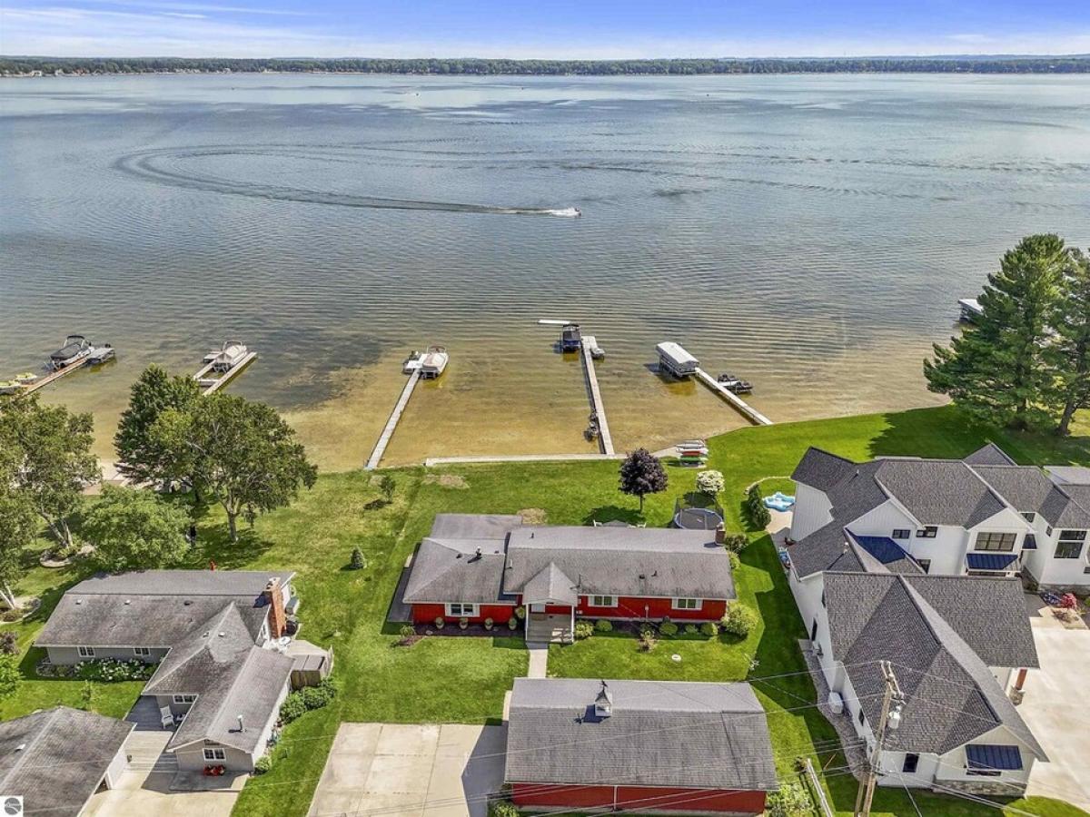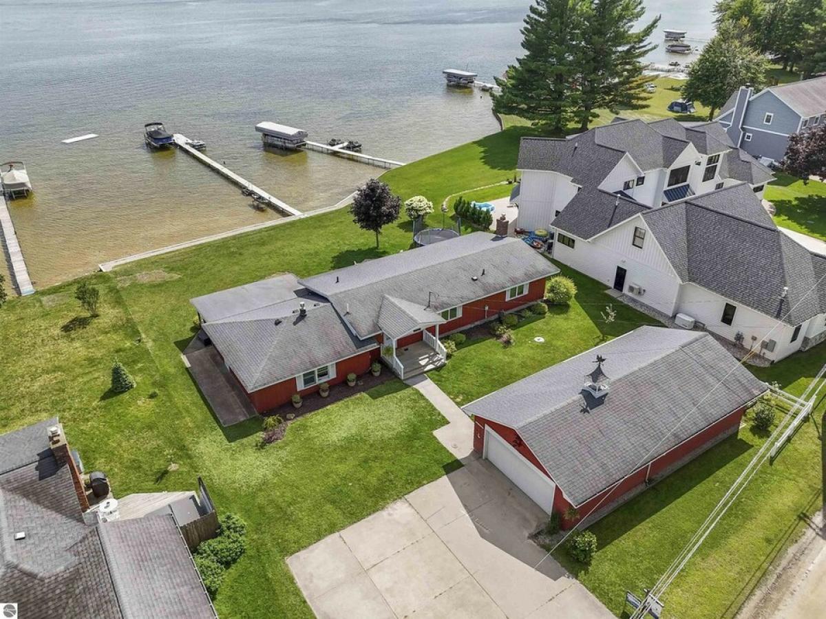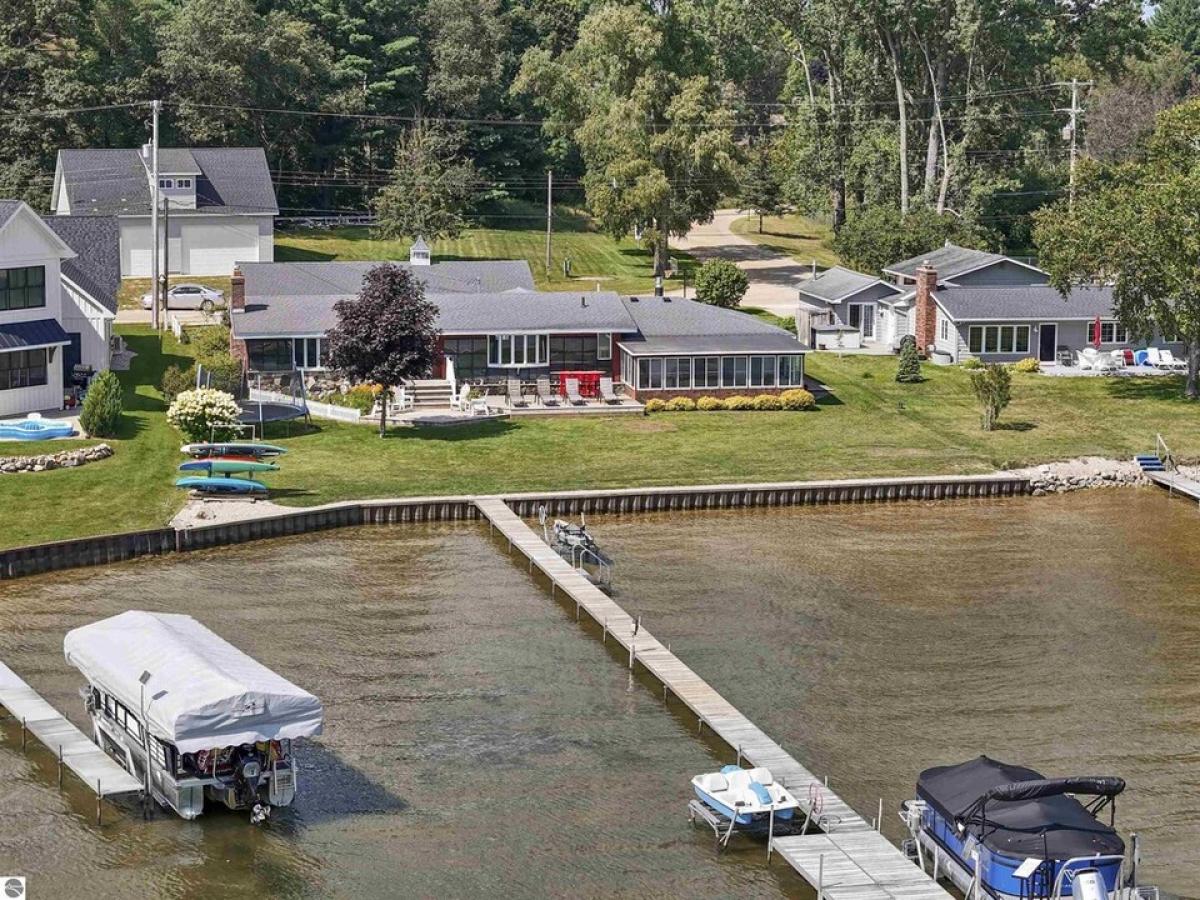 Nestled along the pristine sandy bottom shores of Lake Missaukee in Lake City, this enchanting home offers one of the rarest commodities left on Earth: PRIVATE and LEVEL walkout lake frontage. You will immediately feel transported to a simpler, more carefree time. This property is not just a house; it’s an invitation to create cherished memories. As you approach this charming 3-bedroom, 2-bathroom, 2-car Garage home with electric car compatibility, you will be greeted by a beautiful, low-maintenance yard. As you enter the property, you will immediately feel a true sense of tranquility and seclusion. The exterior features warm wood tones and a giant plush grass yard big enough for all summer outdoor activities. The waterside multi-level deck lets you relax and embrace the stunning surroundings while overlooking the lake. Step inside, and you are welcomed by a bright, airy, open living space that seamlessly combines comfort and elegance. The large windows flood the room with natural light, providing panoramic views of the sparkling lake—the perfect backdrop for cozy evenings spent with family and friends. The inviting living room features a brick fireplace, an ideal spot to gather after a day of outdoor adventures. The kitchen has ample counter space and is ideal for everyday meals and entertaining guests. The primary suite boasts an en-suite bathroom for added privacy. This waterfront home lends itself perfectly to swimming, boating, paddle boarding, and fishing. Ready for a day on the water? Walk directly to the dock and enjoy easy lake access. Let your imagination take over as you decide how to enjoy the 3-season sunroom. The current owners love diving into a good book on rainy days. Downtown Lake City is also just minutes away, so you can easily enjoy a night out. This lakefront home provides an idyllic setting for relaxation and outdoor adventure, whether as a year-round residence or a seasonal getaway. Recent Updates: Steel Sea Wall, Flooring & Paint
