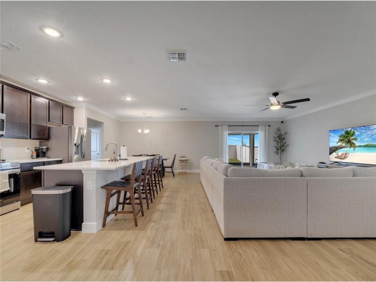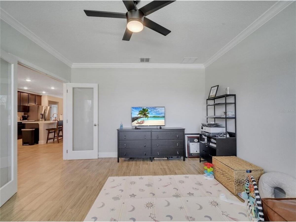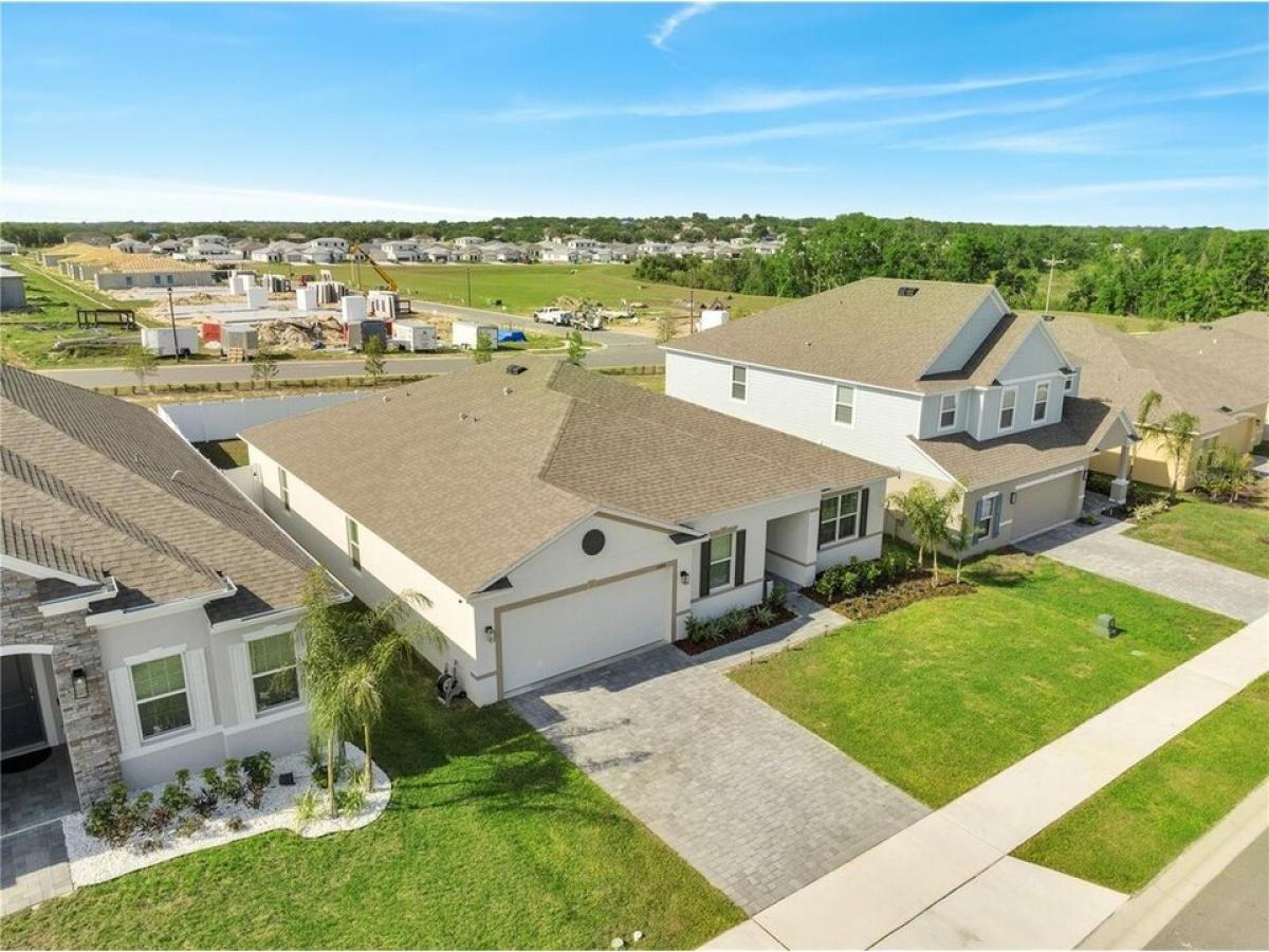 Upgrades Galore ndash; Move-In Ready! Why wait to build when this almost-new home has it all? This beautiful 3-bedroom, 2-bathroom home features a flex room thatrsquo;s perfect for an office or playroom, complete with French doors for added charm and privacy. Step inside to an inviting open floor plan thatrsquo;s perfect for entertaining, with volume ceilings and crown molding that add elegance to every room. The chefrsquo;s dream kitchen is anchored by a large island with bar seating and stainless-steel appliances, while the upgraded wood-look ceramic tile throughout the main living areas adds a sleek, modern touch. With deluxe interior trim and oversized windows, every detail of this home has been carefully designed for style and functionality. Relax or entertain on your spacious screened-in patio or enjoy the privacy of your fully vinyl-fenced yard ndash; plenty of space to design your dream pool if desired! The oversized garage provides ample storage space, and yoursquo;ll appreciate the fiber internet and cable package included in the HOA fee, along with access to 2 playgrounds, a walking trail, and no CDD fees. This home offers all the upgrades you want without waiting. Itrsquo;s truly move-in ready, with plenty of space, style, and modern amenities. Donrsquo;t miss out on this opportunity!