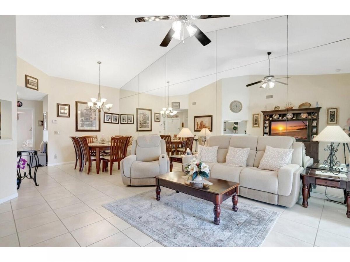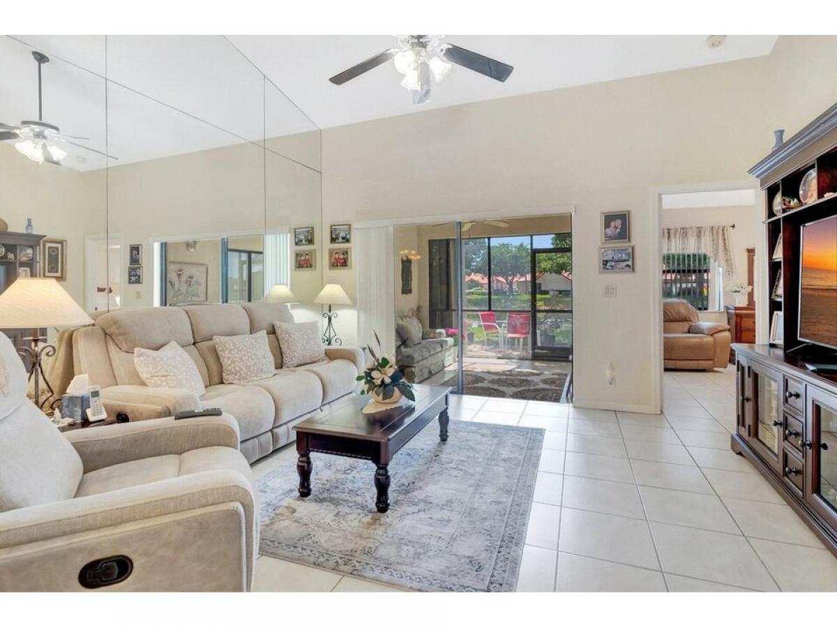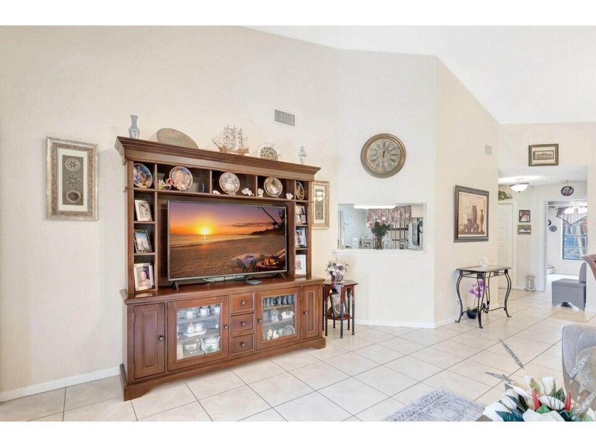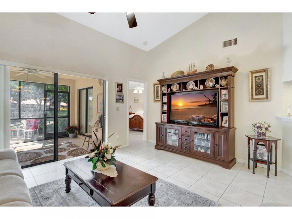 Updated spacious Two Bedroom Villa in the sought after community of Independence Bay. Completely tiled throughout. Kitchen has been updated, and has all white appliances.. Both Bedrooms have ensuites. The guest Bedroom has a Beautiful Custom Murphy Bed that provides comfort and Storage at the same time. The ensuite Bathroom has two sinks/vanities and a tub Shower combo. There are two entrances to the Guest Bathroom. The Dining/ Living Room has Mirrored walls which adds perspective and openness. The Primary Bedroom has an ensuite with a step in shower. Main Closet is adorned by closet systems. Bedroom has a Slider out to the Covered Patio for additional living space. Outside of the Lanai is a Paved patio giving you the ultimate view of the lake while sipping your morning