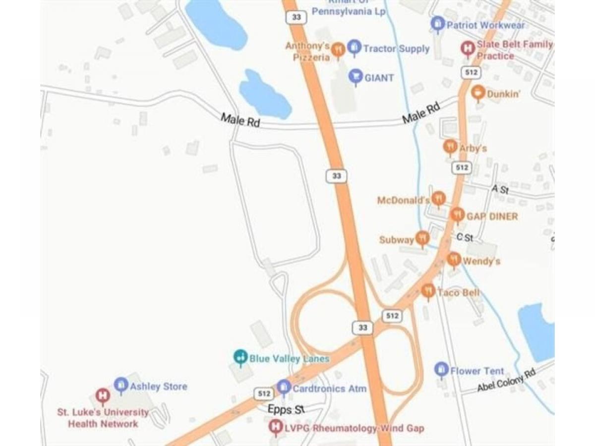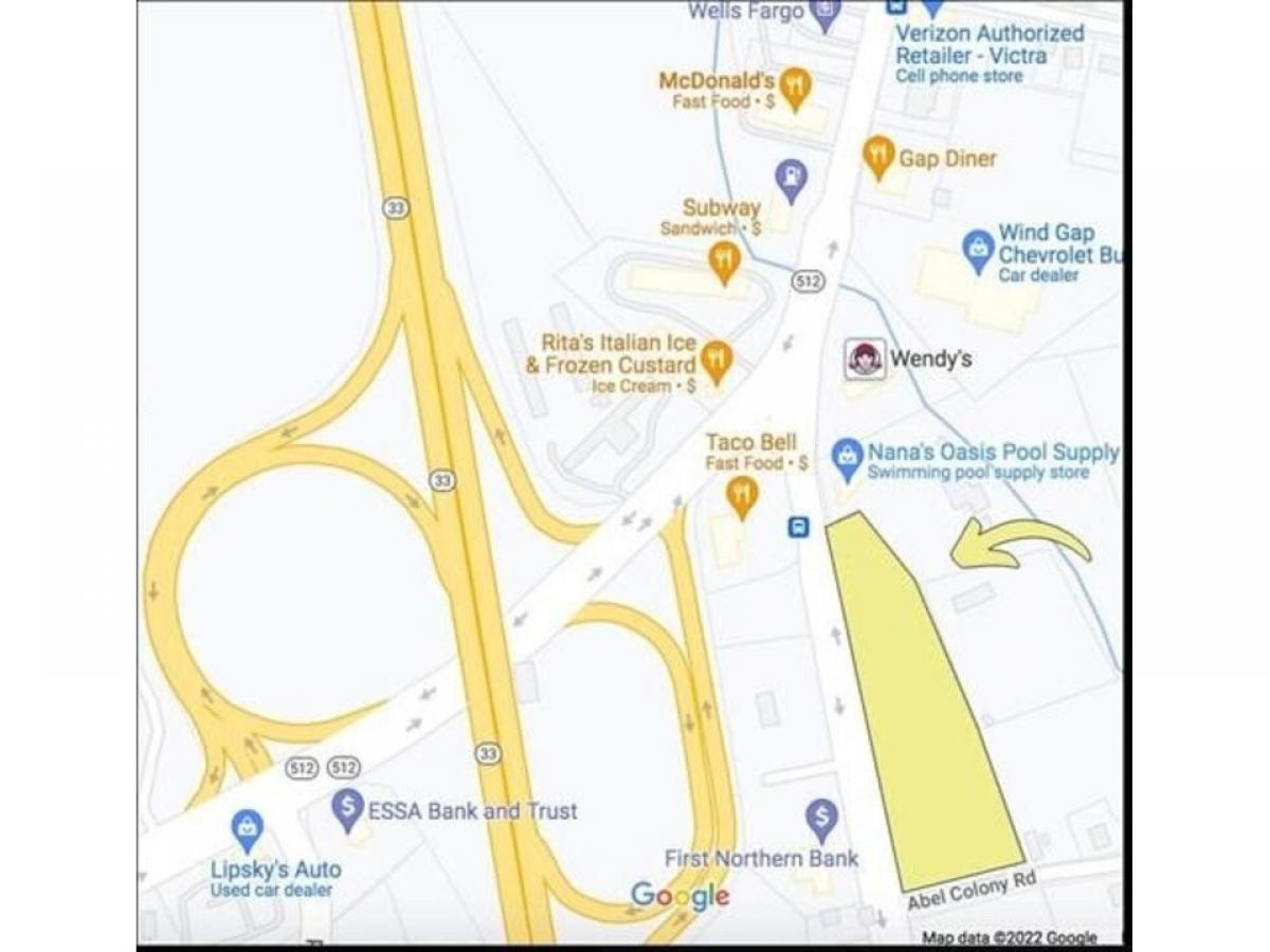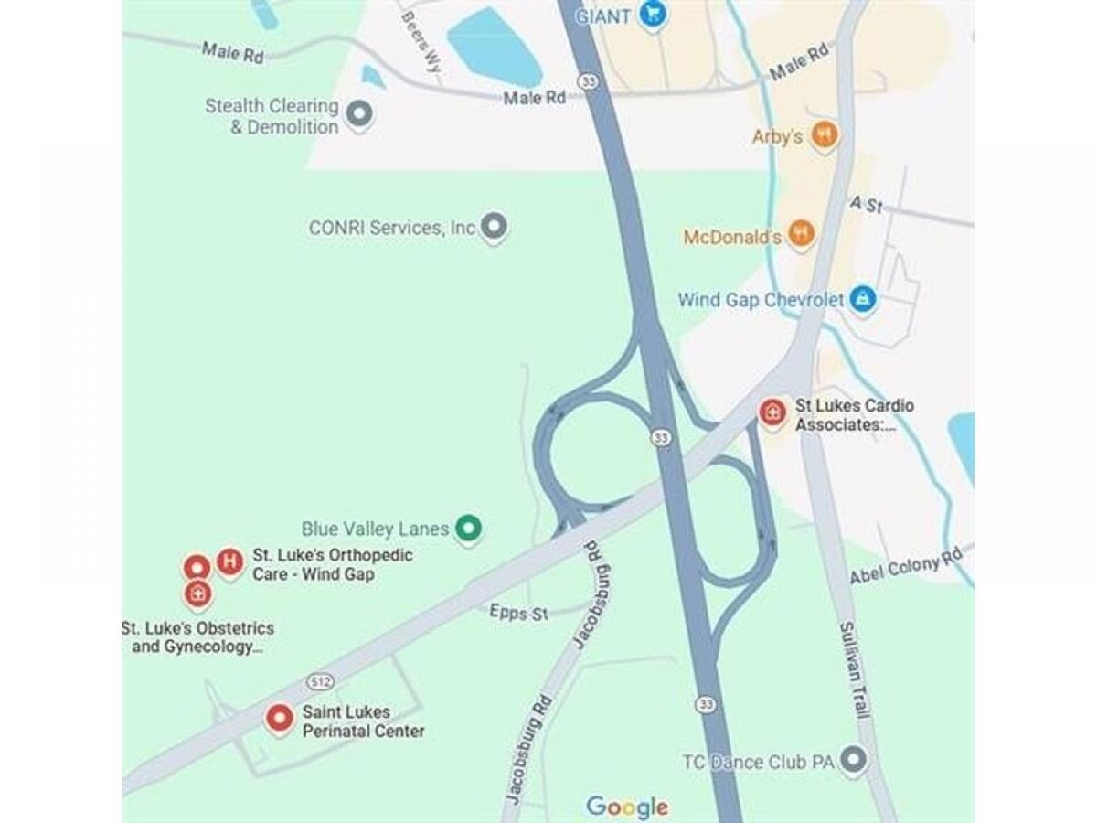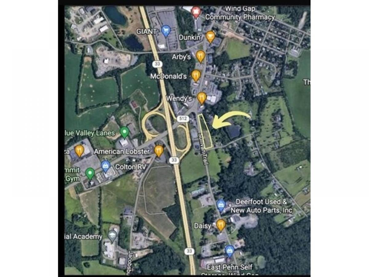 For Sale, Ground Lease, Build to Suit - Highway Interchange zoned 2.9 acres of approved amp; improved land at the foot of the Rt 33/512 Wind Gap interchange. Part of the bustling Northampton County, Pa Rt 33 corridor which connects major Interstates Rt 78 amp; Rt 80. Under 20 mins to NJ, 90 min to NYC amp; Philadelphia. Site is close to many new companies including St Lukes, LVHN/Coordinated Health and the new Starbucks opening soon right across the street. Approved for 3 story, 31,050 SF Medical building with 120 parking spots (options for more parking). Engineering plans available upon request. Many other commercial use rights including Hotel, Storage, Convenience store, Fast food, etc. (check with Plainfield Township for complete list and if Residential is an option). Owner will subordinate, finance, build to suit for financially strong tenant. Corner lot with over 900 ft of road frontage. AADT 53,000(Rt 33/512). Engineering and many improvements completed. Public water and sewer. Great opportunity with very flexible owner financing. All offers will be reviewed.