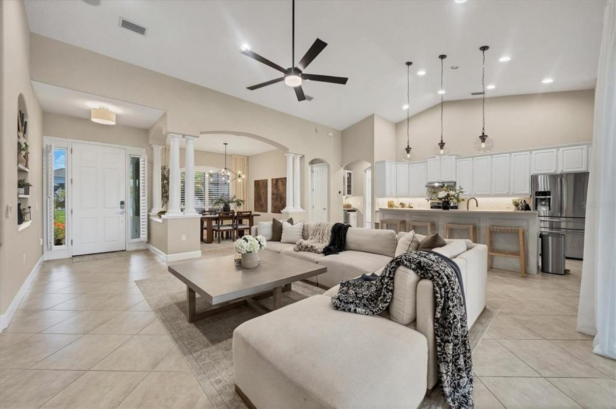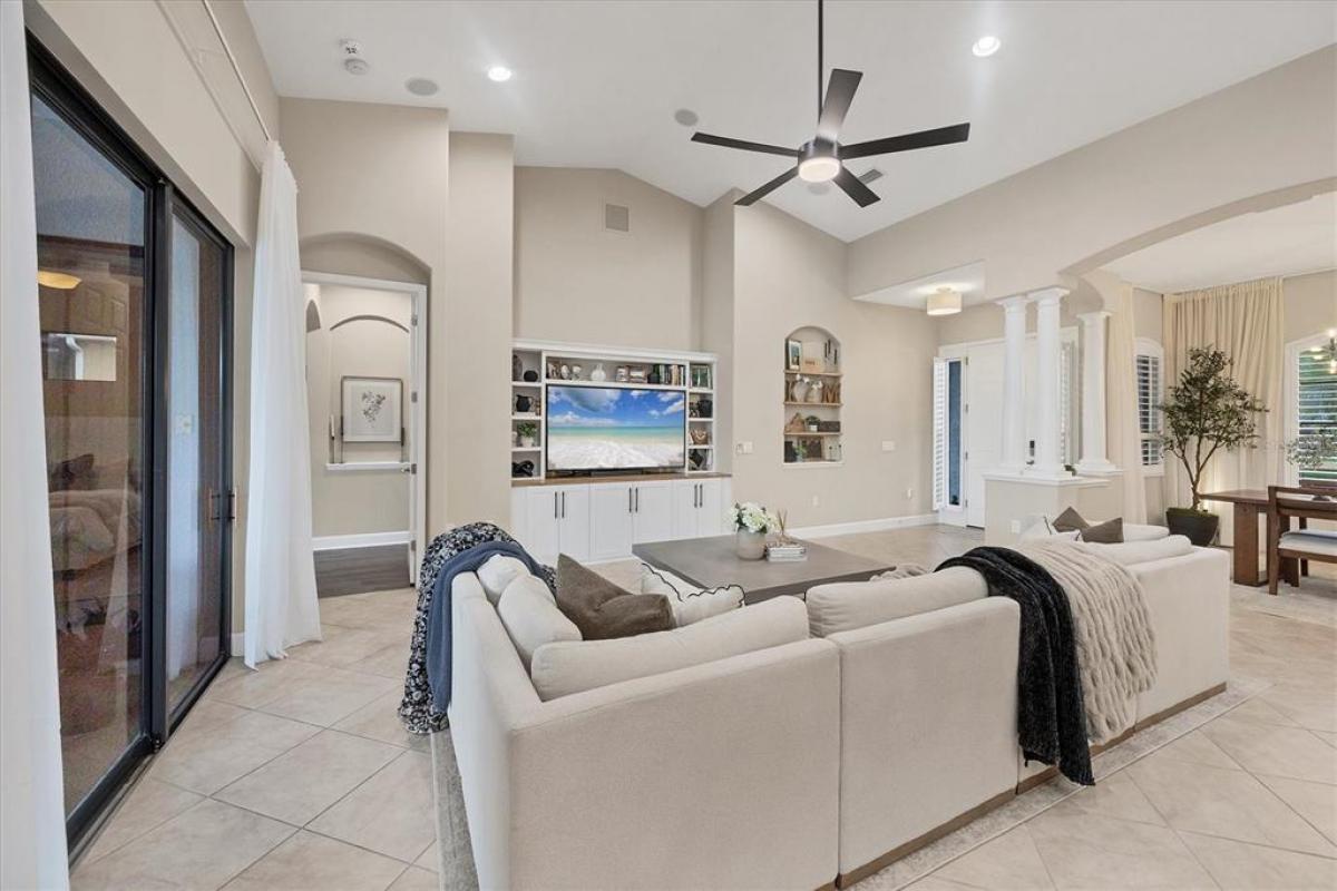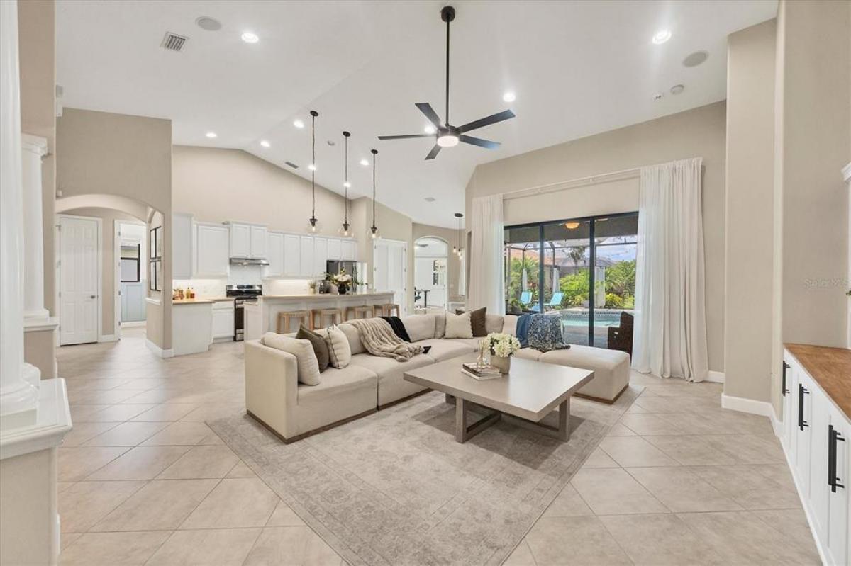 Under contract-accepting backup offers. Location, location, location! This beautifully updated home in The Ravines of Greenbrook Village sits on one of the most desirable homesites in the community, framed by a magnificent oak tree and overlooking a peaceful lake. A sparkling private pool invites you to relax and entertain—now with a brand-new pump (2025).The curb appeal is undeniable, with landscaping that has been thoughtfully and lovingly enhanced, creating a warm welcome before you even step inside. Once indoors, you’re greeted by a bright, open great room with soaring ceilings and sliding glass doors to the lanai. The formal dining room flows seamlessly into the open kitchen and dining nook, now showcasing a complete style update: new backsplash, redesigned island, freshly painted cabinets, and new hardware—paired perfectly with a new oven and range hood (2024) and a charming built-in breakfast bench.The bathrooms have been tastefully reimagined with modern finishes and design details that feel fresh yet timeless. All-new hardware, ceiling fans, plumbing fixtures, and light fixtures enhance the home’s cohesive, updated look.Comfort and convenience are elevated by smart home features that control the stereo, lighting, fans, security system, sprinklers, and a smart thermostat allowing you to manage heating and cooling from anywhere. A newly built entertainment center adds both style and function.Four generous bedrooms with luxury vinyl flooring and built-in closet systems offer ample space, with bedroom 4 including its own custom built-in closet—perfect for guests or family. Practical upgrades abound: a striking new roof (2024) that delivers peace of mind for years to come, tankless water heater (2022), HVAC (2023), newer refrigerator, washer, and dryer, and a Level 2 EV charger in the garage.For qualified buyers, a VA assumable loan offers a unique financing opportunity.Located in the heart of Lakewood Ranch, you’ll enjoy access to top-rated schools, parks, shopping, and healthcare. Explore walking trails, dog parks, fishing ponds, golf courses, and nearby sports facilities. With easy access to I-75, Sarasota’s cultural attractions and the pristine Gulf beaches are just minutes away.Experience the best of Florida living—modern updates, an unbeatable location, and move-in ready comfort await you in this exceptional home.