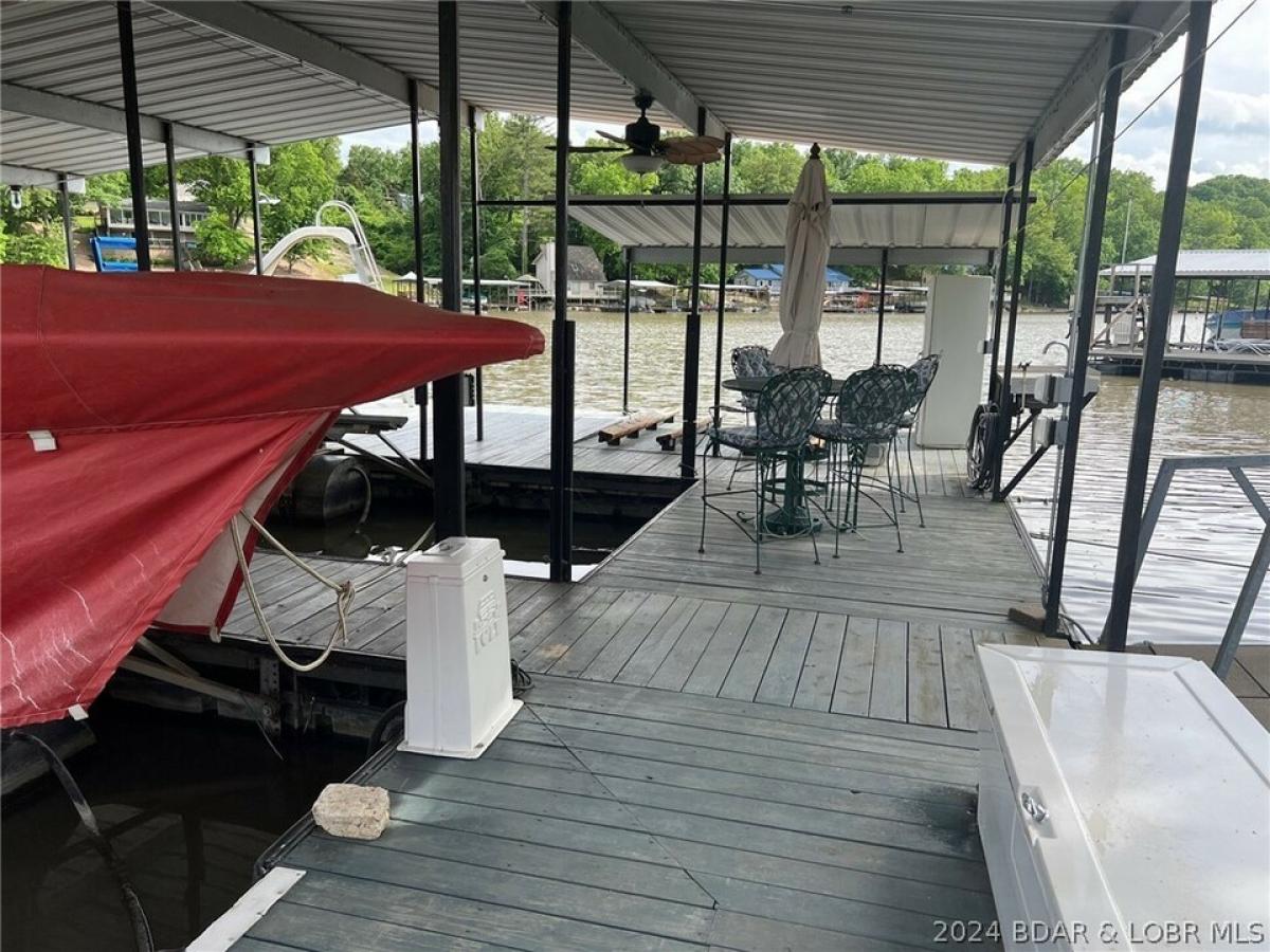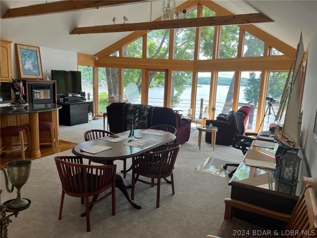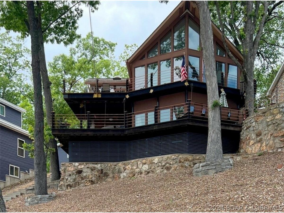 Quality Built Lake Home with many extra's and fabulous view. Located at 39 mm with good deep water for year around boat use! If you like quality wood floors, trim, and cabinets you will love this home. Main level has wood flooring with wood borders around carpeting and notice all the wood doors, trim, cabinets, kitchen island and around windows throughout. Master Bdrm. closets both cedar. Take special notice of ceilings especially in lower level are unique. Full Kitchen on each level and owner has often put lower level in vacation rentals as can close levels off easily. Nice Decks to enjoy the awesome view along with extended patio area on lower level. Lake frontage patio and walkway area has bench seating and frontage is desert landscaped so no mowing needed to take up your lake vacation or weekend time! Home has storm full concrete (10'6"x 10'6")shelter room/storage located at foundation just inside lowest deck underpinning. Water Depth at back of boat 23ft. Front of Boat 20ft. at 658.67 water level. This home is loaded with extra's and shows pride in ownership throughout.