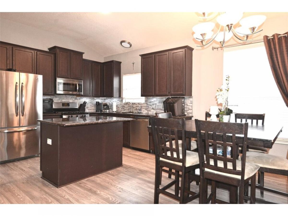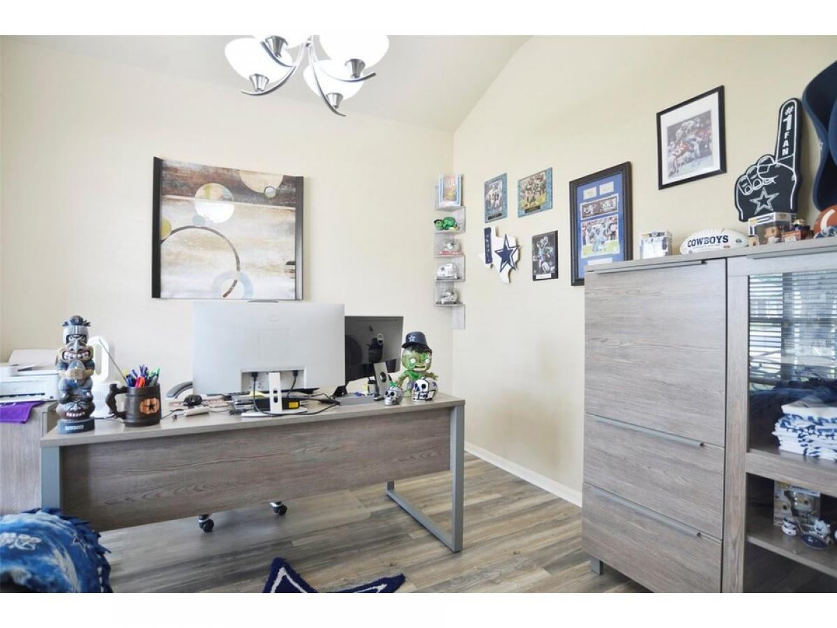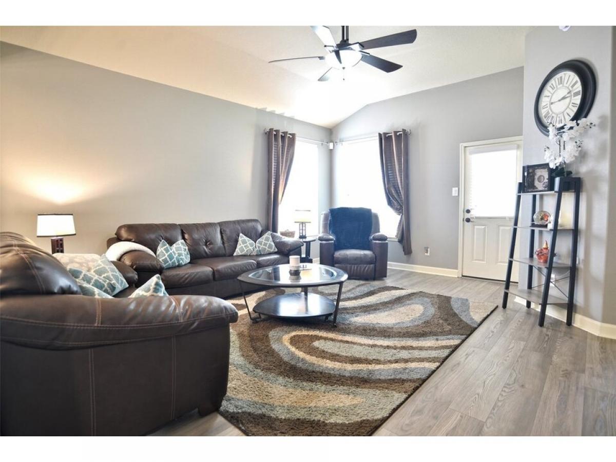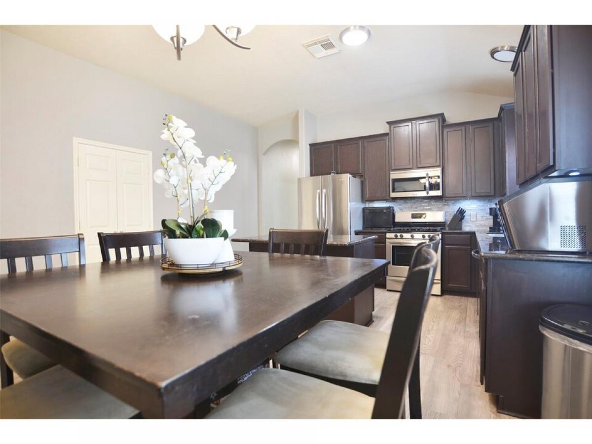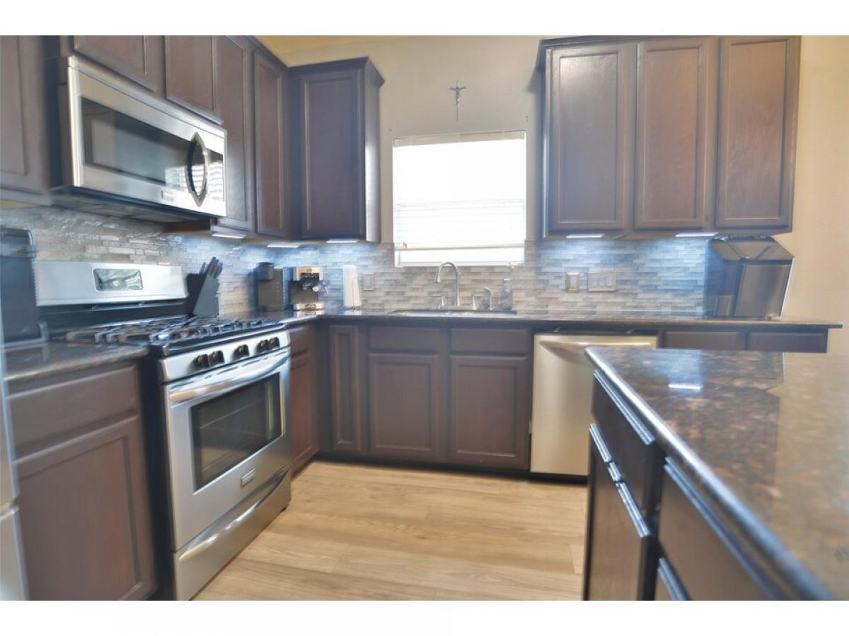 D R Horton popular one story with oversized covered front porch! Split floor plan, beautiful updated kitchen opens to living and dining, huge island, cabinets with new modern paint, stainless steel appliances, laminate flooring living, dining and kitchen, soaring ceiling, huge primary bedroom with walk in closet, huge backyard with covered patio and separate deck. Backyard also features a large storage building. Roof is just 1 yr old and HVAC just 2 years old!