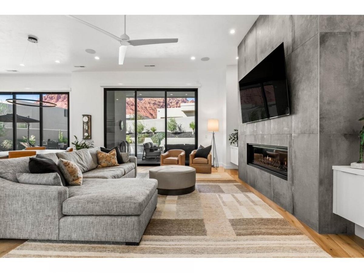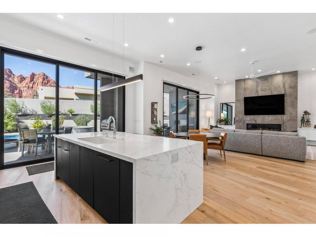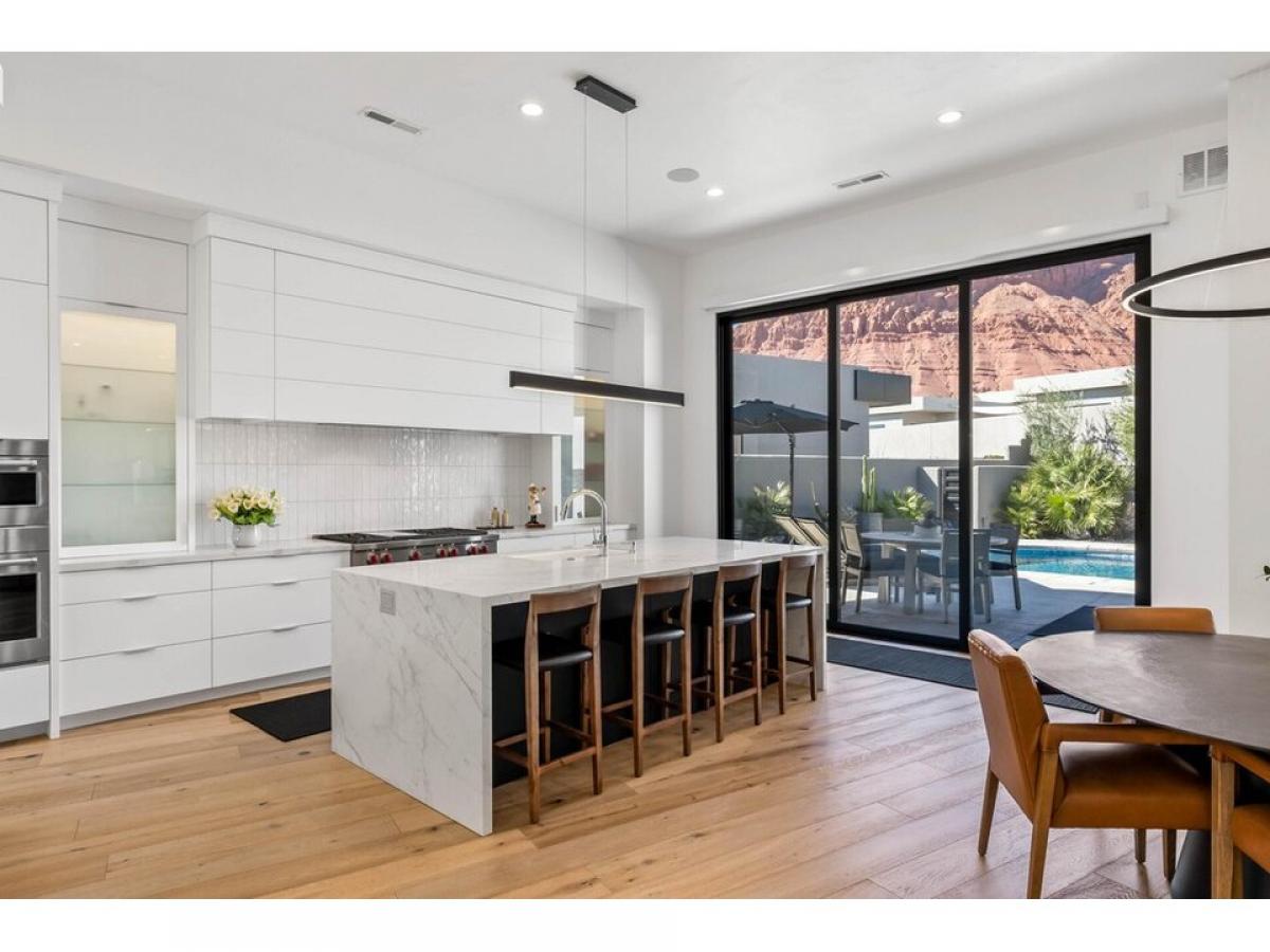 Nestled within the exclusive gated community of The Palisades at Snow Canyon, lies a stunning luxury home that embodies the epitome of elegance and sophistication. This timeless residence boasts three spacious bedrooms, each a serene retreat, accompanied by an additional office/flex room perfect for working from home or pursuing hobbies. The heart of this luxurious abode is its gourmet kitchen, where culinary dreams come alive. Equipped with top-of-the line Subzero, WOLF, and Cove appliances and sleek, stylish cabinetry, this kitchen is a true showstopper. Porcelain waterfall ledge island and countertops throughout the kitchen and pantry. The adjacent dining area provides the perfect setting for dinner with a view. Expansive sliding doors provide a natural flow for indoor/outdoor entertaining. For overflow cooking you can also take advantage of the Coyote brand outdoor built in BBQ with side burners. Nothing was missed in this private backyard. Whether you want a dip in the saltwater pool, hot tub, or just lounging by the outdoor fireplace. There is also a very long side yard if you happen to have a four legged friend. Never miss a show with the indoor/ outdoor HEOS full sound system and outdoor television. Other wonderful features are the 2 thermostats that control the 4 HVAC zones, including a large storage room with access from the garage. Marble Countertops in the master bathroom, porcelain tile floors, walk in steam shower, AXOR fixtures, outdoor access form two grande en suite bedrooms. Enjoy central vac plumbed throughout the house and the garage for easy vehicle cleaning, water softener. The community is just as impressive as the home, with trail access right outside the gates. Don#039;t miss this opportunity to own in one of the most desirable locations in southern Utah!