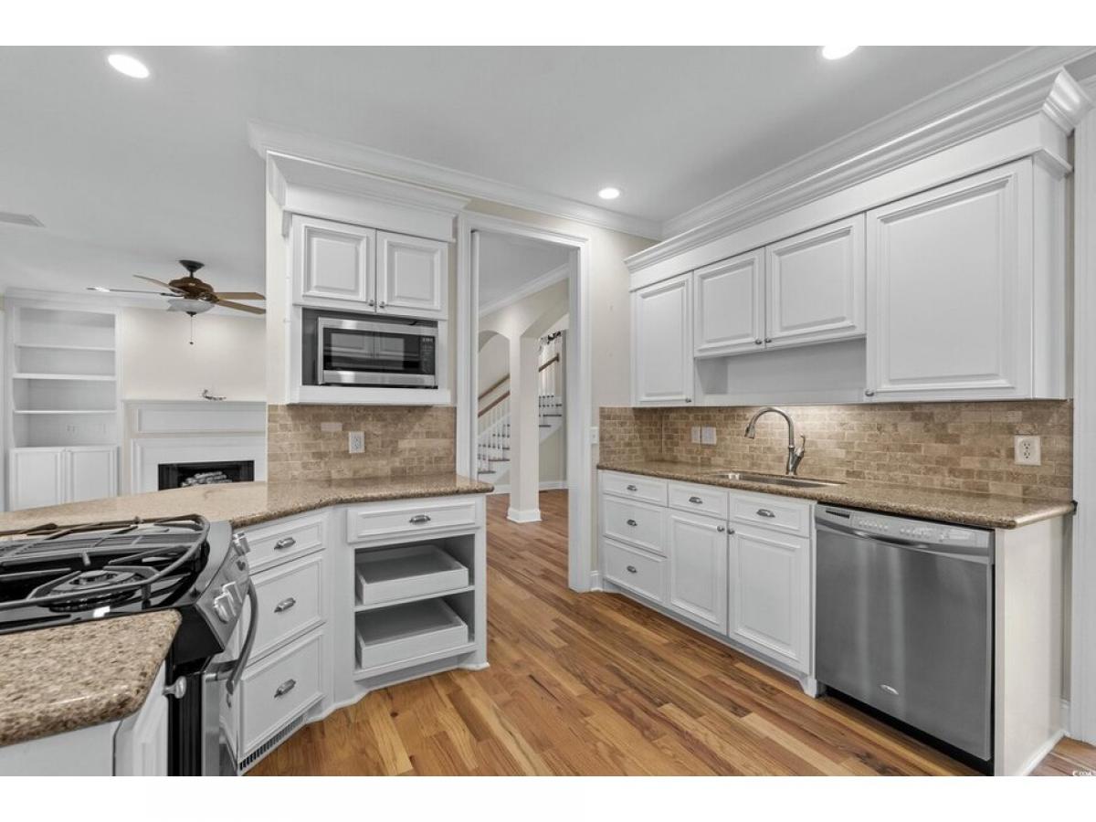 Nestled in the picturesque Mt. Gilead neighborhood of Murrells Inlet, SC, this exquisite Lowcountry-style home offers a harmonious blend of Southern charm and timeless elegance. Boasting five spacious bedrooms and three and a half bathrooms, the residence is perfectly positioned on a direct marshfront lot, providing serene water views and unparalleled access to nature. A private pier and boat dock invite endless opportunities for boating, fishing, kayaking, and enjoying the tranquil marsh setting. You#039;re welcomed by a beautiful covered front porch and foyer entry. Gorgeous Mature Oak Trees envelope the property. The open floor plan is accentuated by Oak hardwood floors, 9 ft ceilings, custom built-ins, and a cozy wood-burning fireplace in the living room. Double French doors open to a screened veranda, offering panoramic marsh views and a perfect space for relaxation. The formal dining area, highlighted by elegant arched doorways, seamlessly connects to a gourmet kitchen equipped with stainless steel appliances, a gas (propane) range, Silestone countertops, a breakfast bar, tile backsplash, and a charming breakfast nook. The master suite is a private retreat featuring direct access to the veranda, a walk-in closet, an additional double-door closet, and a master bathroom with a whirlpool tub and walk-in shower. The main level also includes a guest bedroom with a full bath, an office/flex room, and a laundry room with upper and lower cabinetry and a full sink. Ascending the staircase, you#039;ll find a landing adorned with built-in bookshelves and a dedicated storage/wrapping area. Three additional guest bedrooms reside on this level, two of which have access to the rear balcony, along with one full and one half bathroom. The ground level features an attached two-car garage, a workshop/studio, a spacious flex area with walk-out access to a covered rear porch and yard. Plenty of room for a Pool... Located near renowned attractions such as Huntington Beach State Park, Brookgreen Gardens, the Murrells Inlet MarshWalk, and an array of restaurants, shopping destinations, golf courses, and entertainment venues, this home offers the quintessential coastal lifestyle. Experience the perfect blend of elegance, comfort, and natural beauty in this exceptional marshfront residence.