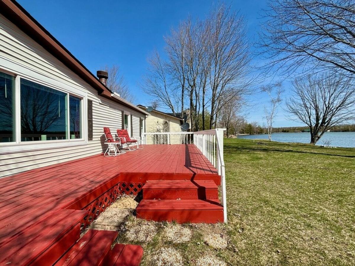 Wow! For under $250,000, you can own a 3 bed 2 bath fully furnished home with full size garage and roomy lot on a 5600 acre all-sport inland lake in Northern Michigan! New roof, all vinyl windows, blacktop driveway! Unique pull-thru 2 car garage has a sliding glass door installed on the lake side and a screen that can be installed on the road side. Truly everything you need to start enjoying your new place right away - furniture, linens, dishes, lawn and snow removal tools, paddleboat, grill, swing and more! Leaf filtering gutters, window air conditioner, newer well pump. Enjoy coffee and gorgeous sunrises by your gas fireplace or on the full length recently painted deck with included patio furniture! Call now, this won't last!