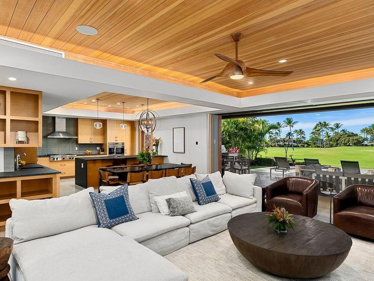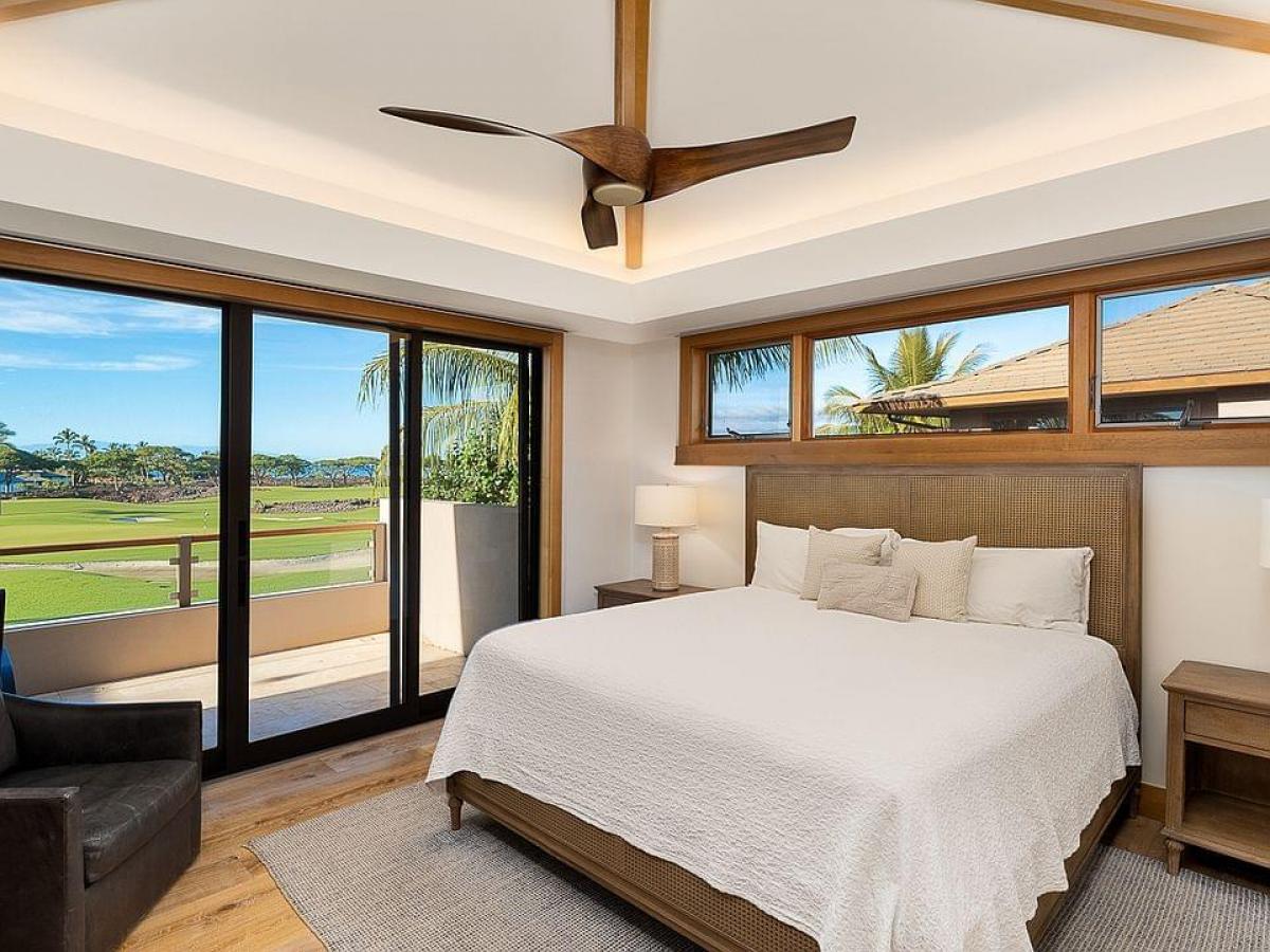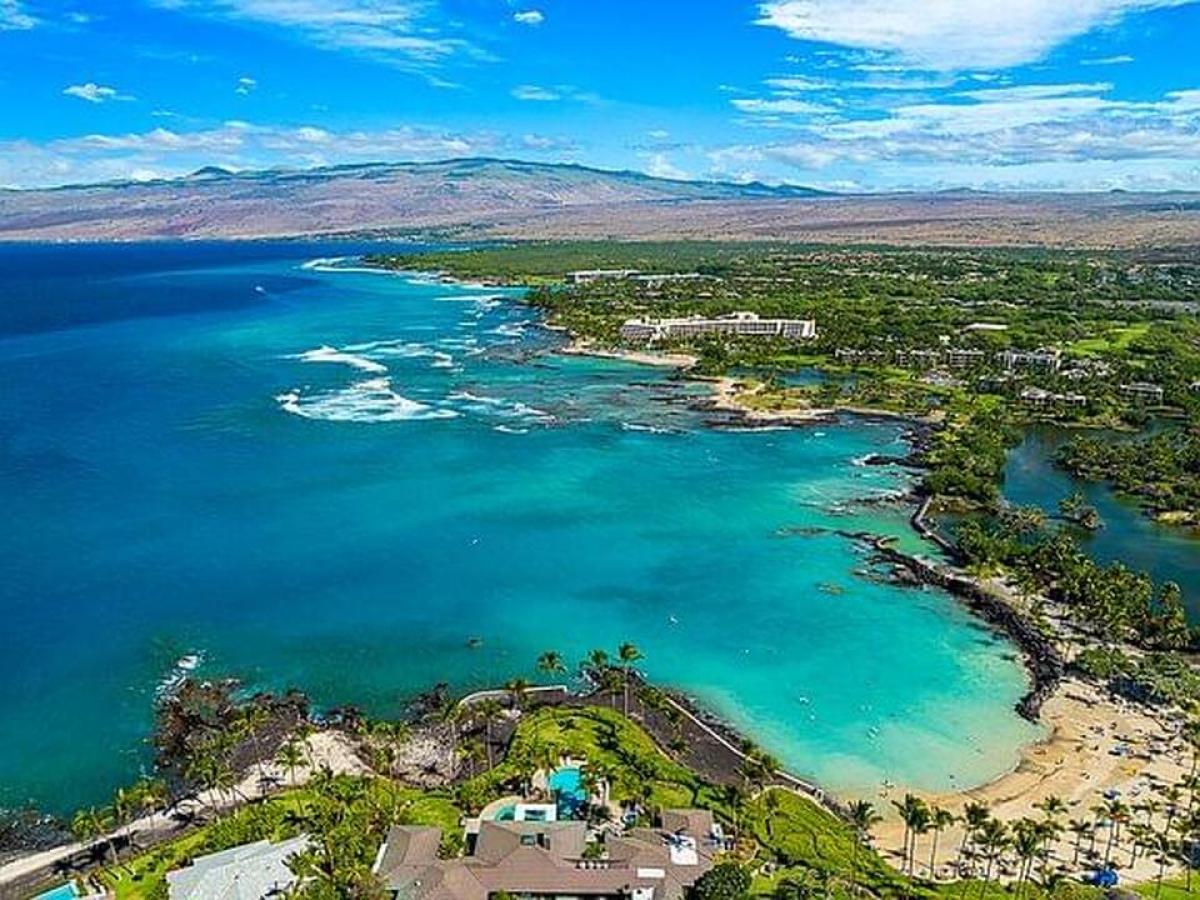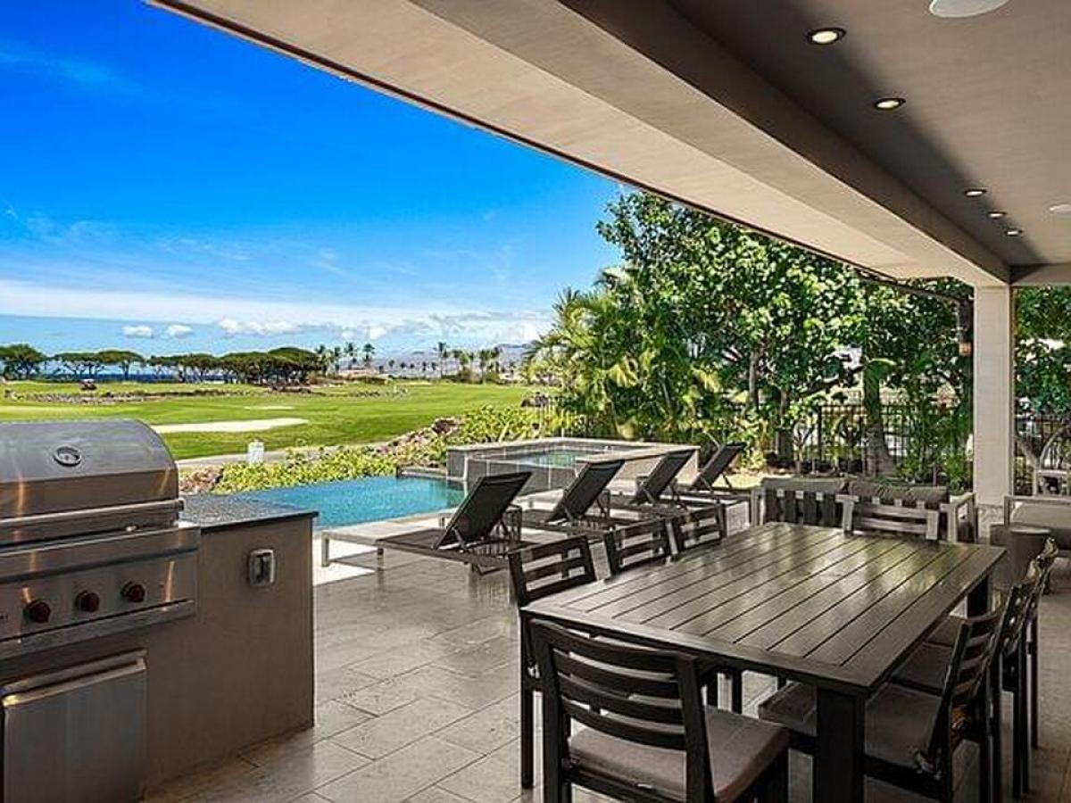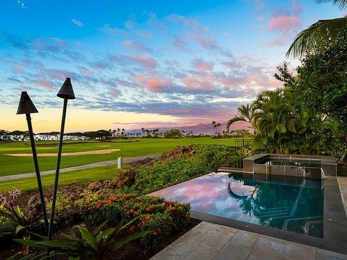 Luxury living at the world-famous Mauna Lani Resort! The Residences of Laule'a is highly sought after yet rarely available. This residence, situated on the 1st green of the Francis H. I'i Brown South Course, also offers close ocean views, captivating Maui views, and an easy walk to the private Beach Club. Exquisitely appointed, this 4 bedroom attached home is lightly used, has never been rented, and is the first time offering for resale. All bedrooms are en suite; two have an outdoor lanai ocean-facing. Upon entering you are greeted with a stunning panoramic view overlooking the infinity- edge pool, out to the 1st green of the Mauna Lani South Course, and to the Pacific Ocean nearby. Seamless indoor/outdoor living with an abundance of light to entertain, dine, and relax. Living area, dining area and kitchen create ample great room open space for island life. The upscale spacious kitchen flows to dining and living spaces and incorporates a dedicated bar sink and ice maker. Appointed with custom cabinetry, stone countertops, Wolf oven and gas cooktop, and stone flooring and hardwood, it is in impeccable condition. True outdoor living! Full sliding glass doors open for gracious indoor outdoor entertaining. Watch the action on the 1st hole green while grilling at your outdoor kitchen on the covered lanai. Infinity-edge ocean-view pool has an attached ample hot tub/spa for easy access. Upstairs, the primary and secondary suites open to a wide lanai capturing the blue gem ocean views. Enjoy the fresh air outdoor shower on the secondary suite lanai. Enhancements include custom, automatic blinds and energy-saving smart thermostats throughout the home. Retreat to your own private two story home in this exclusive gated community of only 17 homes, an unparalleled destination on South Kohala's Gold Coast.