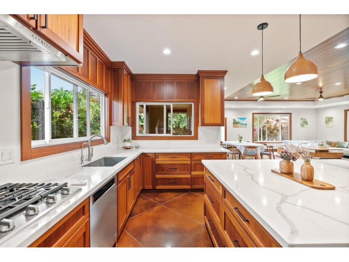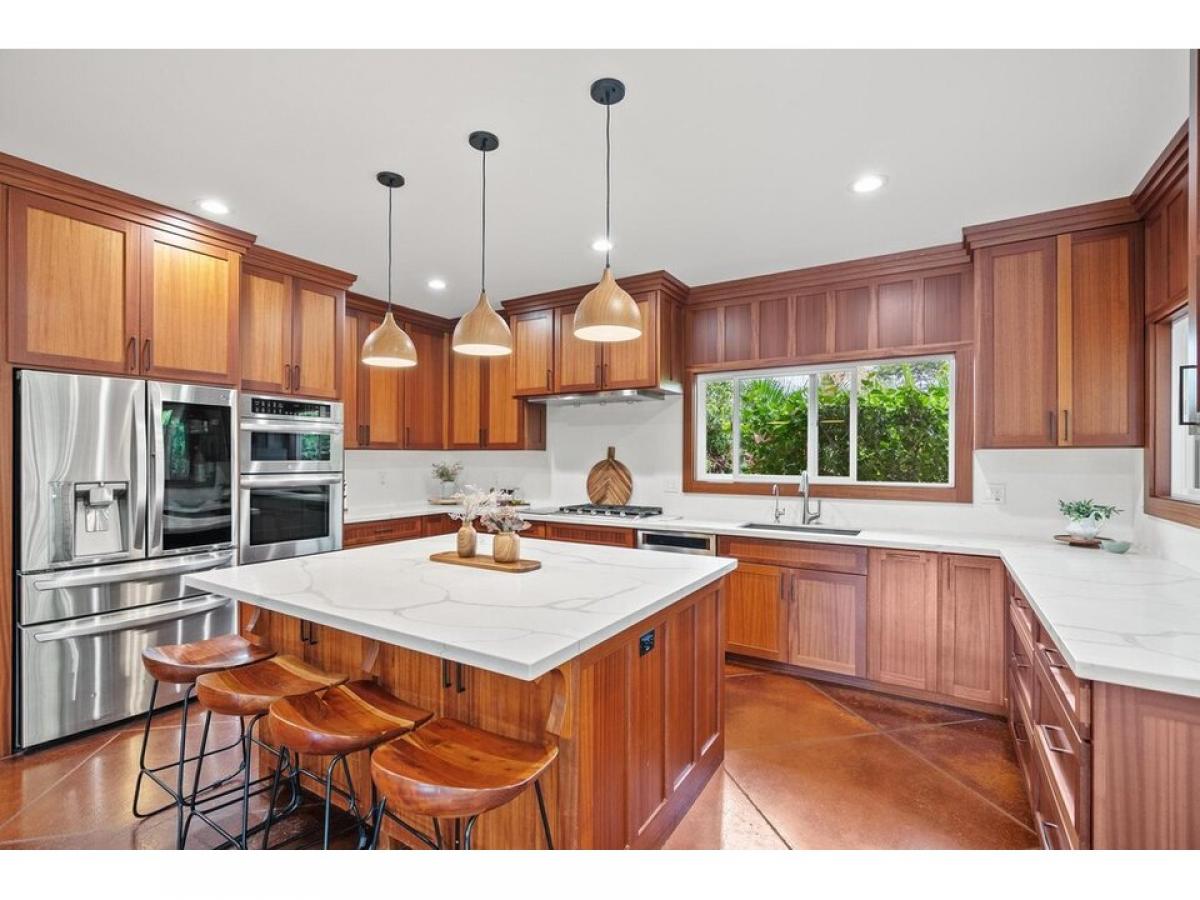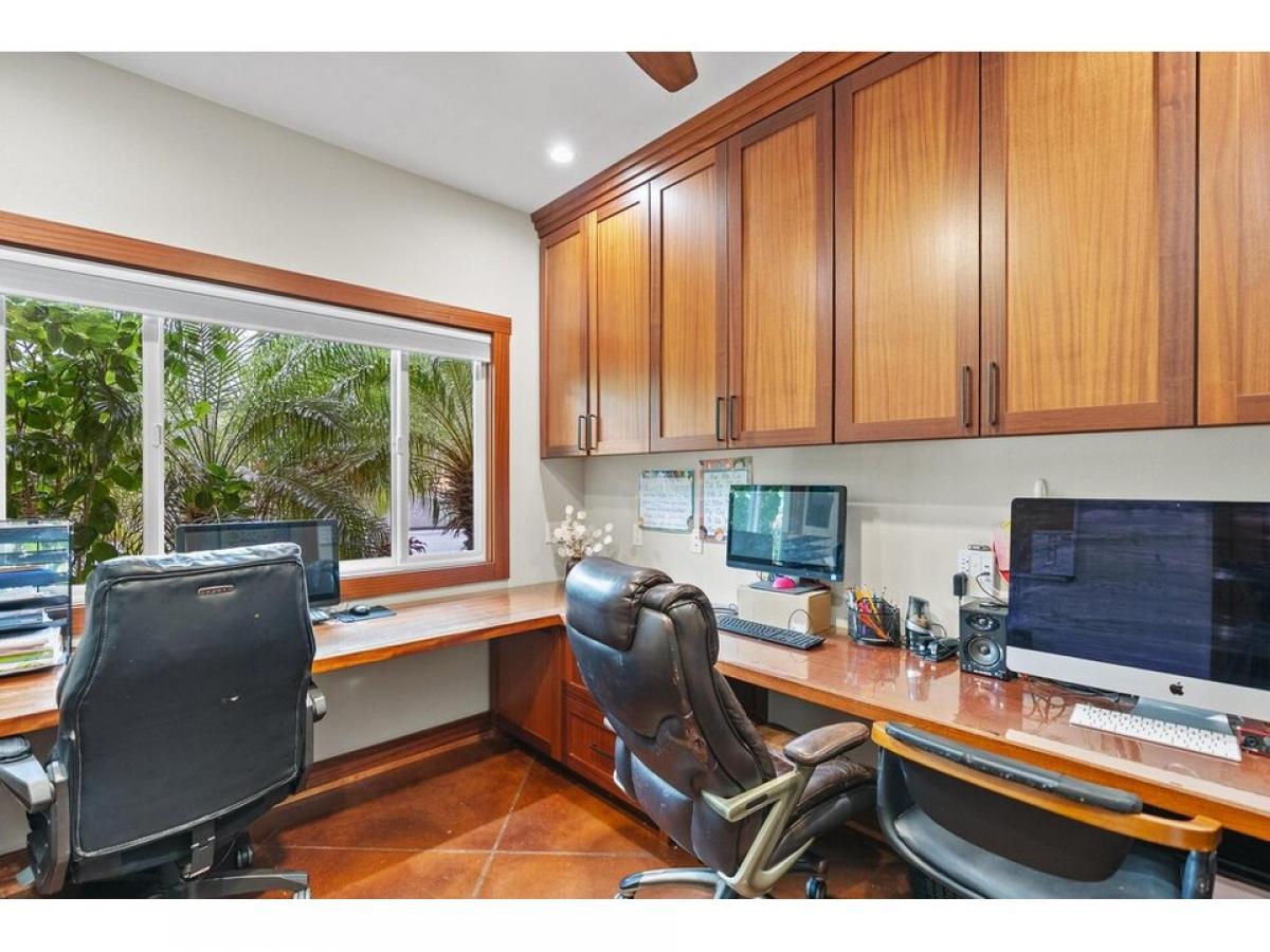 Live the island lifestyle in luxury and comfort in this beautifully crafted custom home built in 2020 in Waikoloa Village. With 3,200 sq ft of thoughtfully designed space, high-end finishes, and a upper level separate bonus living area with 2 bedrooms and a kitchenette surrounded by lush landscape, make this home a true sanctuary.Property Highlights:?? Beautiful solid handcrafted African Mahogany Cabinets, Doors, Recessed Ceilings grace this newer home built in 2020.??? Gourmet Kitchen has quartz countertops, walk-in pantry, and top-of-the-line appliances.?? Spacious Living amp; Dining areas with quot;Open Concept Designquot; brings peaceful warmth to the heart of the home. Large picture windows with custom blinds??? Primary Suite features a spa-style bath with custom tile, a jetted tub, and a large walk-in closet built-in cabinetry.??? Dedicated office with built-in cabinetrymdash;ideal for remote work or study?? Stained concrete flooring throughout for durability and modern island flair?? Main Level: 3 bedrooms and 3 full baths with office ?? Upper Level: Complete and separate living area with 2 bedrooms, a large bath, kitchenette, and laundrymdash;Complete and perfect for guests, a multi family arrangement or potential for rental income. ?? Beautifully landscaped with mature fruit trees, tropical foliage, and paver stone pathways leading to a private one room studio.?? Plenty of parking with a large two-car garage plus additional parking for guests.Sold furnished with a just a few items excludedLocated in desirable Waikoloa Village with everything you need just minutes ways including: Groceries, Bank, Post office. Waikoloa Village community amenities provide 18 hole golf course, community pool and tennis courts, restaurants, shopping centers. Enjoy more dining and shopping 10 minutes ways in the Kohala Coast Resorts.A rare opportunity to own a one-of-a-kind home in Waikoloa Village.