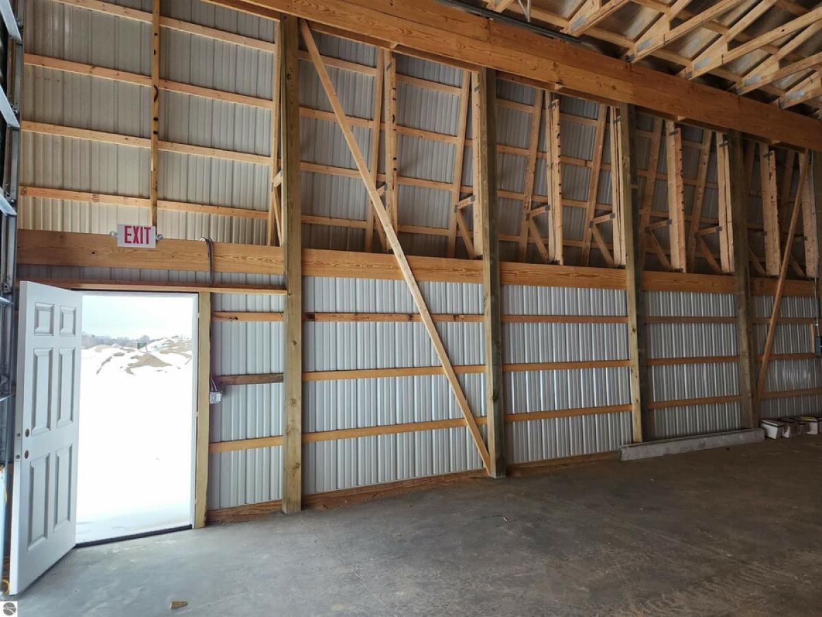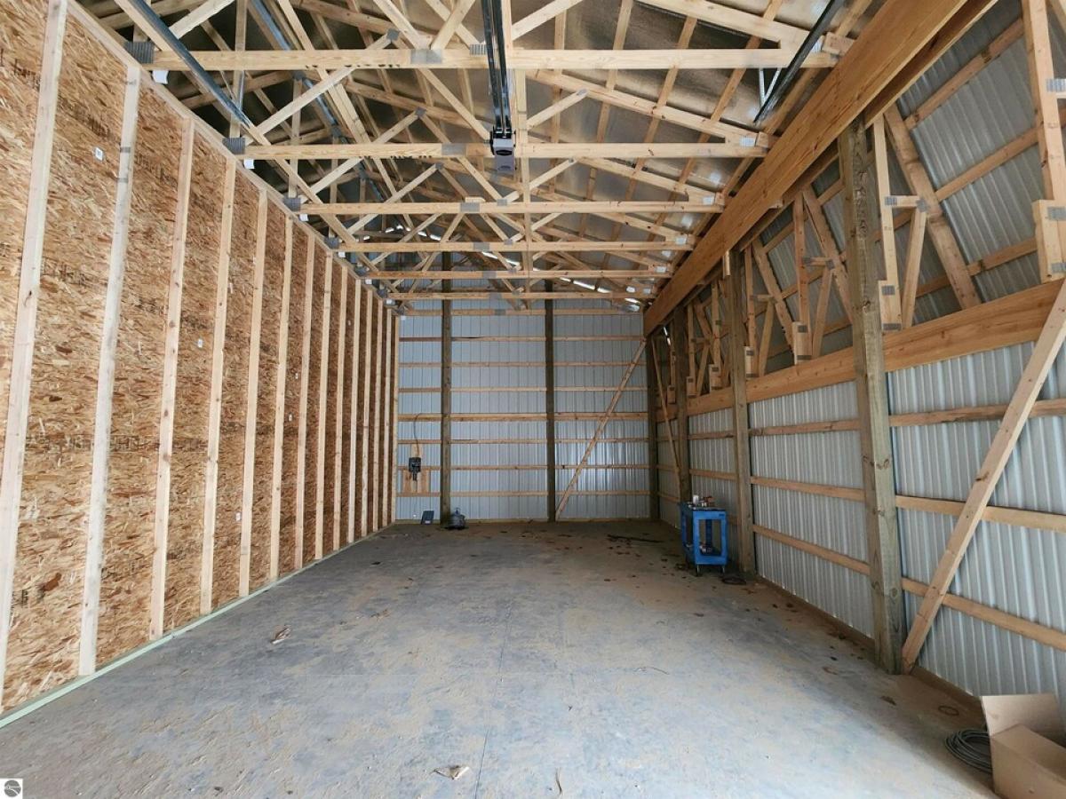 28x56 BUILT Storage Barn centrally located in Kewadin. This is the perfect building to store your toys and have a nice workshop. 16'x16' electric door with manual power opener. Concrete floor. Common area includes bathrooms and running water from spring to fall. Association dues include trash pick-up.