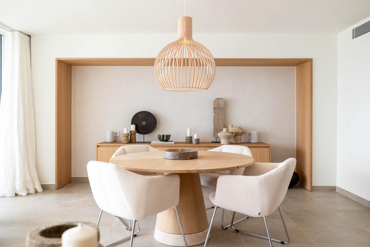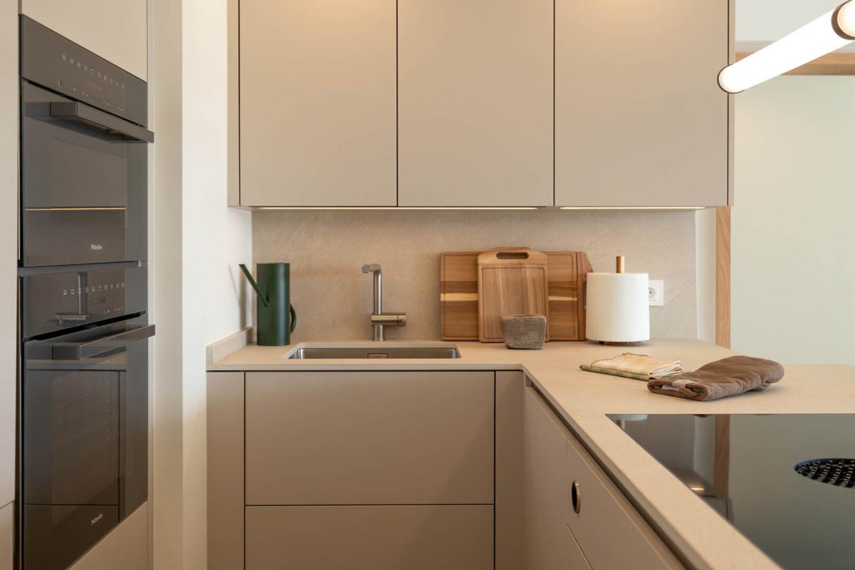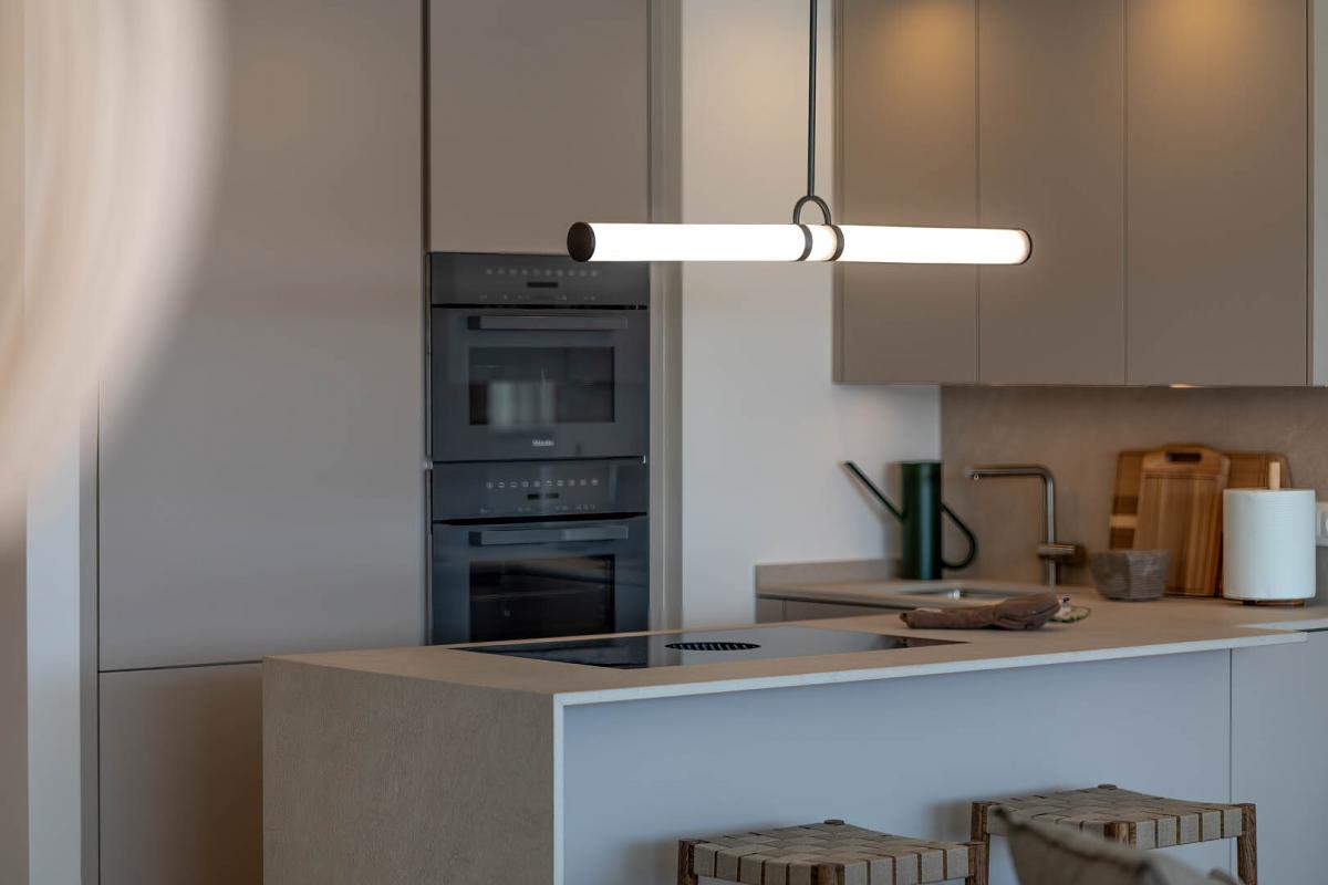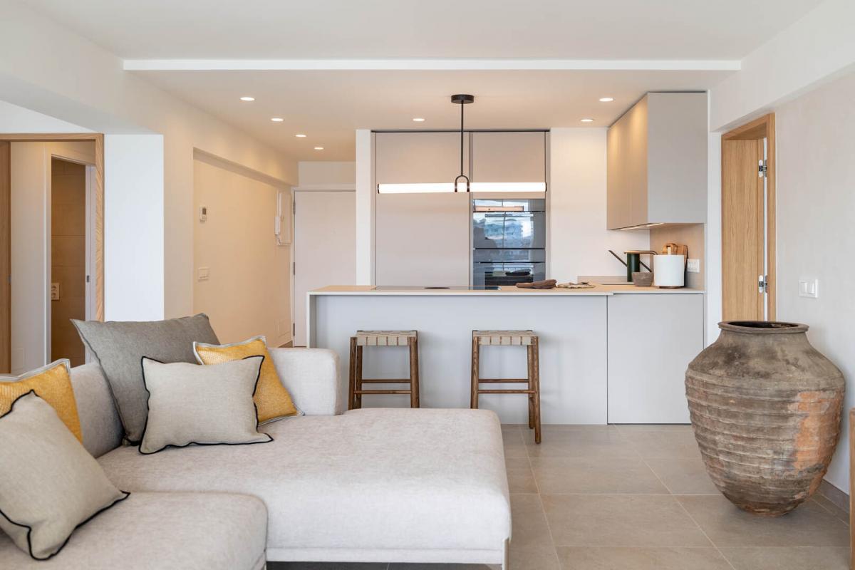 Der offen gestaltete Wohn- und Essbereich uberzeugt durch eine exklusive, massgefertigte Designerkuche mit hochwertigem Bora-Kochfeld und Miele-Elektrogeraten - ein echtes Highlight fur Kochliebhaber. Die offene Raumaufteilung schafft einen fliessenden Übergang zwischen Kuche, Ess- und Wohnbereich und eroffnet einen fantastischen Ausblick auf das Mittelmeer - ideal fur gesellige Abende oder ruhige Genussmomente.