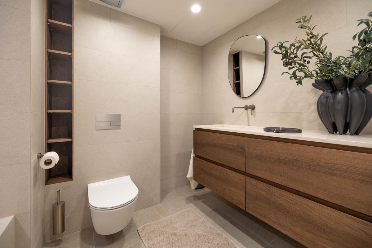 Mit einer grosszugigen Wohnflache von ca. 123 m2 bietet die immobilie hochsten Wohnkomfort. Das Apartment verfugt uber zwei geraumige Schlafzimmer. Das Hauptschlafzimmer punktet mit einem eleganten En-Suite-Badezimmer inklusive grosser, begehbarer Dusche. Ein weiteres separates Badezimmer mit moderner Badewanne ladt zum Entspannen ein.