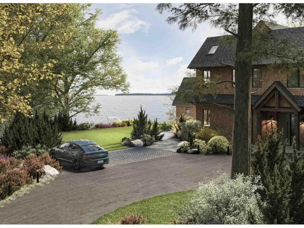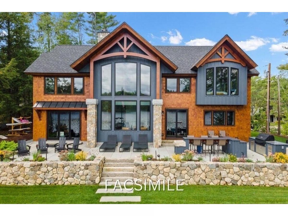 This exceptional to-be-built Adirondack-style home by Cargill Construction offers unparalleled lakefront living on the shores of Lake Winnipesaukee. Thoughtfully designed to blend luxury craftsmanship with natural beauty, this residence will feature lake and mountain views, a private setting, and top-tier finishes. Inside, a vaulted two-story great room with wood beam ceilings and a two-story stone gas fireplace sets the tone for an inviting yet elegant space. The home is designed for effortless year-round enjoyment, with a 4-season porch and an elevator providing seamless access to the upper level. The thoughtfully planned layout includes two ensuite bedrooms, an additional bedroom, and a spacious bonus room above the garage with custom built-in bunk beds. Set on a beautifully landscaped lot, this property boasts 145+/- feet of pristine shoreline, a sandy walk-in beach, and coveted southwest exposure, ensuring all-day sun and breathtaking sunsets. A double-bay boathouse is set to be remodeled, complemented by an additional seasonal dock, making this a boaterrsquo;s paradise. The outdoor living experience is equally impressive, with tiered patios, bluestone walkways, a fire boulder, and custom outdoor lighting enhancing the natural beauty and tranquility of the setting. Privacy abounds, with fencing on two sides and a picturesque running brook bordering the property. Fully permitted and ready to build, this rare opportunity offers the ultimate lakeside retreat. Agent is the seller