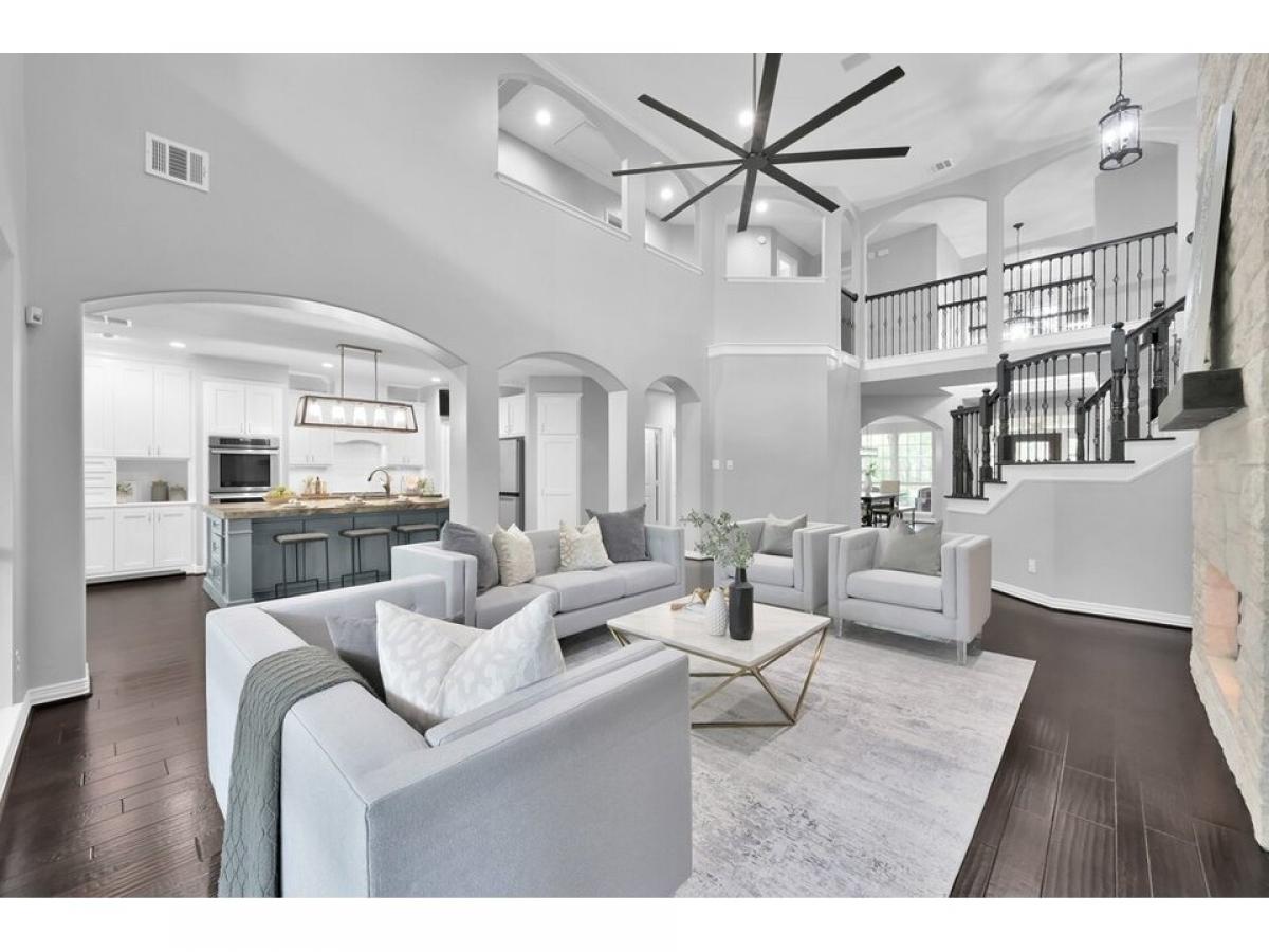 Discover this pristine 5-bedroom, 3.5-bath home nestled on a nearly half-acre cul-de-sac lot in The Woodlands, adjacent to a greenbelt. This former Emerald model home boasts a heated pool/spa, 3-car tandem garage, and luxury interior finishes. The kitchen, updated in 2017, features Thermador appliances, a gas cooktop, double ovens, and a large island. In 2020, enhancements included luxury hardwood floors, a floor-to-ceiling stone fireplace, Minka Aire extra-large ceiling fan, updated lighting, and a completely renovated primary en-suite bathroom. The main level hosts the primary suite, formal dining, a second living room, a bonus/flex room, a half bath, and a laundry room. Upstairs offers four bedrooms, two full bathrooms, and another flex room with a balcony view of the backyard. Additional highlights include a Texas walk-in attic, in-ground gas grill, large deck with swing, and in-ceiling wired speakers. Roof replaced in 2015; both HVAC units replaced 2013.