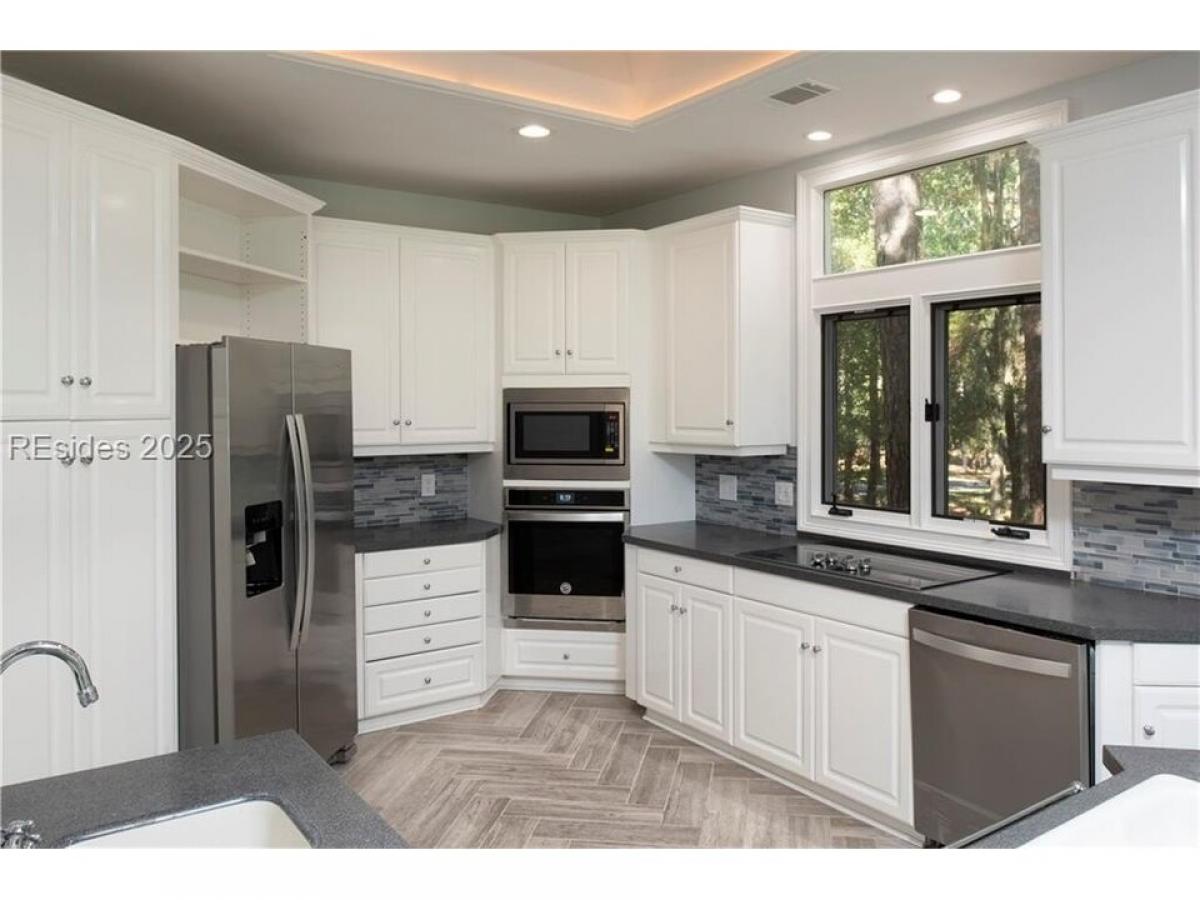Beautifully remodeled 3bed/3.5baths 2,624 sq ft home with 1,300 sq ft of decking including an enclosed screened patio perfect for indoor/outdoor living and entertaining. Situated on a private 1 acre lot directly on the 9th fairway of the Signature Course with commanding views of the 9th hole and the Calibogue Sound from the upper and lower decks. Close proximity to the Clubhouse and all amenties. Extensive use of glass in this unique design provides massive amounts of natural light. Natural landscaping preserves the coastal feel while being low maintenance!