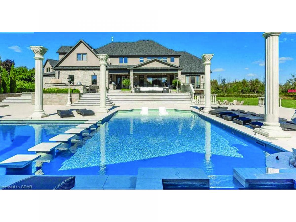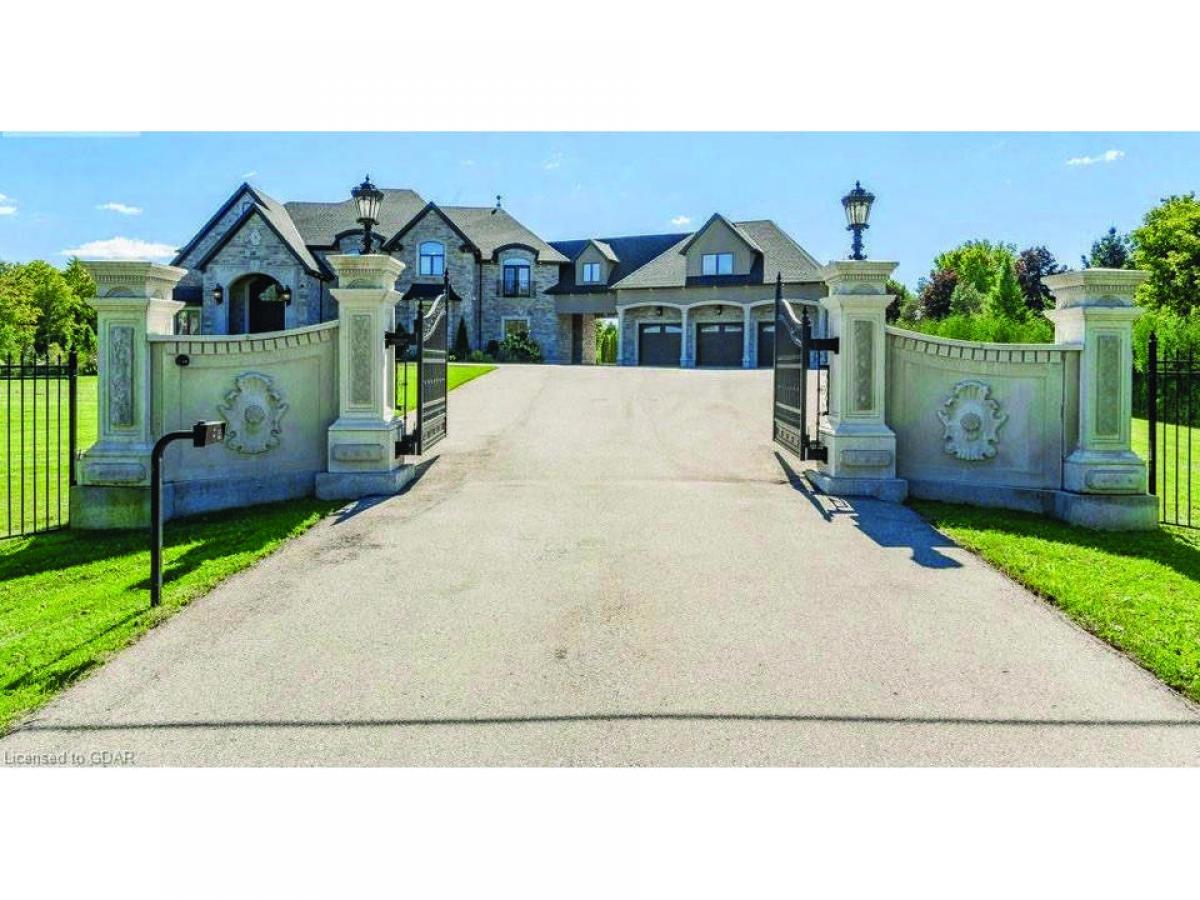 Palatial & opulence describe this incredible gated residence. 2.3 acres of land, stone masterpiece offers 6 garage bays & portico to rear parking. A head turner for sure minutes from the 401