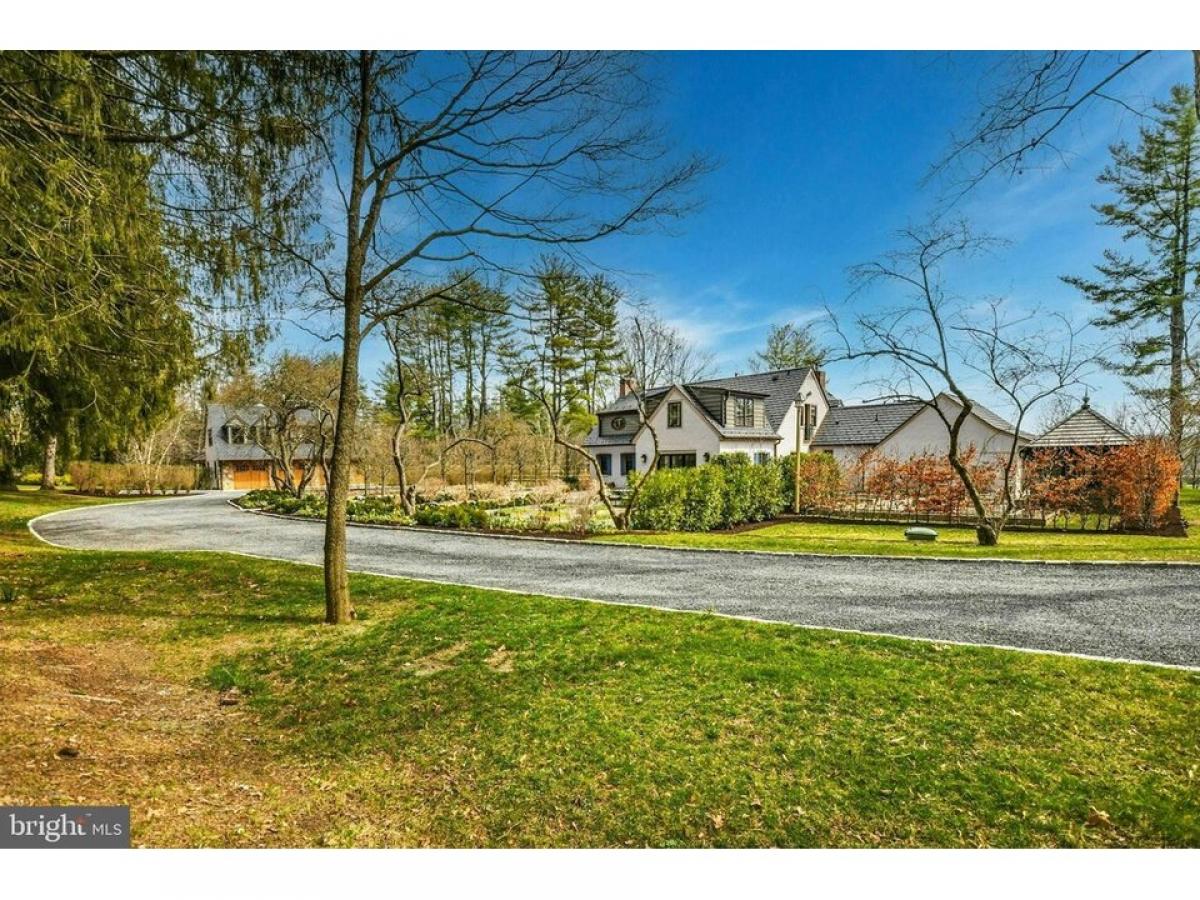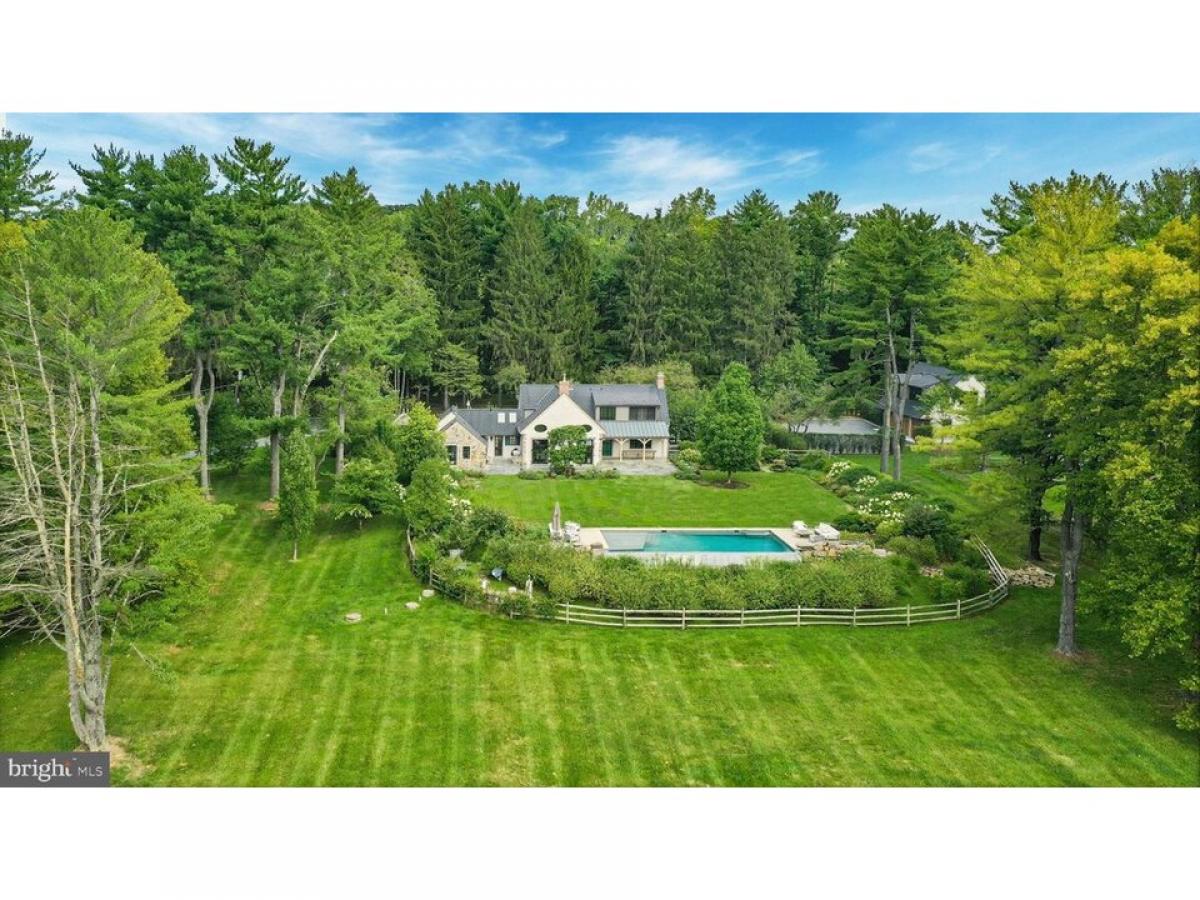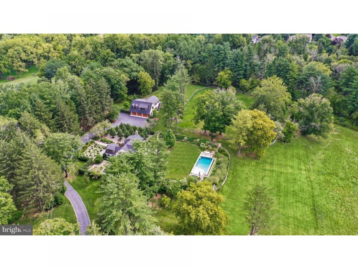 The winding country roads of Solebury Township are an idyllic backdrop for this elegant gated estate. Surrounded by twelve acres of rolling meadows and verdant woodlands, this bucolic property offers a serene and secluded retreat like no other. Holmquist Farm epitomizes a harmonious coexistence between nature and the comforts of home. Every aspect of the property has been renewed or improved in the last three years, including stunning new floors and unique light fixtures throughout the main house, a detached garage with luxe guest house, extensive landscaping, infinity pool, and even a pickleball court. Entry begins with a classic formal living room with deep silled windows, walls of built-ins, and a wood-burning fireplace. The large family room boasts a 2-story vaulted ceiling with reclaimed wood beams and massive chandeliers, along with a floor-to-ceiling stone fireplace flanked by tall windows. The 2022 gourmet kitchen is a chefrsquo;s dream, with marble backsplash, soft close cabinets, burnished bronze fixtures, and a large island. The dining room is elegant with hand painted orchids adorning the walls and French doors leading out to a bluestone patio surrounded by stately rows of flowering trees. The luxurious first floor primary suite is a private oasis, with a high ceiling, lavish spa bath, and sliding glass doors to an ivy-draped patio. Upstairs, another full bedroom suite includes a built-in window seat, two Juliet balconies, and private bath, while two additional bedrooms share an updated hall bath. The finished lower level delights with a fully equipped wet bar, flex room suitable for a home office or extra bedroom, and wine room. A home theater, full bath, and stairs to the outside make this a wonderful space to entertain family and friends. The grounds are ideal for entertaining or quiet days at home. Flowering trees and specimen plantings surround the home, while lush grass extends to a heated in-ground saltwater infinity pool with laminar jets. Surrounded by bluestone patios, this scenic overlook offers long-distance views overlooking open farmland and the hills and valleys of Solebury Township. Across the driveway a newly built detached garage offers four bays with space for five vehicles. The upstairs guest apartment is an elegant residence on its own. An open-plan living area includes a full kitchen, positioned to take advantage of the oversized picture window looking out over the gardens. The custom marble backsplash is a work of art featuring flowering branches with dimensional marble petals. Two sunny bedrooms and a full bath are nearby, as well as a state of the art exercise room featuring a patented hardwood floor with subfloor spring mechanism and Nanawall that opens to the beautiful environs. The property was once owned by Miss Karline Holmquist, founder of The Holmquist School for Girls, which merged with a local boys school to become the co-educational Solebury School, whose campus is located just up the road. Peace and quiet, a secluded haven within 90 minutes from three major metropolitan cities with access to international airports, world-class arts, cultural amenities, entertainment, shopping, and fine cuisine can all be yours at Holmquist Farm!