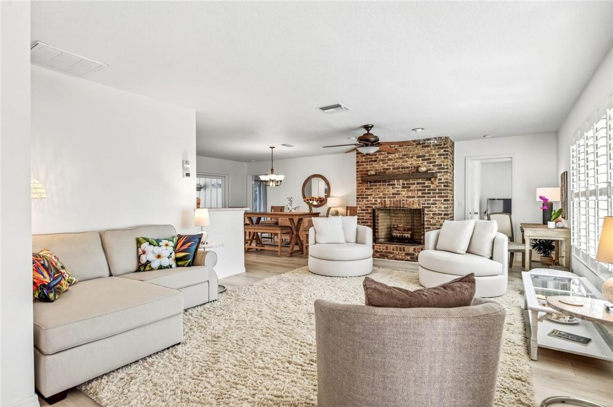 Beautifully updated 4-bedroom home in coveted Central Beach, East of A1A! Open floor plan compliments thoughtful updates, including a metal roof (2021), impact glass doors and windows (2021), newer AC, two car garage with ample storage. The spacious living area features a New York brick fireplace for cozy evenings. Indoor-outdoor living with a large screened pool and covered porch. Premier location on a tree lined street, a short stroll to the beach, shopping and local restaurants. Not in a flood zone!