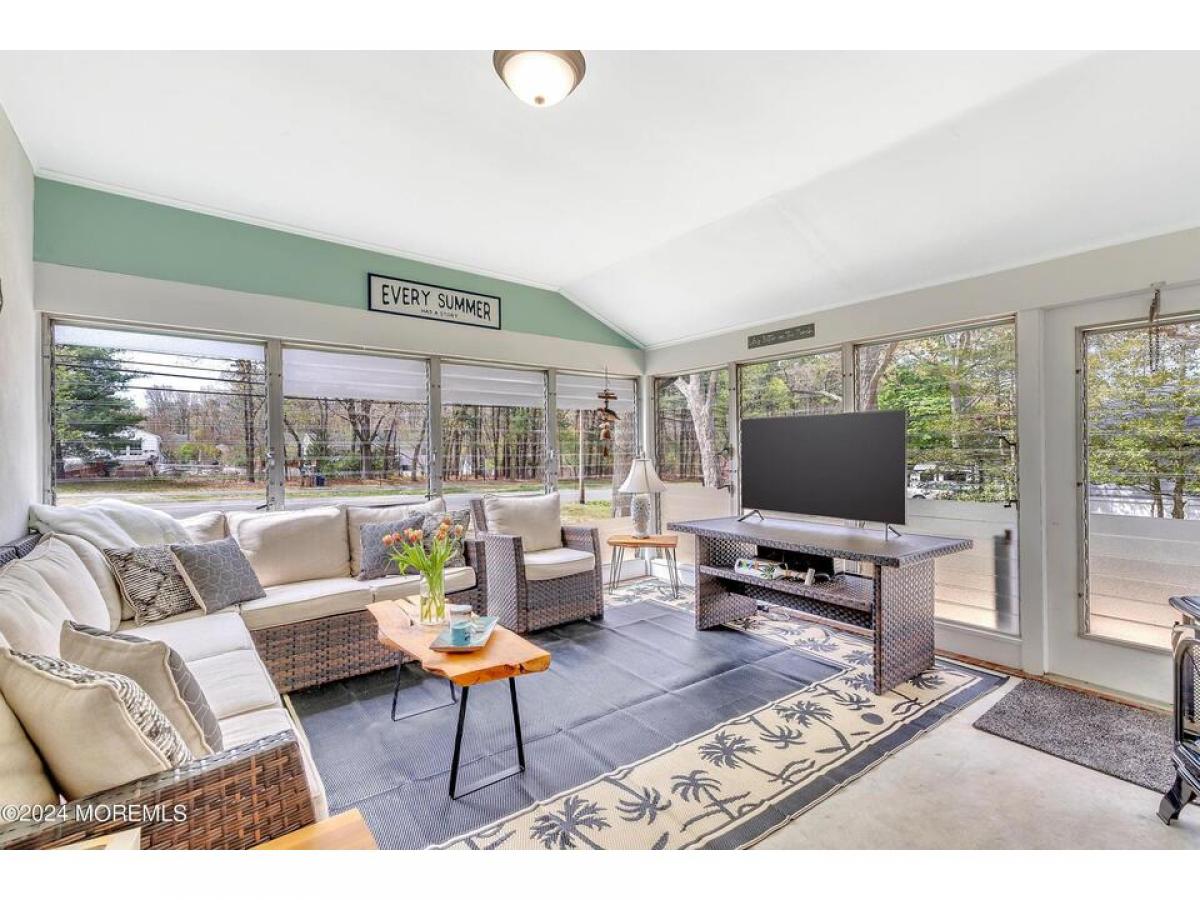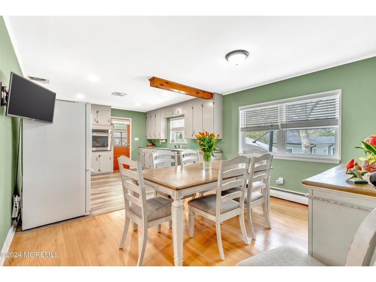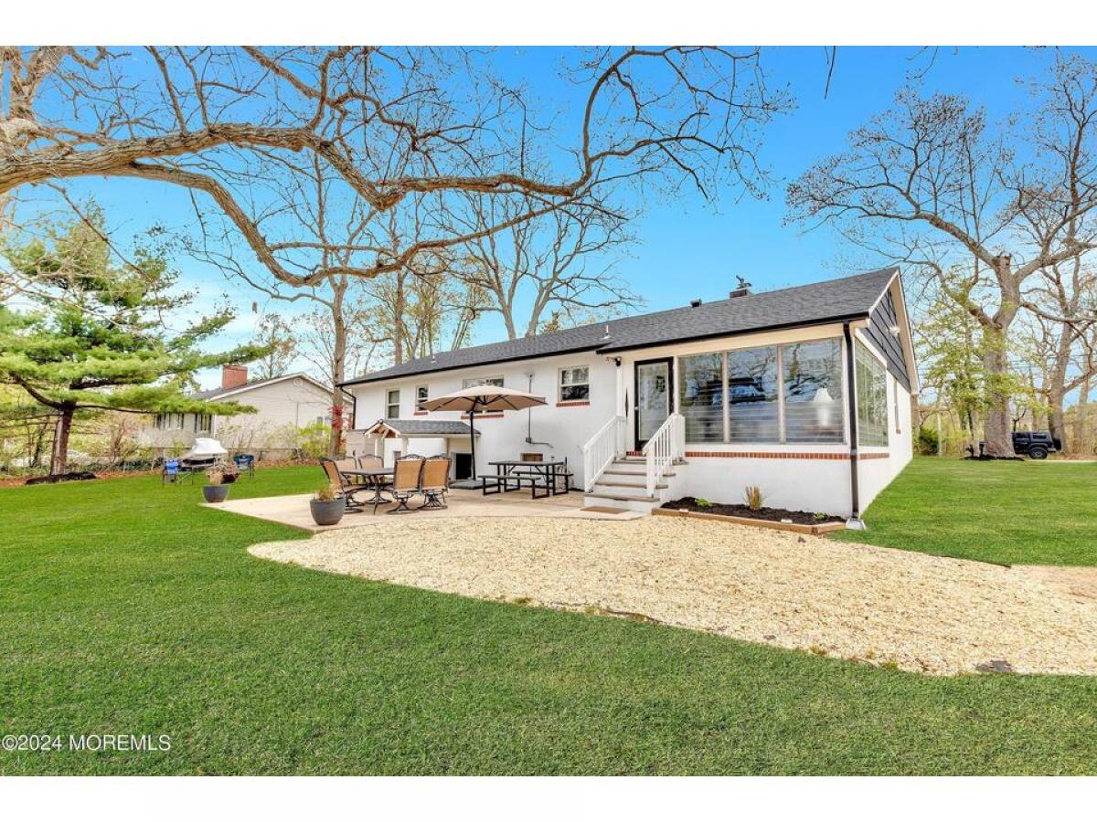 Ranch style home in the charming community of Pine Beach, NJ! Beautiful 150 X 125 corner property offers 3 bedrooms, 1 1/2 bathrooms, along with a direct access 1 car garage and driveway. Spacious living room with a wood burning fireplace and stunning hardwood flooring throughout. Meticulously maintained with the following newer installations: furnace, baseboard hot water heat and tankless HWH, central air, roof, gutters, gutter guards, windows, refinished hardwood flooring and 200 Amp electric panel. Large Retro style kitchen features updated stainless steel appliances, lots of storage space and plenty of room for a center island. The dining area is a perfect space for entertaining while enjoying your backyard view. Sunroom equipped with central air for the warm summer days.Select more. The primary bedroom with a convenient half bathroom suite for added comfort and privacy. Full basement with newly installed heaters, a pool table/game room area, a gym area and laundry area with utility sink; basement with a walkout access to the backyard. This property boasts a fire pit, large concrete patio and a new shed (wired for elect/not connected). Professionally landscaped home adds curb appeal making it a true neighborhood gem! A perfect location, short drive to the Jersey Shore, close to Riverfront Beach, bike paths, Pine Beach Yacht Club, as well as, restaurants, shops and GSP. Enjoy the perfect balance of comfort, style, and convenience. Welcome home!