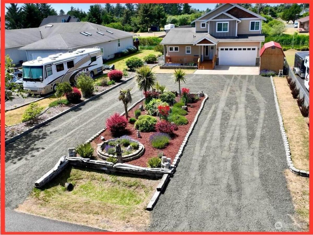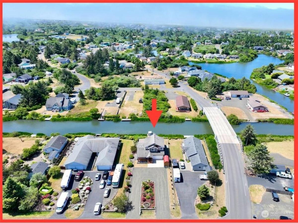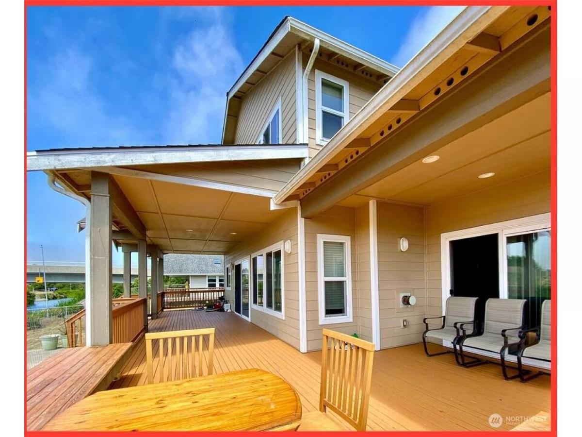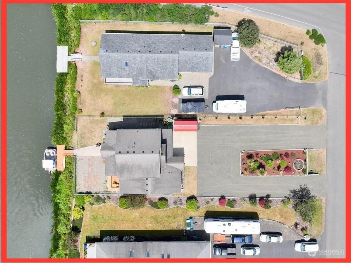 Contemporary Waterfront Home with 2 Primary Suites at Ocean Shores, WA! This 1,773 sf residence is situated near Lake Minard on a 10,200 sf parcel boasting 60' of frontage, dock, circular driveway and fenced back yard. Featuring an open floor plan with wall of windows, fireplace, and door leading to the full-length covered deck facing the canal. The kitchen with a view is outfitted with Quartz countertops and walk in pantry. One primary suite w/views of the canal and connected full bathroom are also on the main. Upstairs there is another primary en-suite w/spacious 4-piece bathroom. 2 more bedrooms and a full bath complete the upper floor. Oversized 2 car garage. 8x16 insulated shed w/power. Assumable loan balance of approx $215k 2.99% int.