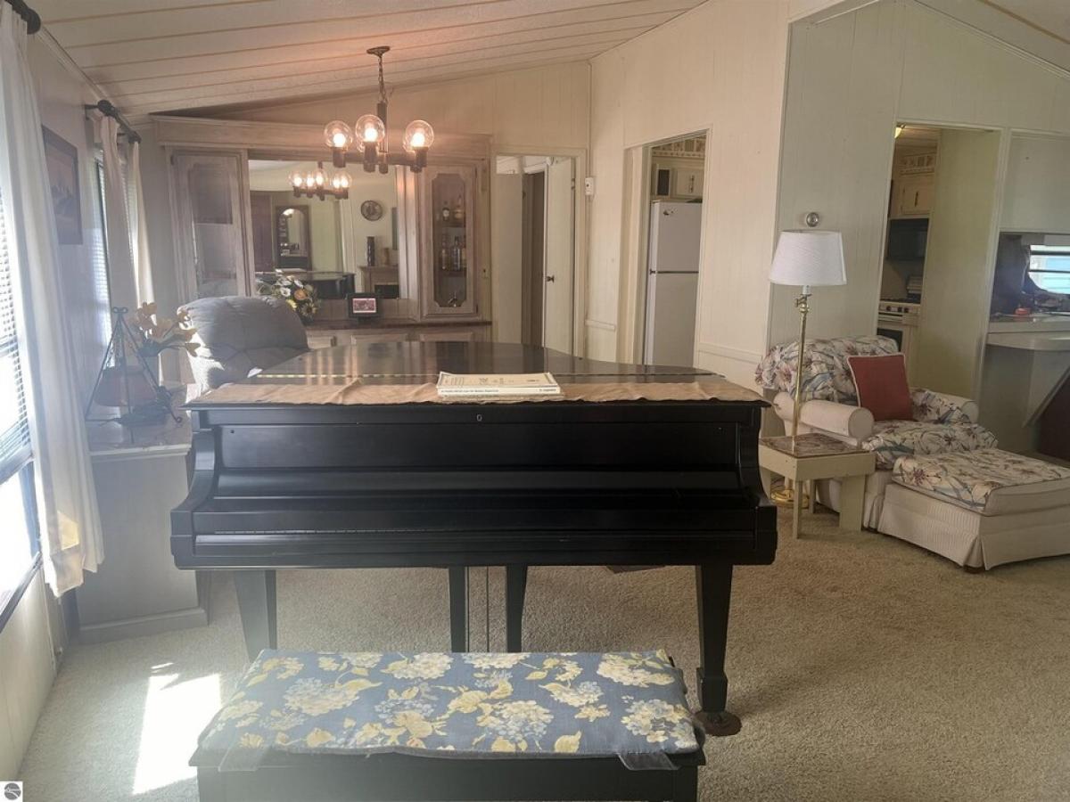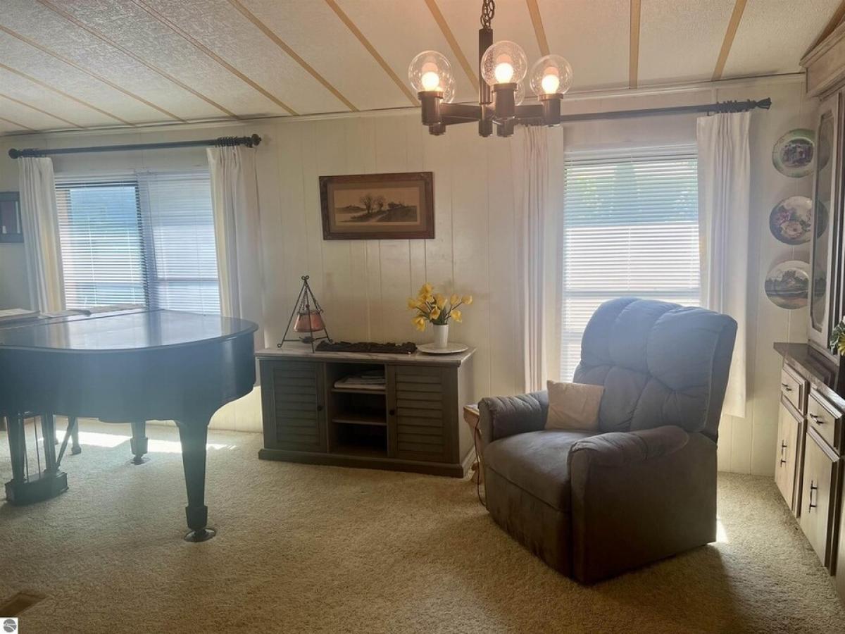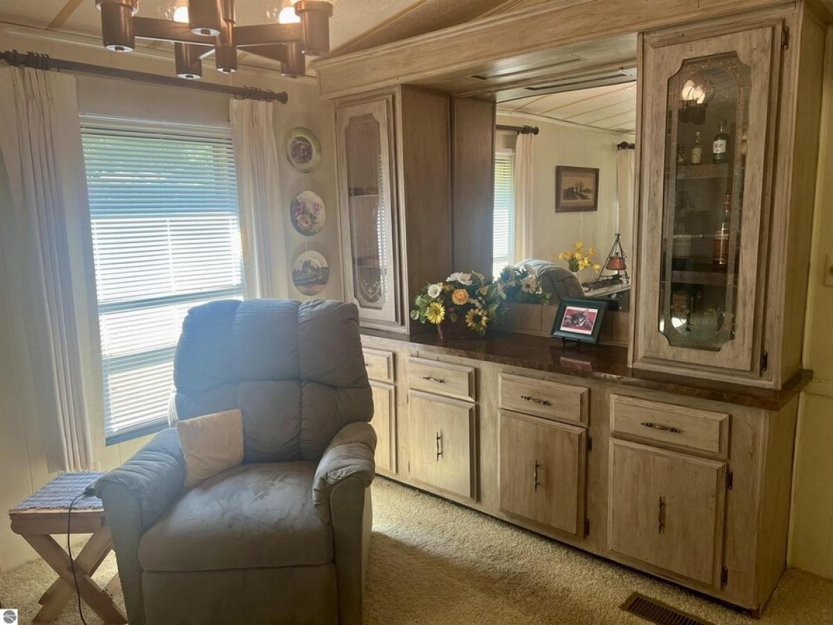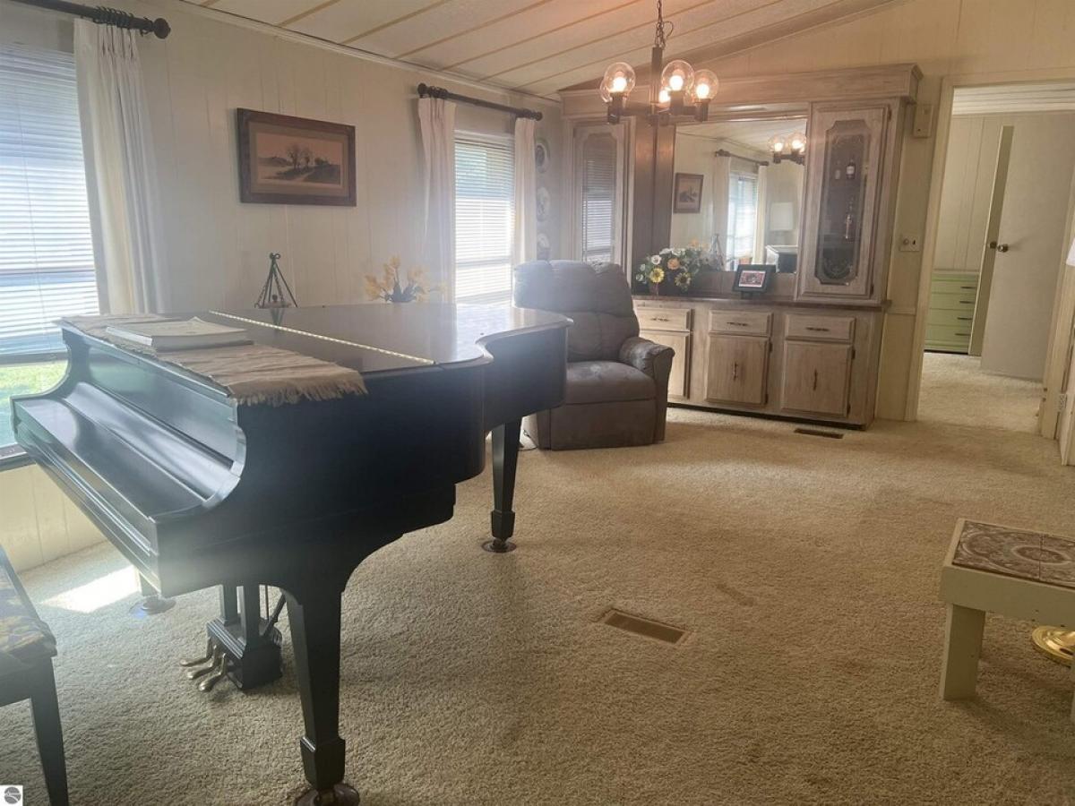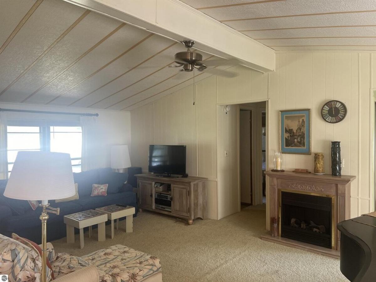 Vacation Village! This 3 bedroom, 2 bath home offers plenty of space with an open floor plan and private primary suite. Enjoy evenings on the deck with built in seating. With 400' of shared Bass Lake access, it's easy to enjoy kayaking, fishing or relaxing lakeside close to home. Covered carport and storage shed are included. Vacation Village is across the street from the historical Elk Rapids Golf Course and close to everything that Elk Rapids has to offer. Here is your opportunity to live in this highly sought after 55+ community, within the heart of Elk Rapids.
