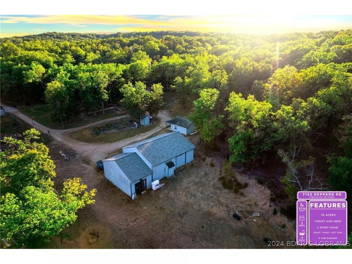 s: Incredible Farm Home with gated entrance AND 74+ Acres AND 2 Outbuildings. Your private oasis awaits you to come home and park in your attached 2.5 car garage! The kitchen is simply gorgeous with double ovens & granite countertops. The masonry heater fireplace is the staple to the living room and is low maintenance as it is designed t only be loaded up twice daily (once in a.m. & once in p.m.). For a serene touch, step into the sunroom off the living room which overlooks the patio & wood line. The upper level features a family room, 3 bedrooms, 2 bathrooms, & two balconies. The tranquil 74 acres features a garden area 2 shops, plenty of mature timber, a pasture, & so much more! Part of the property has new 7 strand fencing. The owners love their hobby farm which currently has hair sheep, cattle, guineas, chickens and even turkeys. One of the outbuildings could be finished as a small guest house. Workshop/large outbuilding also has high speed internet. Abundance of deer & turkey!