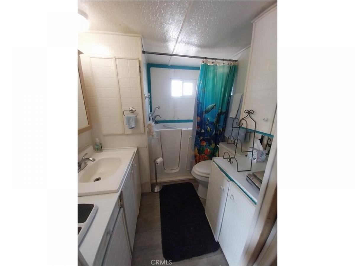 Banning Senior Gated Community Park. This home is 3 bedroom ,one has a wardrobe closet. It is more sq ft than just the mobilehome as it has a large add on. Beautiful deck that looks toward the mountains It has dual-paned windows, Laminate wood floors, Tiled back-splash in the kitchen Front kitchen. Lots of cupboards .New water heater in 2020. AND a WALK-IN-JACUZZI TUB. Large storage shed ,walls are insulated and has a workbench.There are Roses and fruit trees