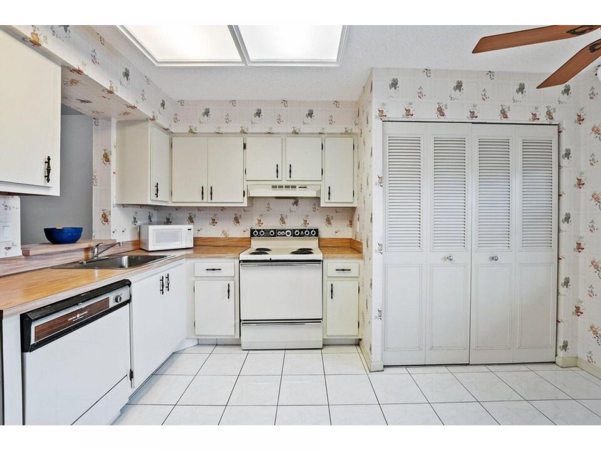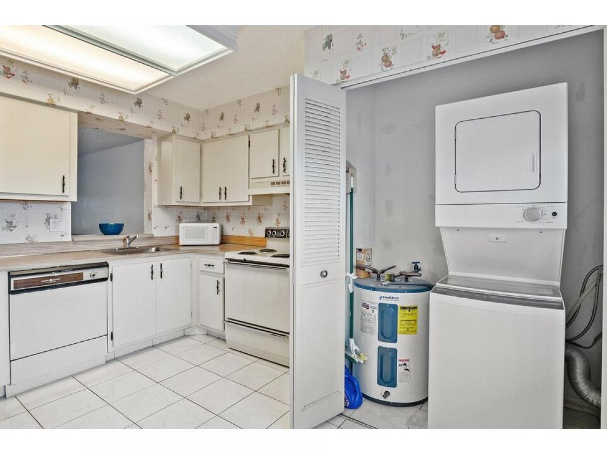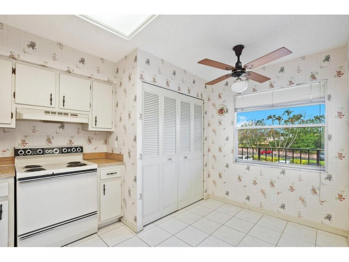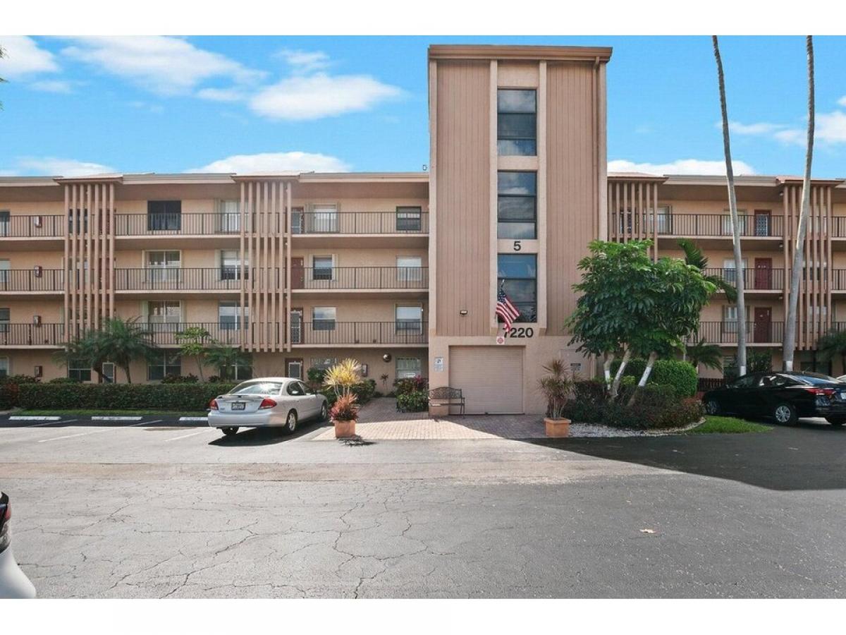 RECENTLY RENOVATED BATHROOMS. Welcome to this serene lakeside condo in the charming of Palm Lakes. Conveniently located near the elevator, this 2-bedroom, 2-bathroom unit offers an abundance of features, including two beautifully renovated bathrooms, in-unit washer and dryer, 2022 AC, and an additional storage locker. The screened balcony provides a peaceful view of the tranquil lake and lush landscaping, perfect for relaxation.Palm Lakes offers a resort-style clubhouse with a variety of amenities, including a billiards room, auditorium, gym, tennis court, hotel-style pool, hot tub, and a barbecue area--all with no membership dues or buy-ins.It is also pet-friendly, allowing two pets under 20 pounds each. HOA rules state community is a 55+ community.