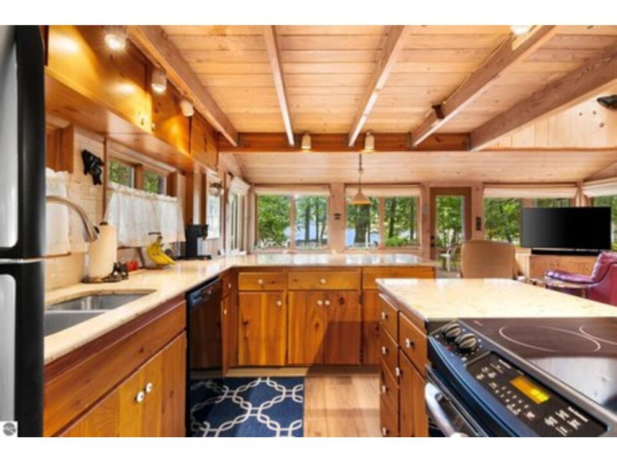 NEWLY LISTED RAPID RIVER FRONTAGE with access to the entire Chain-of-Lakes including Torch Lake, Elk Lake and Lake Skegemog from this 1.6-acre wooded setting. Lovingly cared for home ideal for a relaxing getaway retreat or year around living. You will discover over 1,400 sq. ft. of living space; living room with fireplace and cathedral ceilings; plenty of windows with waterfront views; 3 bedrooms; nice dining area; Island style kitchen with stainless appliances and bar seating; the wood paneled walls add to the warmth and ambiance. The serene setting on the Rapid River will be your place to escape the hustle and bustle of daily life. Enjoy sitting on the large deck while you enjoy your morning coffee and listen to the sounds of nature in your wooded setting. Imagine evenings sitting around the firepit and sharing stories with your friends and family. Get ready to explore the entire Chain-of-Lakes from your private frontage, where you will appreciate the ease of having a permanent dock for your boat. Additional amenities include a maintenance free metal roof; heated 2-car garage, garden storage shed and more. A short drive to nearby waterside communities for dining, shopping, beaches, parks, recreation trails, golf, skiing, and more. This is the place you have been waiting for in northern Michigan.