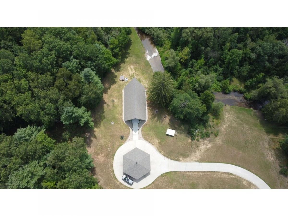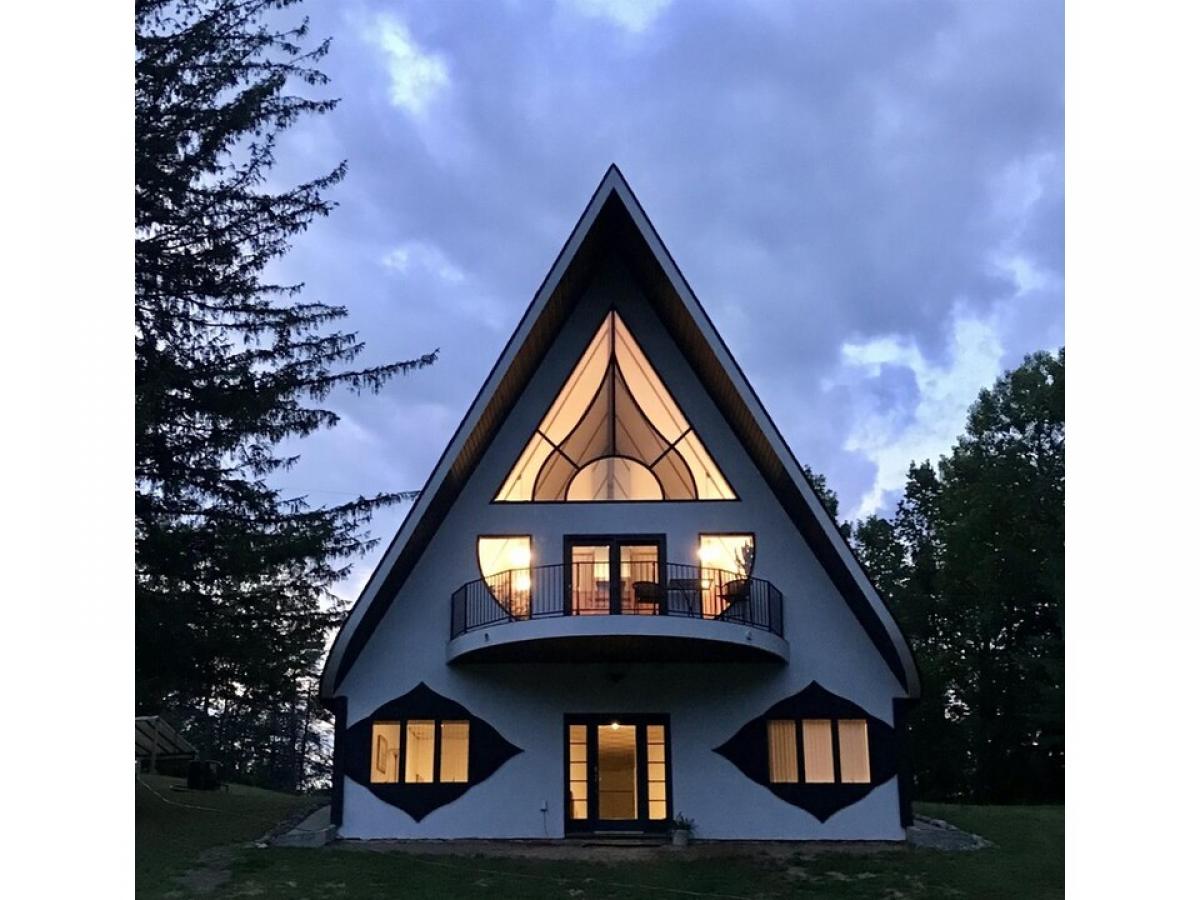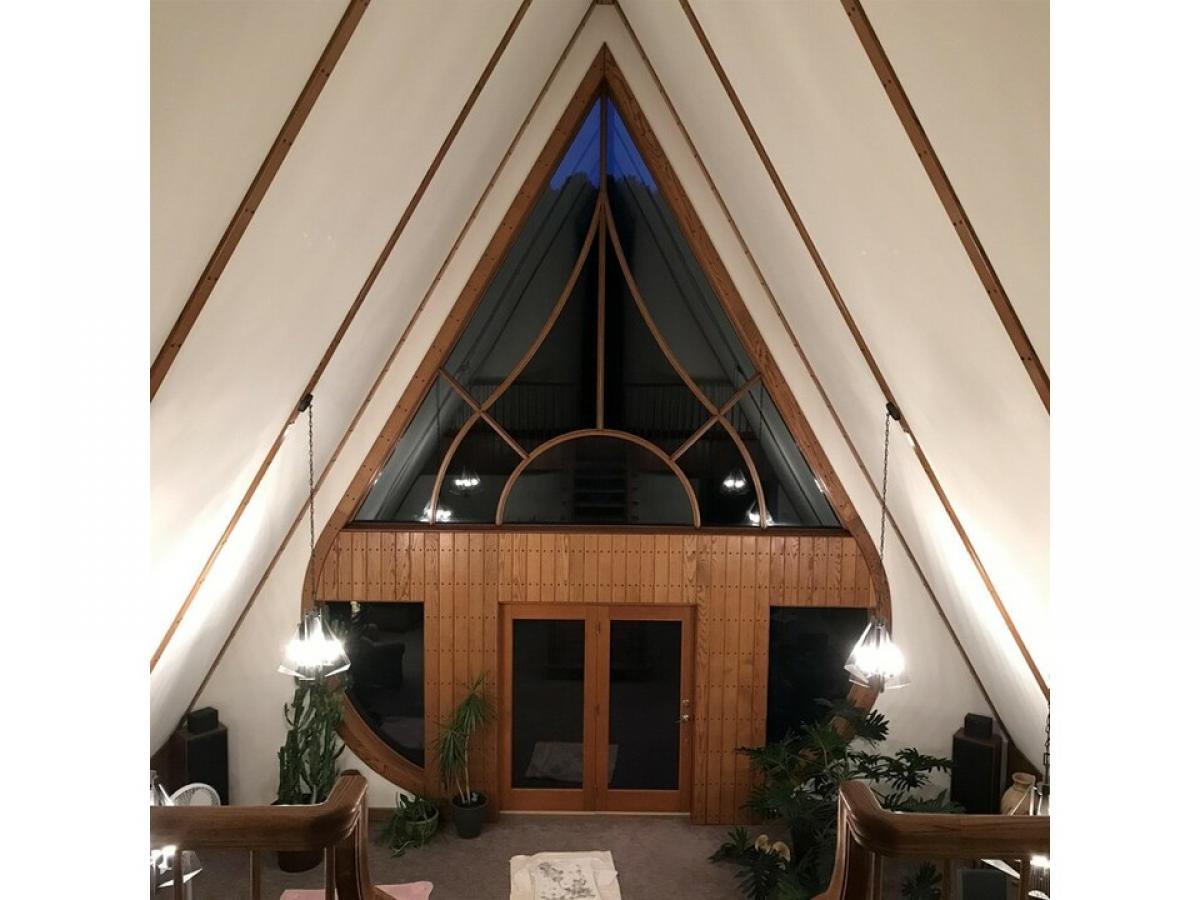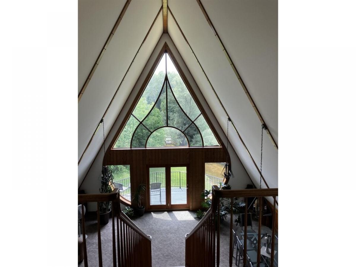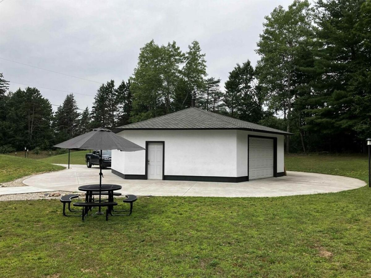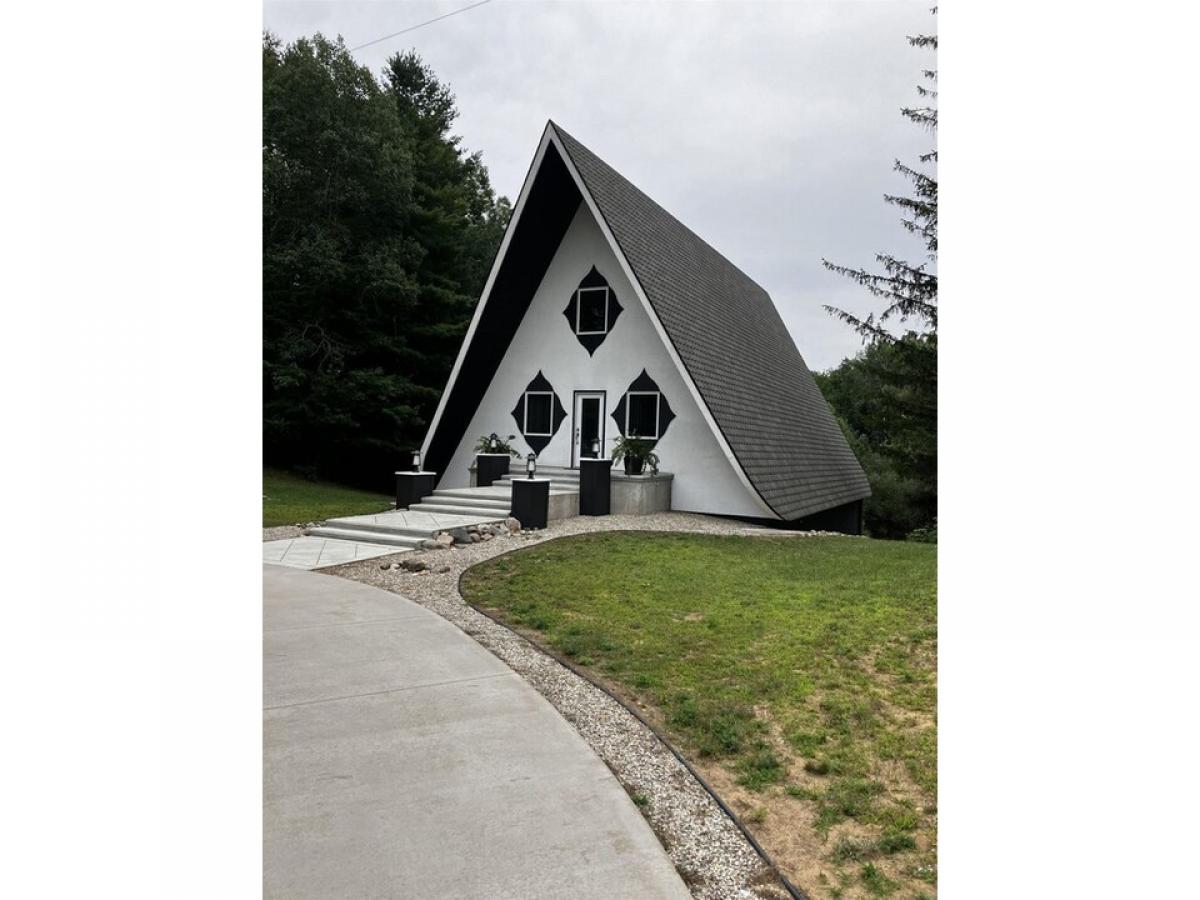 Custom built steel A-frame tucked away just off Ludington Dr. between Clare and Farwell . This home is truly a one of a kind , curved cabinety, custom glass windows, stucco exterior and an hexagon garage are just a few of the unique features. Home sits on 1.6 acres with 400+ft of waterfront on the tobacco river .All listing info/measurments are approx.